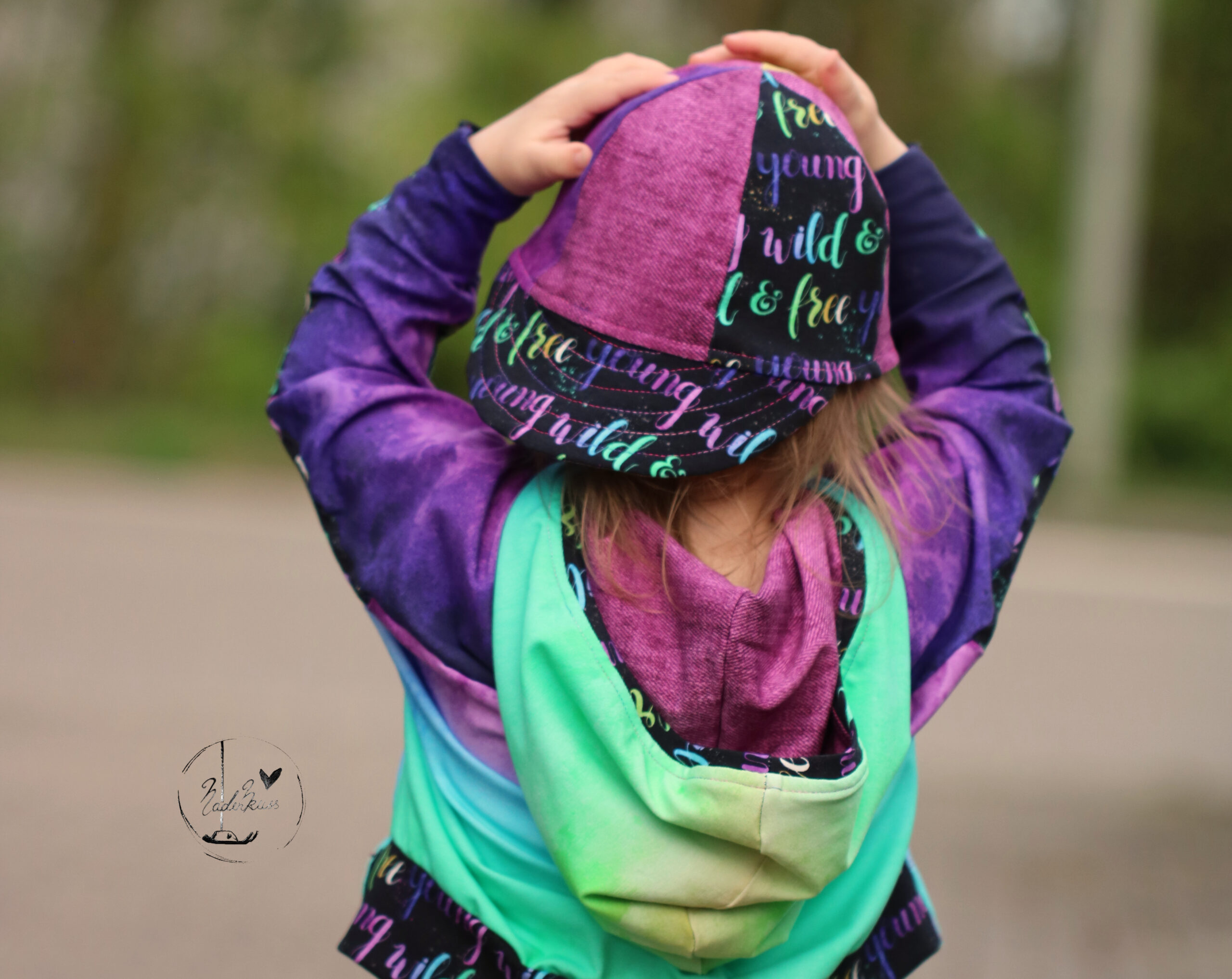 Für noch mehr Farbe und coolen Akzenten in Euren Nähwerken haben wir dieses Mal zum Kombinieren die „young wild & free“ Schrift. Passend zu den Panelen, ebenfalls in Pink-Mint und Blau-Grün. Während der Untergrund der Schrift in Pink-Mint Schwarz gehalten ist, ist er bei der Version in Blau-Grün in einem schönen Nachtblau. Wie auch beim Panel, sind hier die Schriftarten ebenfalls unterschiedlich. Einmal eher cool und lässig und einmal eher leicht und zart.