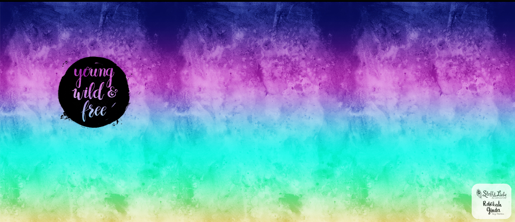 Das Panel hat eine Höhe von ca. 65 cm und eine Aufteilung von 1/3 zu 2/3. Die Bereiche des Panels sind nicht getrennt, sondern gehen ineinander über. Auf dem ersten Teil des Panels findet Ihr jeweils den „Young, wild & free“ Schriftzug, der auf einem Untergrund mit Farbverlauf und „Watercolour-Effekt“ gelegt ist. Der zweite Teil des Panels besteht aus genau diesem Untergrund. Diese Effekte verleihen den Panelen ihren einzigartigen Look und machen sie zum absoluten Hingucker.