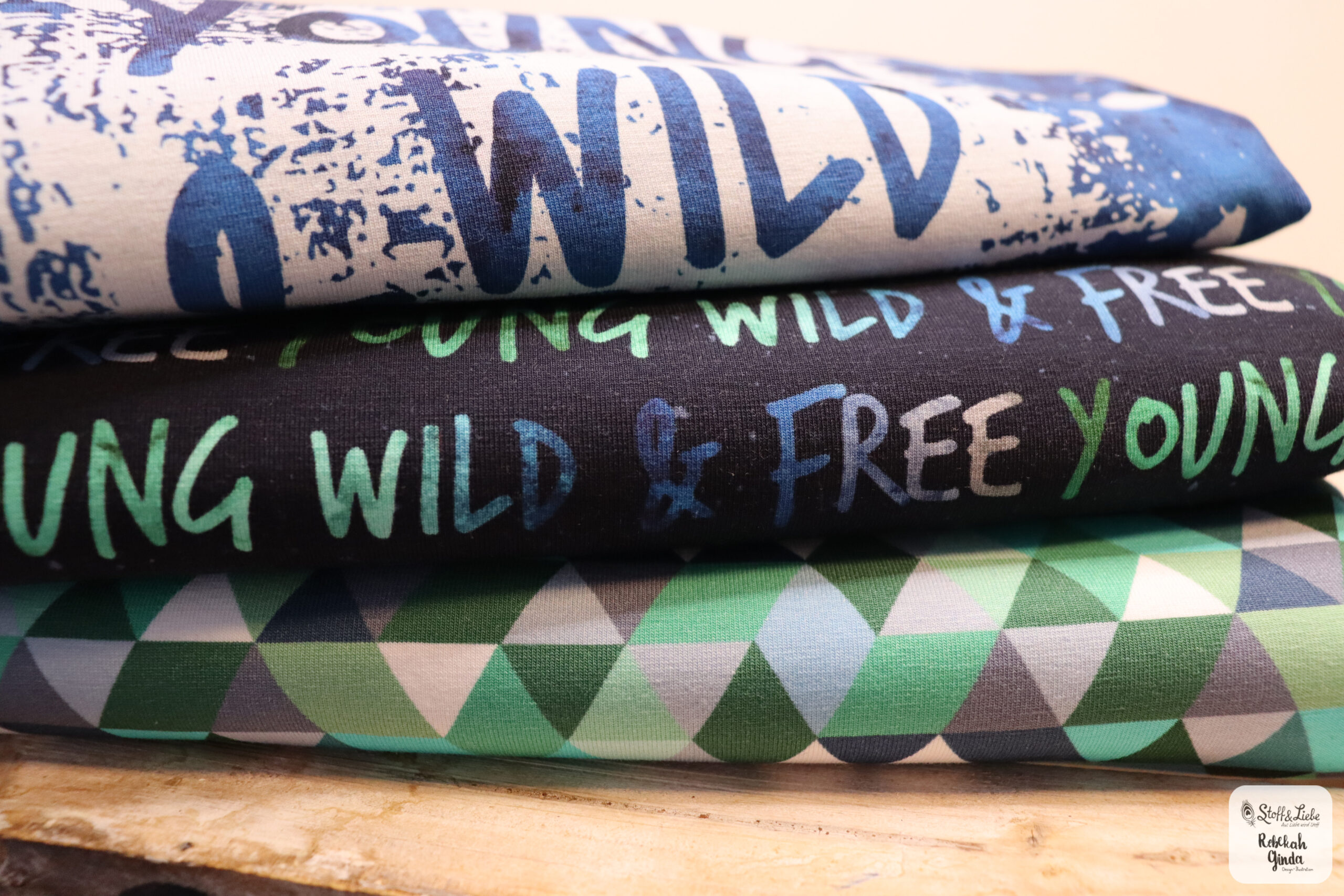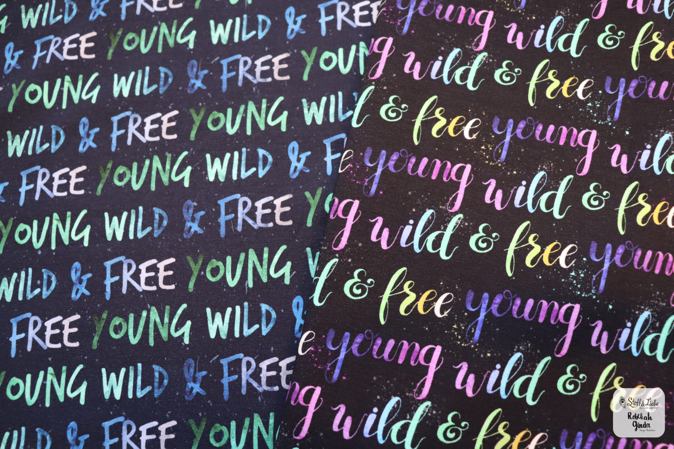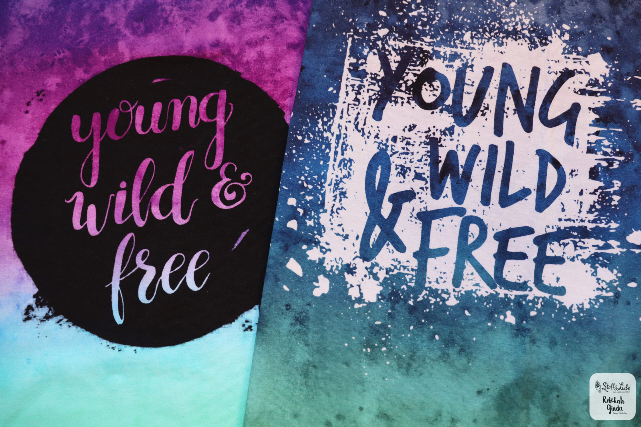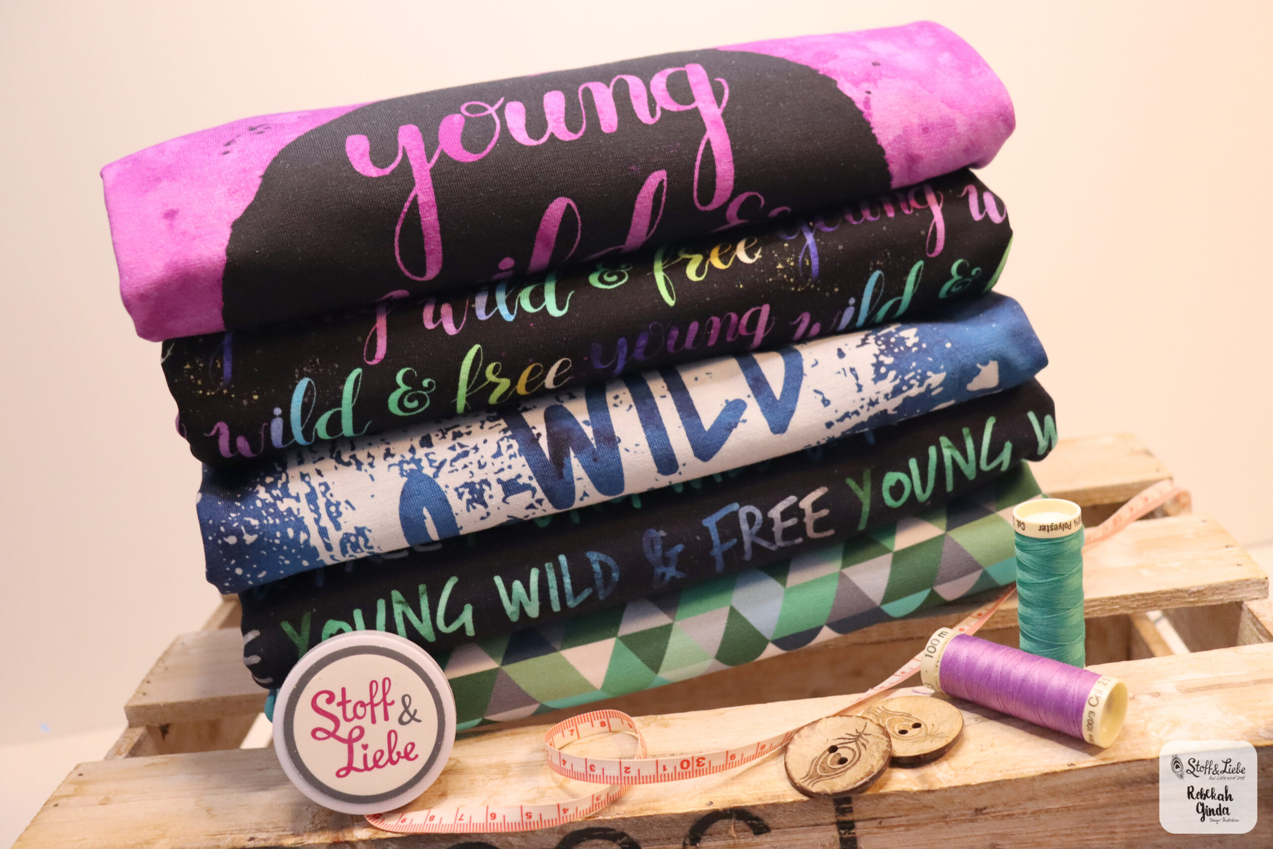 Wie Ihr wisst, hören wir immer ganz genau hin, was Ihr Euch wünscht. So ist es auch bei diesem Design. Nach unseren „Sei frech & wild & wunderbar“ – Kollektionen haben wir immer wieder gehört und gelesen, dass Ihr Euch ein solches (ähnliches) Design auch für „Größere“ gut vorstellen könnt. Etwas cooler, etwas weniger kindlich, dennoch bunt und mit Schrift, aber ohne Motive usw. So hat sich unsere liebe Rebekah daran gemacht und Eure Wünsche umgesetzt. Da ist sie, unsere „Young, wild & free“ Kollektion.