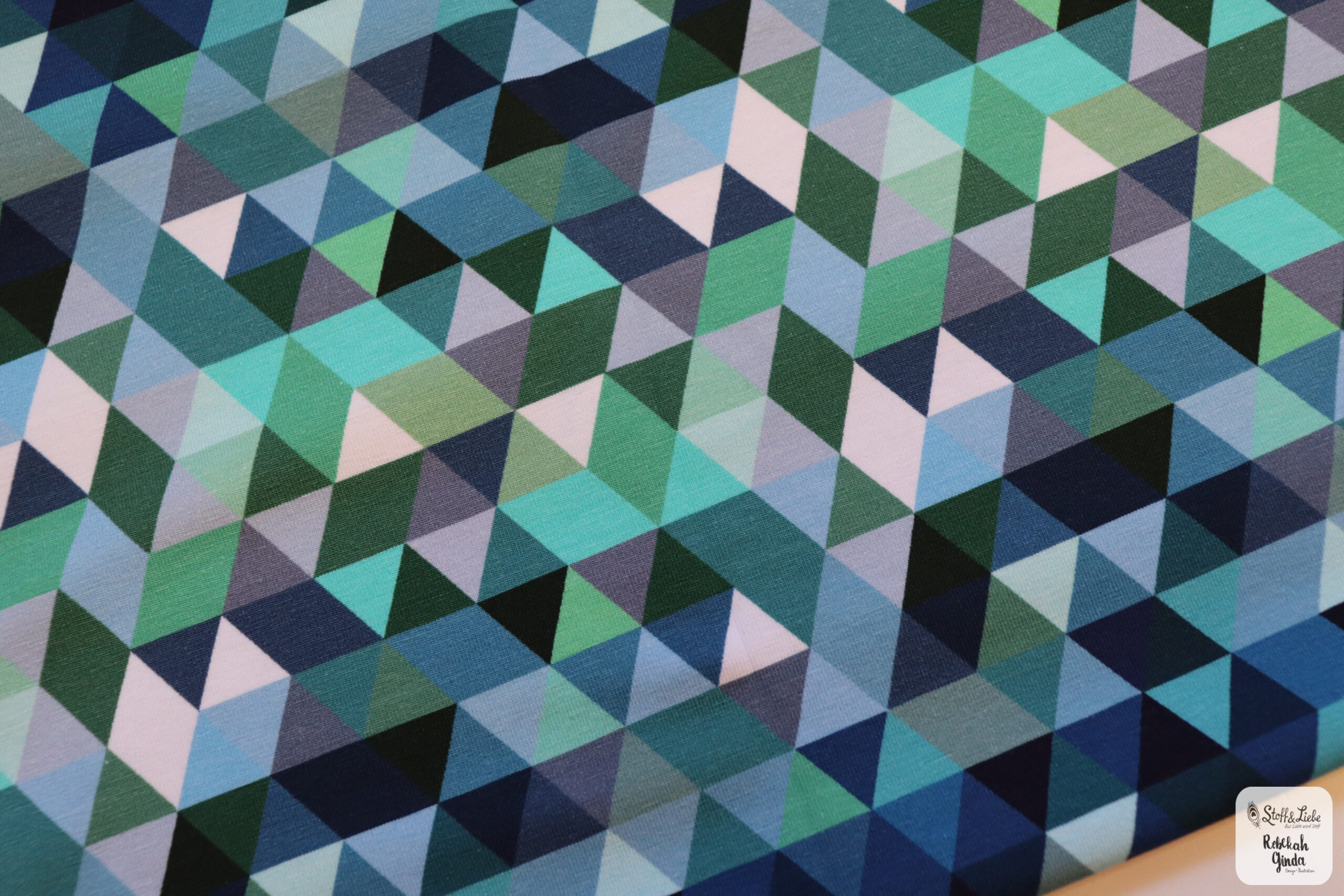 Last but not least, unser Kombistoff, die Fragmente. Auf den ersten Blick passen sie vielleicht besser zu den Stoffen in Blau-Grün, aber lasst Euch gesagt sein, auch zur Farbvariante in Pink-Mint sind sie passend.