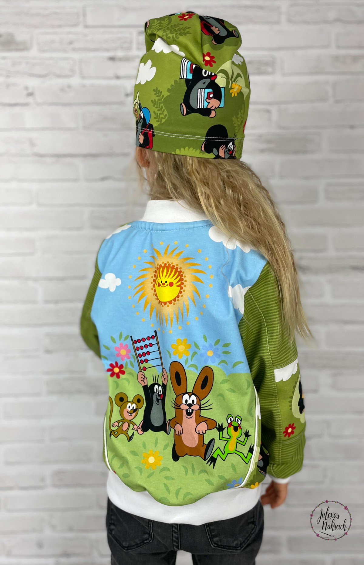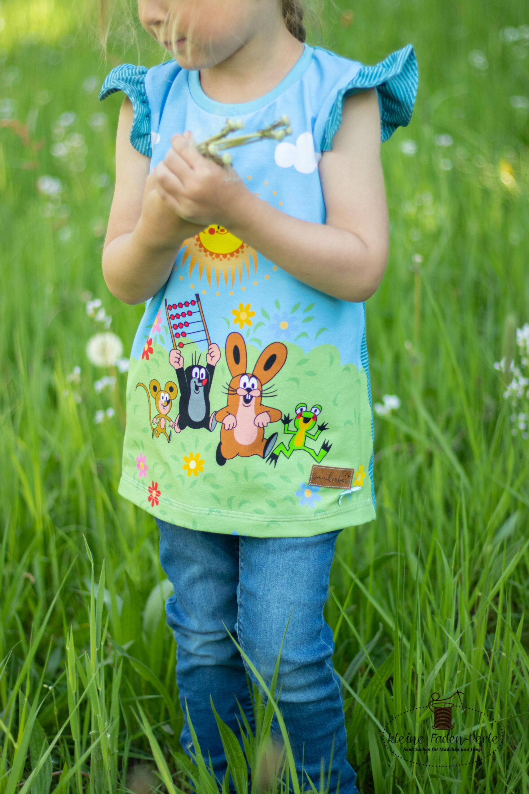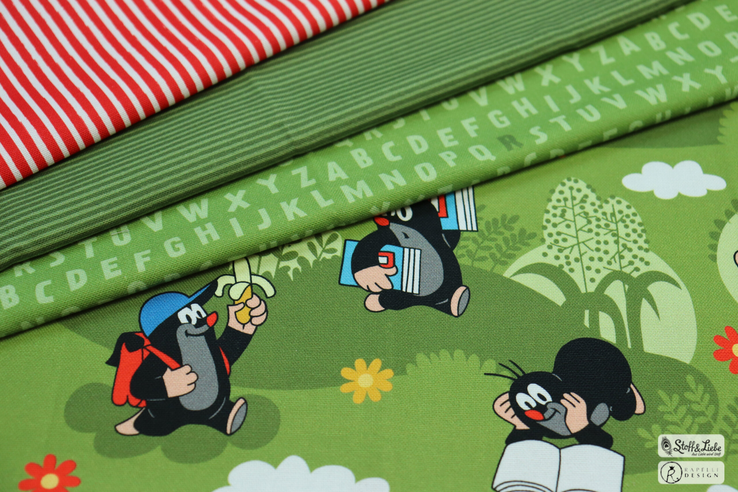 Unsere „Der kleine Maulwurf – Endlich Schule“ Kollektion auf Jersey besteht aus einem Panel, einem Allover und einem Kombistoff in zwei Farbstellungen. Außerdem gehören Ringelies in drei Farbvarianten und ein weiterer brandneuer Kombistoff in Leinenoptik dazu. Die Stoffe erhaltet Ihr wie gesagt auf Jersey in unserer gewohnten Spitzenqualität. Die Materialzusammensetzung beträgt 95 % Baumwolle und 5 % Elasthan. Dieses Design wurde von der lieben Marleen von Rapelli Design umgesetzt.