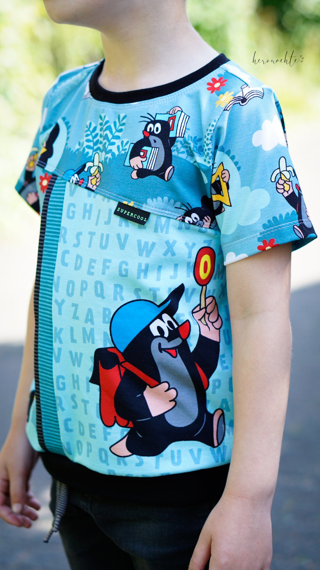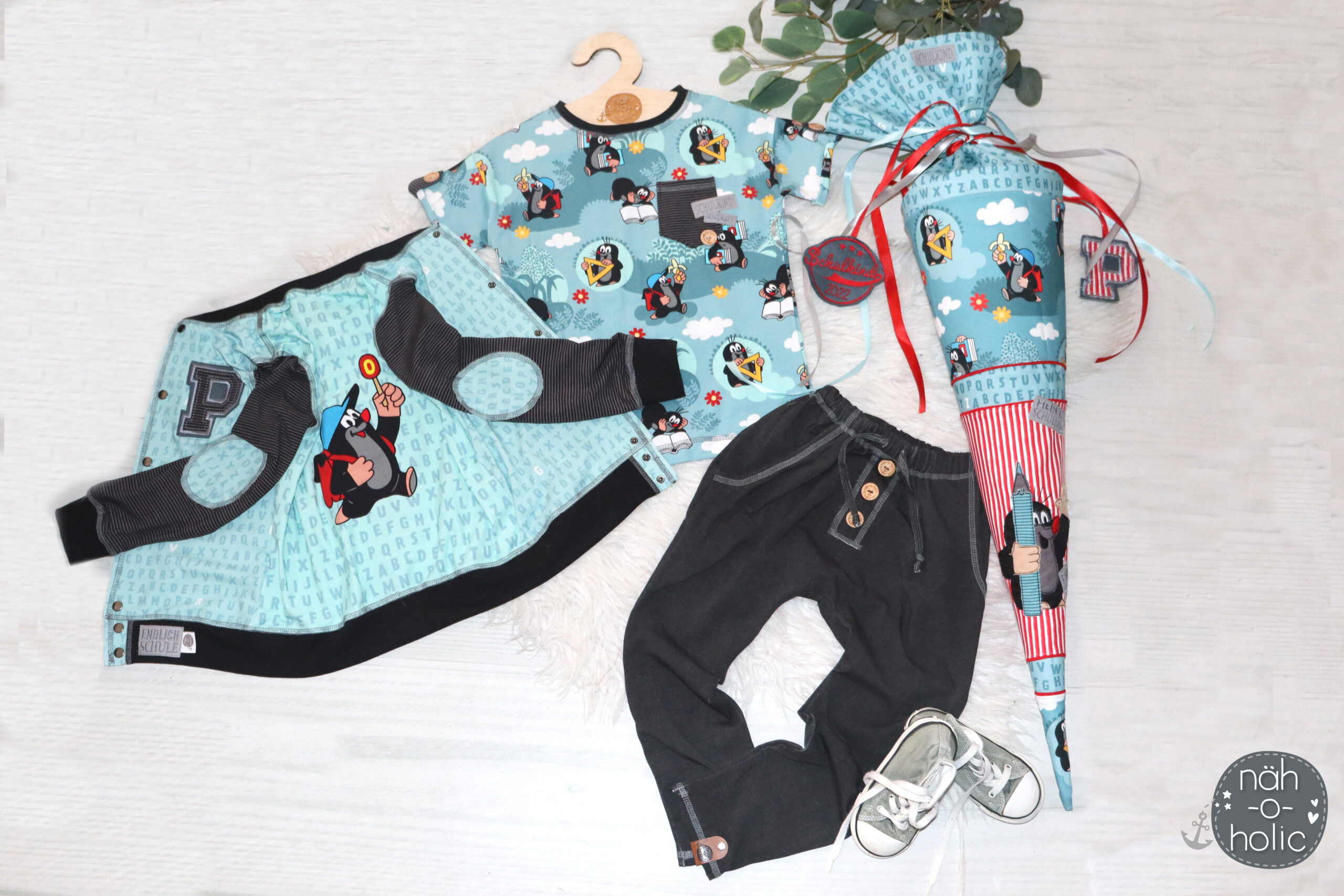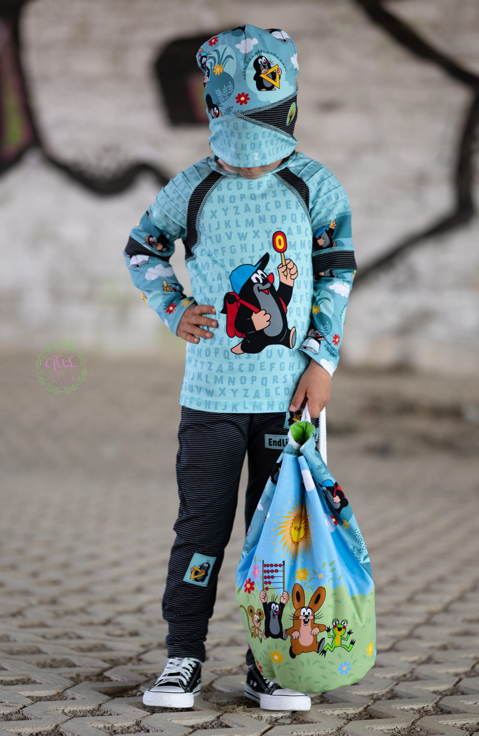 Wir haben die „Der kleine Maulwurf – Endlich Schule“ Kollektion für Euch direkt in zwei unterschiedlichen Materialien: Jersey und Canvas und jeweils in zwei Farbvarianten. Mit den Farben „Oliv“ sowie „Smokey Blue“ haben wir neutrale Farben gewählt, die sich wunderbar auch mit weiteren Farben kombinieren lassen.