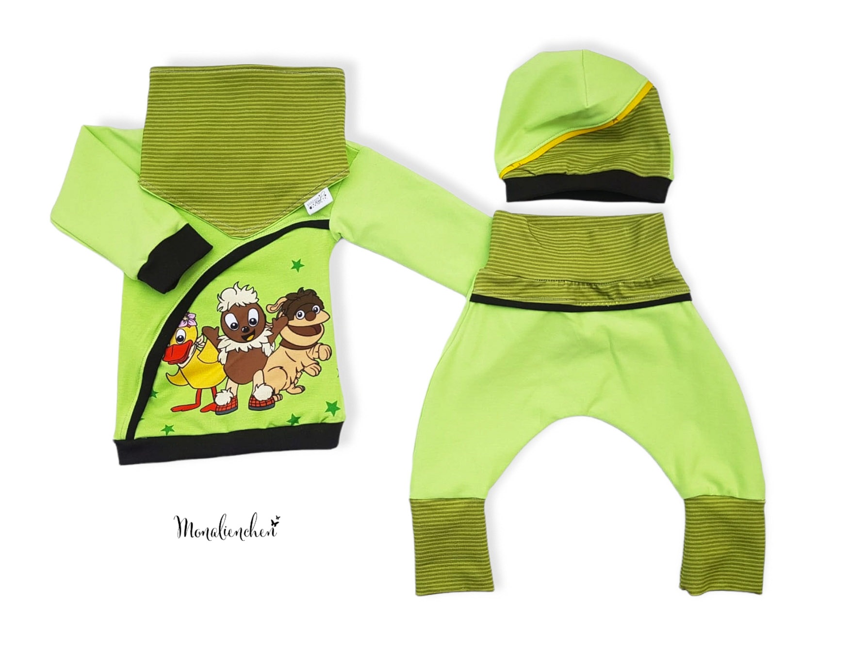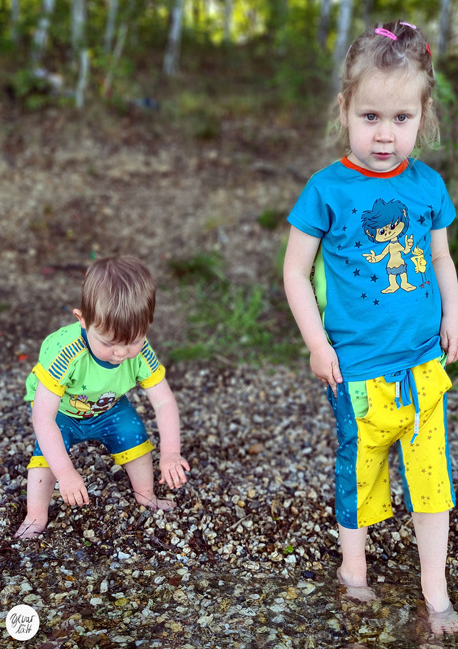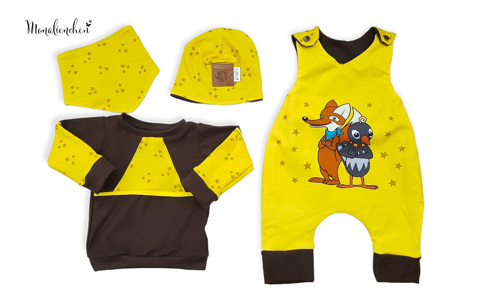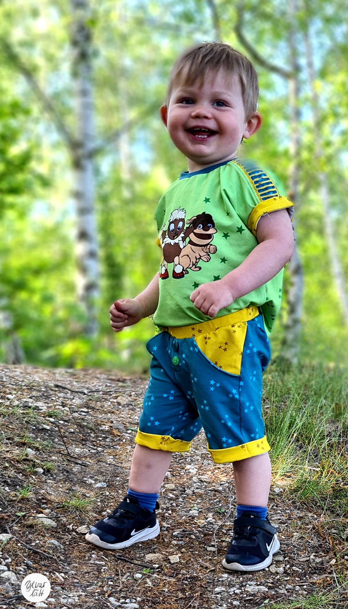 Die Kollektion „Unser Sandmännchen – All Stars“ besteht aus einem Panel und drei passenden Kombistoffen. Alle Stoffe der Kollektion erhaltet Ihr auf Jersey mit einer Materialzusammensetzung von 95 % Baumwolle und 5 % Elasthan und wurden von unserer lieben Marleen von Rapelli Design für uns umgesetzt.
