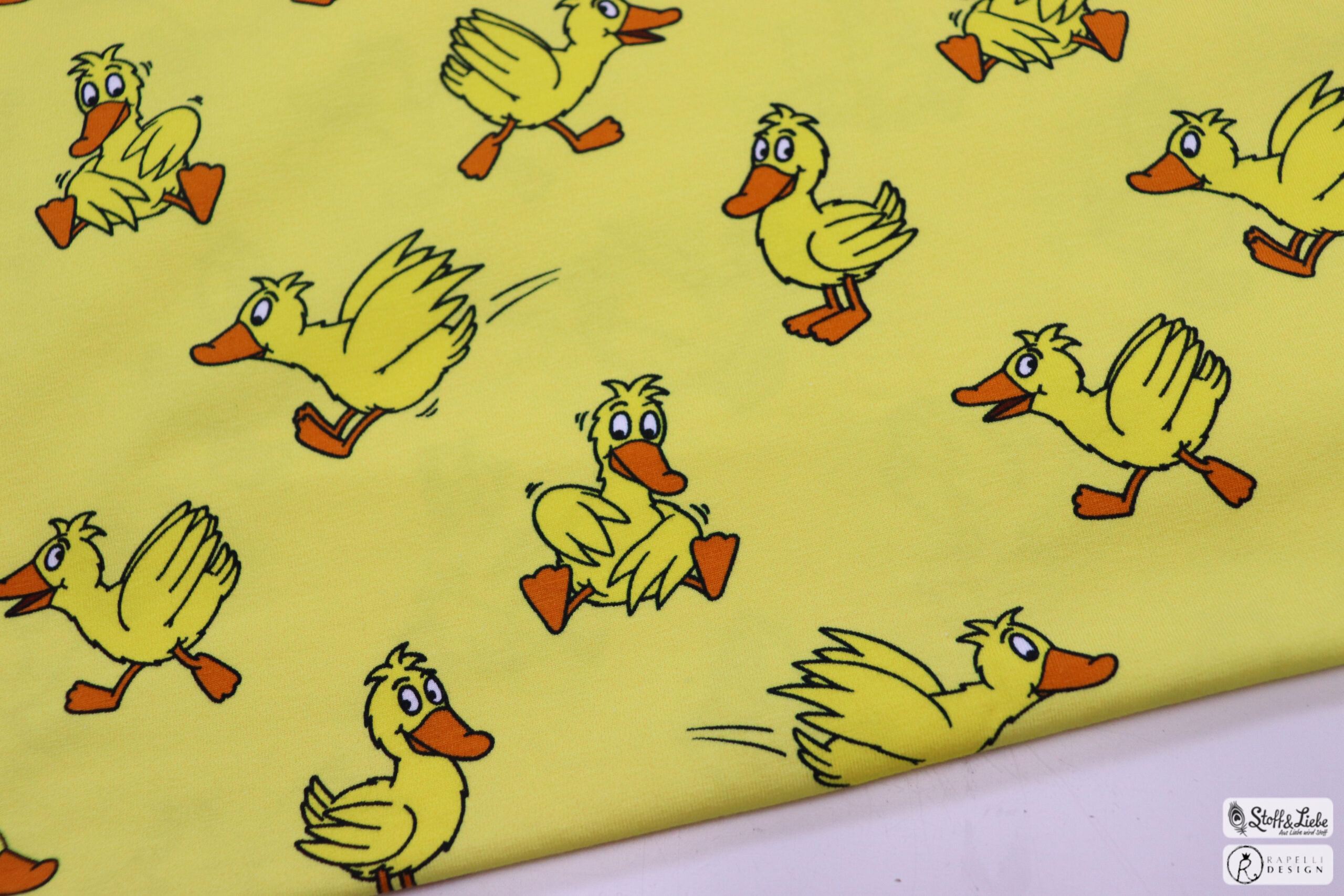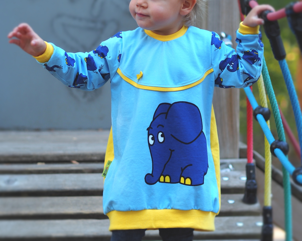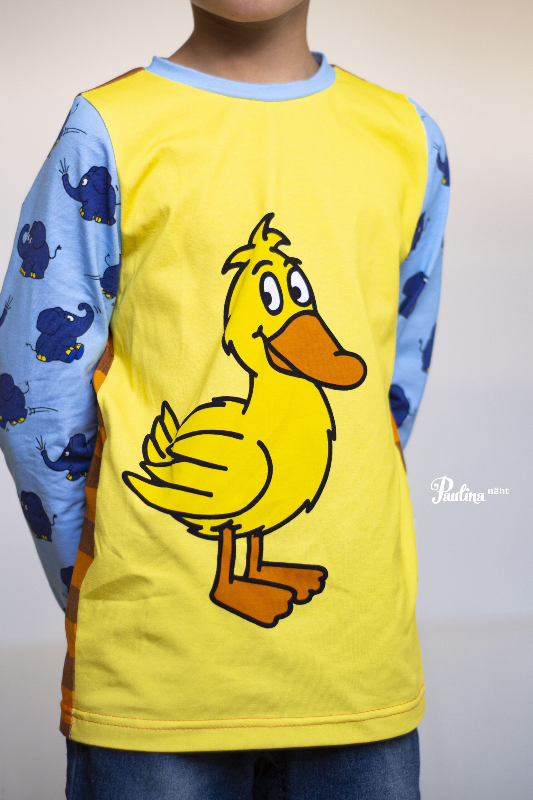Außerdem gehören zu dieser Kollektion zu jedem Panelteil ein perfekt harmonierender Allover. Ihr könnt wählen zwischen dem Elefanten auf Blau, der Ente auf Gelb und der Maus auf Creme. Hier sind die Motive zwischen ca. 4,5 und 7,5 cm hoch.
