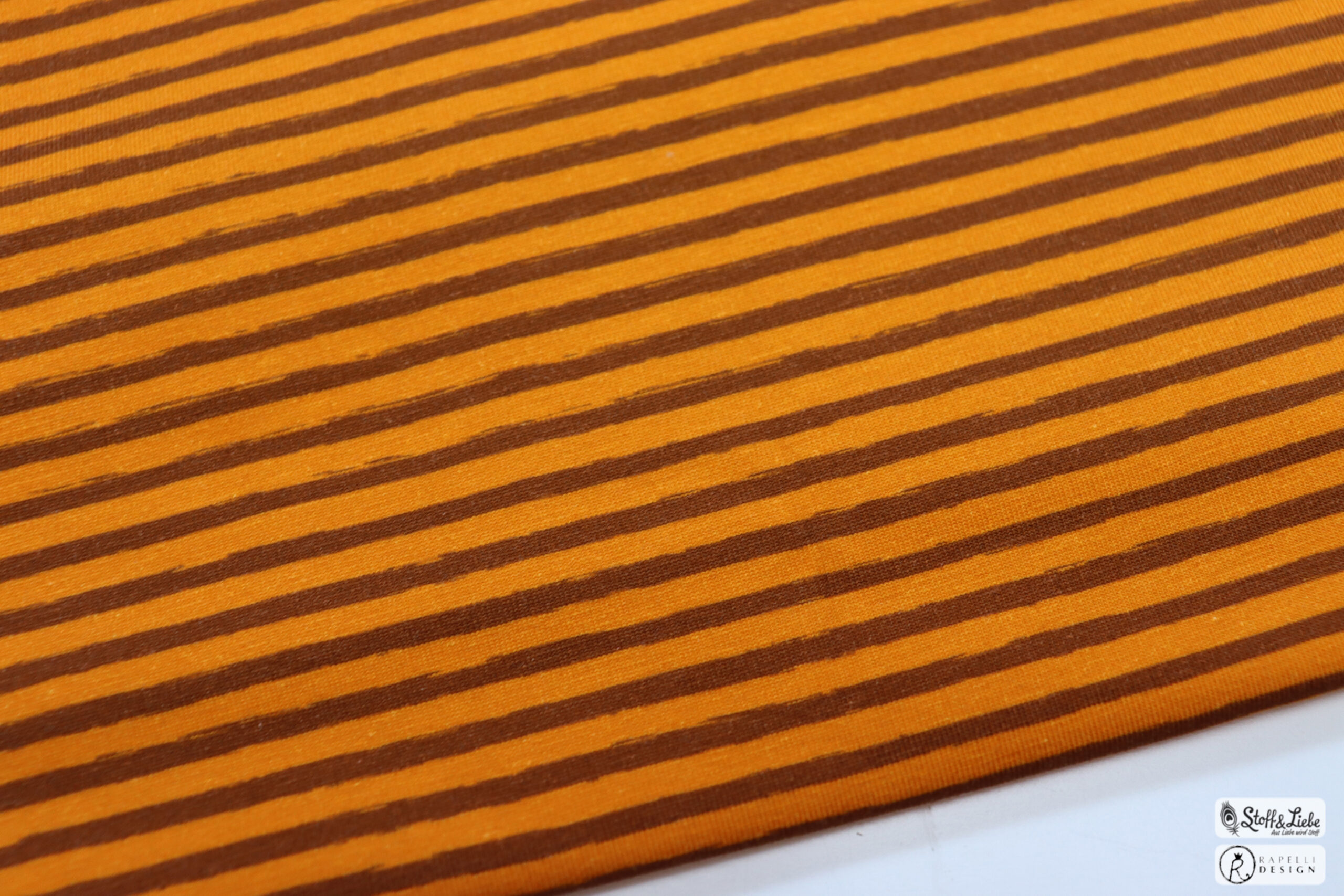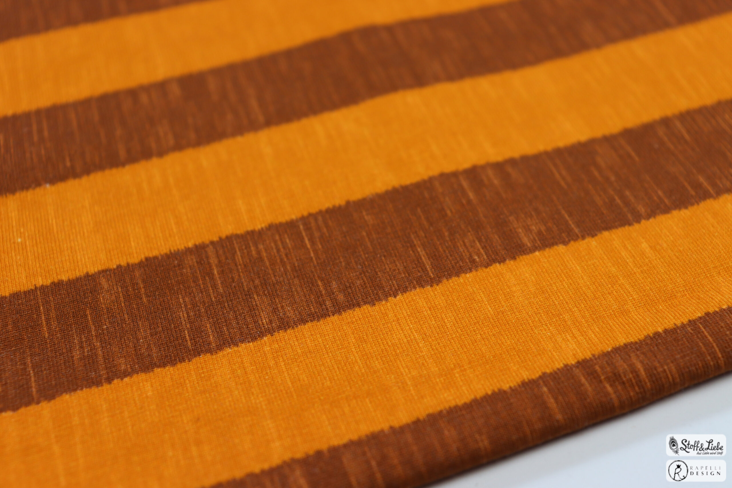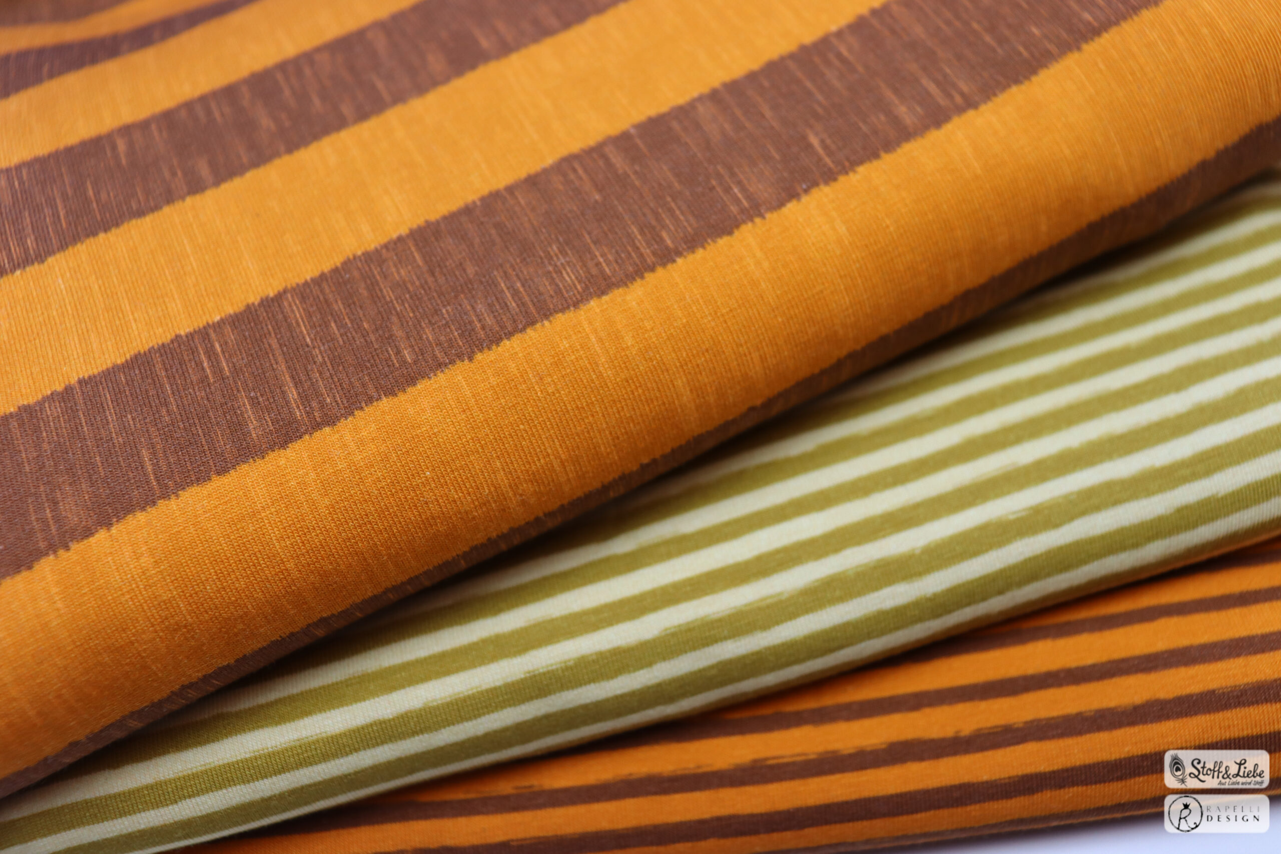 Bei dieser Kollektion mit dabei sind die Maccaronies in Sand und Mausorange, sowie die Blogg Streifen (Höhe ca. 2,5 cm) ebenfalls in Mausorange. Alle Stoffe weisen einen leichten „brushed effect“ auf und machen die Stoffe dadurch zum absoluten Hingucker.