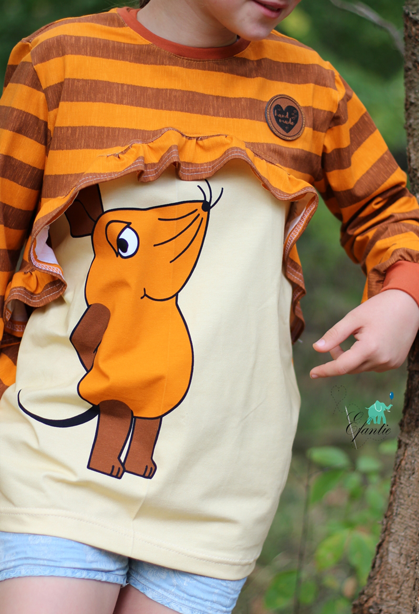 Janina hat hier Ringelies aus ihrem Fundus verwendet. Sie stammen aus der „Der kleine Maulwurf – Schule“ Kollektion 2019.