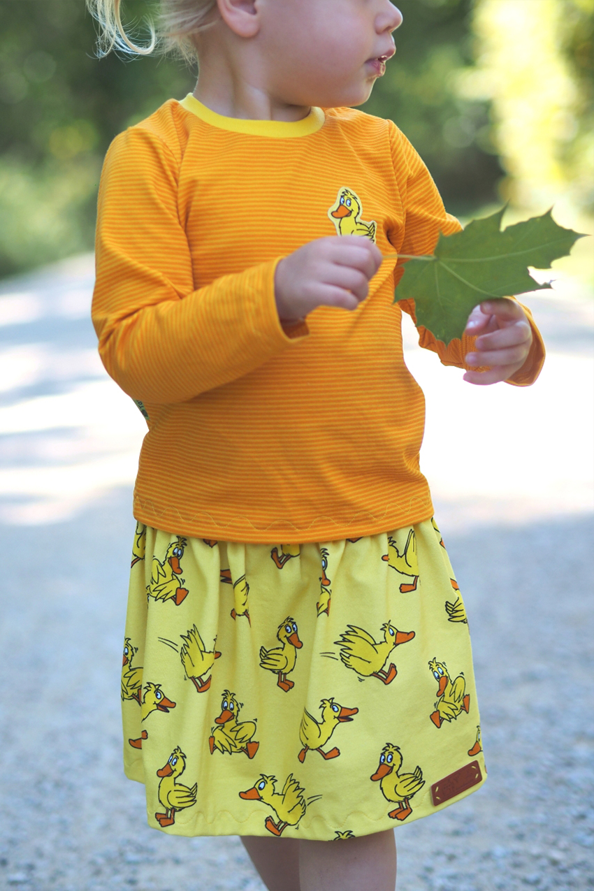 😍 welche Ringelies sind das bei dem Shirt mit Entenpatch und Entenrock??? (Blondes Mädel mit Blatt in der Hand) Richtig toll!