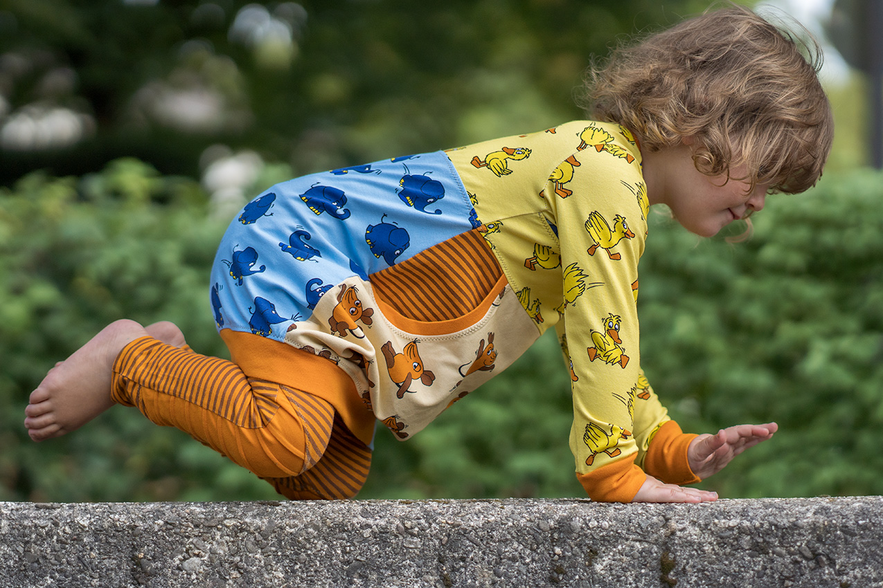 Durch die fröhlichen Motive und bunten Farben ein absoluter Gute-Laune-Stoff, findet Ihr nicht? Der Allover lässt sich nicht nur prima mit dem Panel kombinieren, sondern auch allein total prima vernähen.