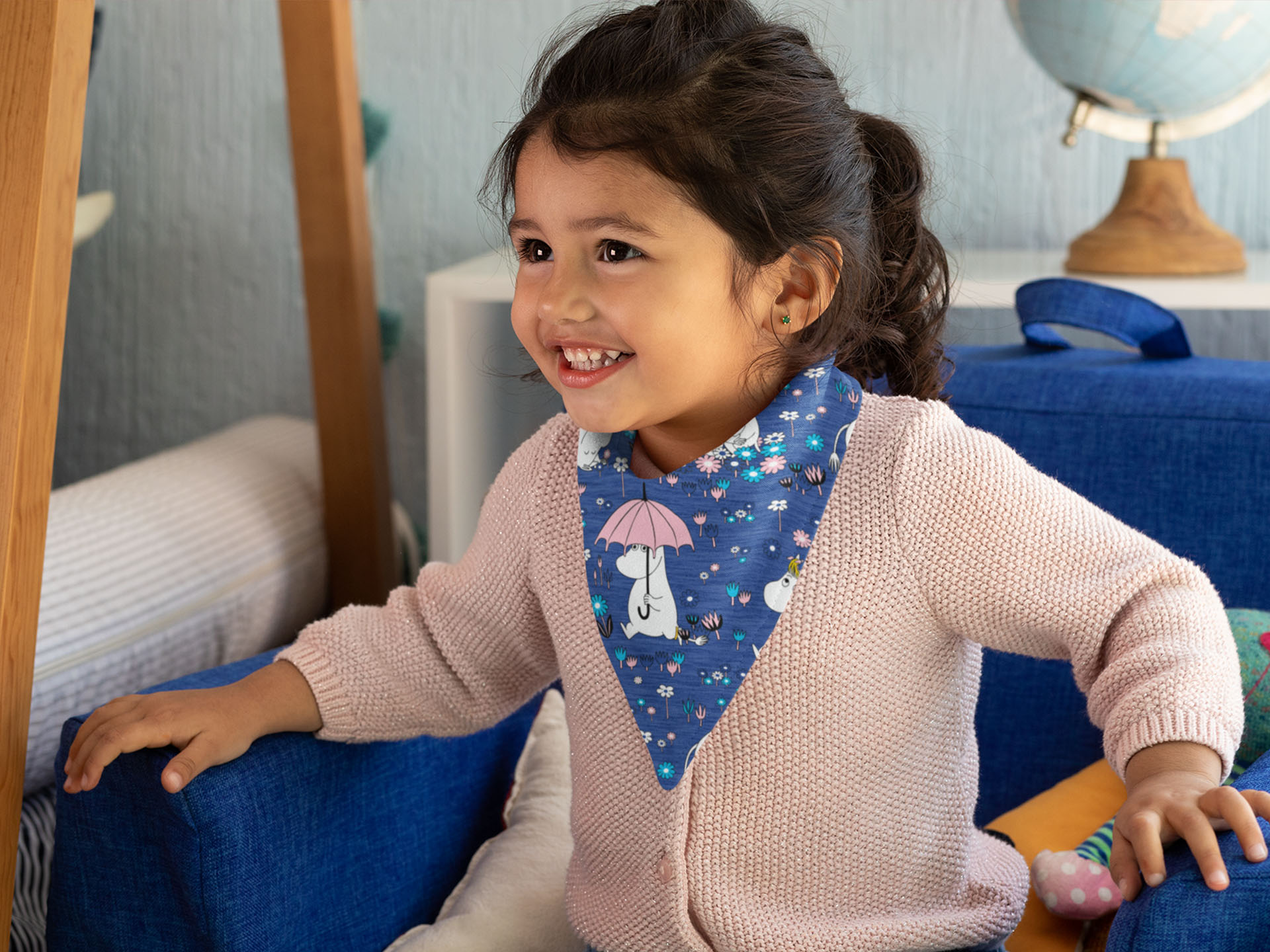 „Snorkmaiden“ ist die Freundin und Spielgefährtin von „Moomintroll“. Sie mögen sich sehr und lieben es, zusammen Zeit zu verbringen. Sie ist fröhlich und voller Energie, obwohl ihre Angewohnheit, plötzlich ihre Meinung zu ändern, manchmal die Menschen ein wenig irritieren kann. Wenn sie verärgert ist, wird sie hellgrün. Ihr Markenzeichen sind ihr immer ordentlich gekämmter Pony und ihre goldene Fußkette. Die Fußkette könnt Ihr übrigens natürlich auch auf den Stoffen entdecken. Apropos, Stoffe! Es wird Zeit, sie Euch vorzustellen.