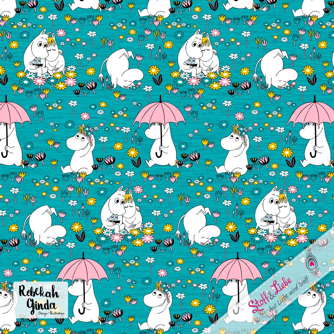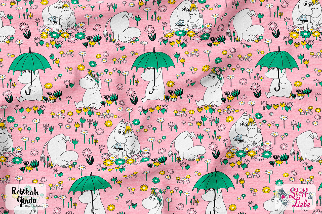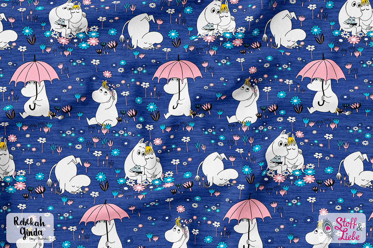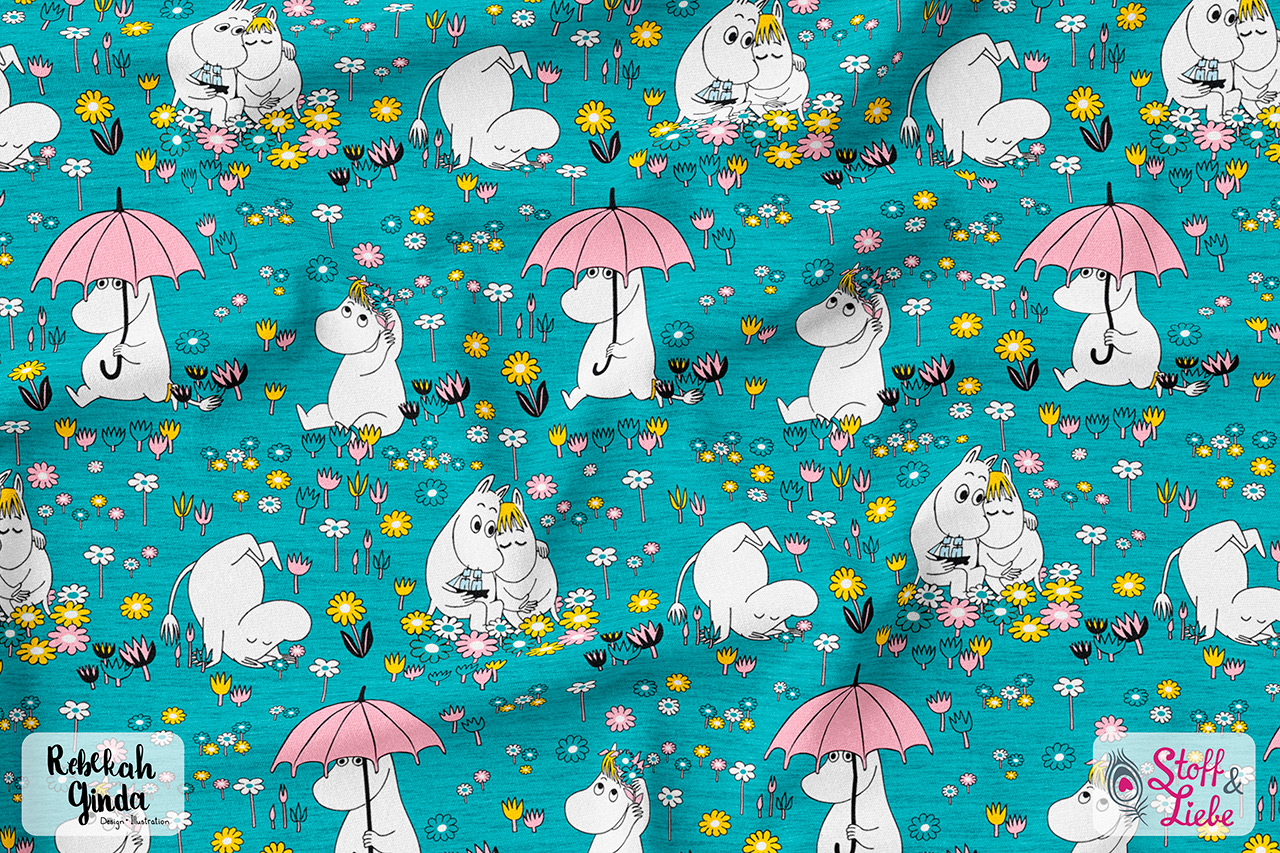 Natürlich gehört auch zu dieser Kollektion ein Allover. „Moomins Freunde“ haben wir für Euch in drei wundervollen Farben: Blau, Türkis und Rosa. Auch hier ist der Hintergrund, wie beim Panel, meliert und damit absolut passend. Euch stehen also wieder alle Möglichkeiten offen. Egal ob Ihr die Stoffe allein oder mit dem Panel vernäht, Eure Nähwerke werden die absoluten Hingucker sein und bestimmt jede Menge gute Laune versprühen.