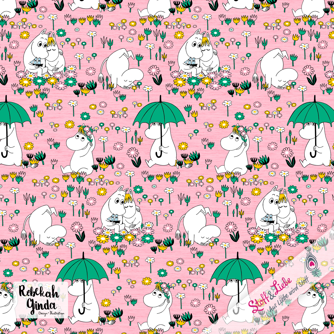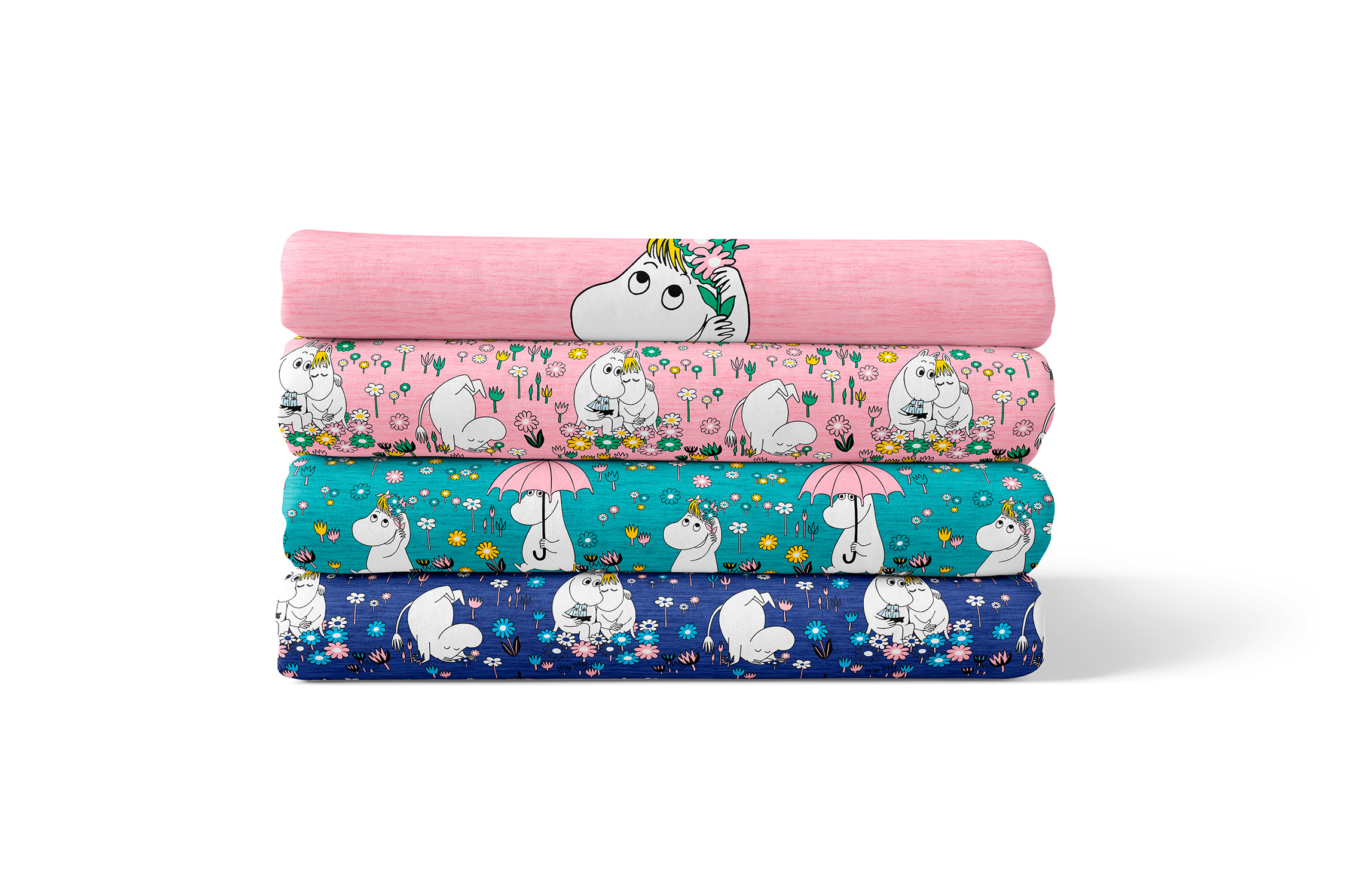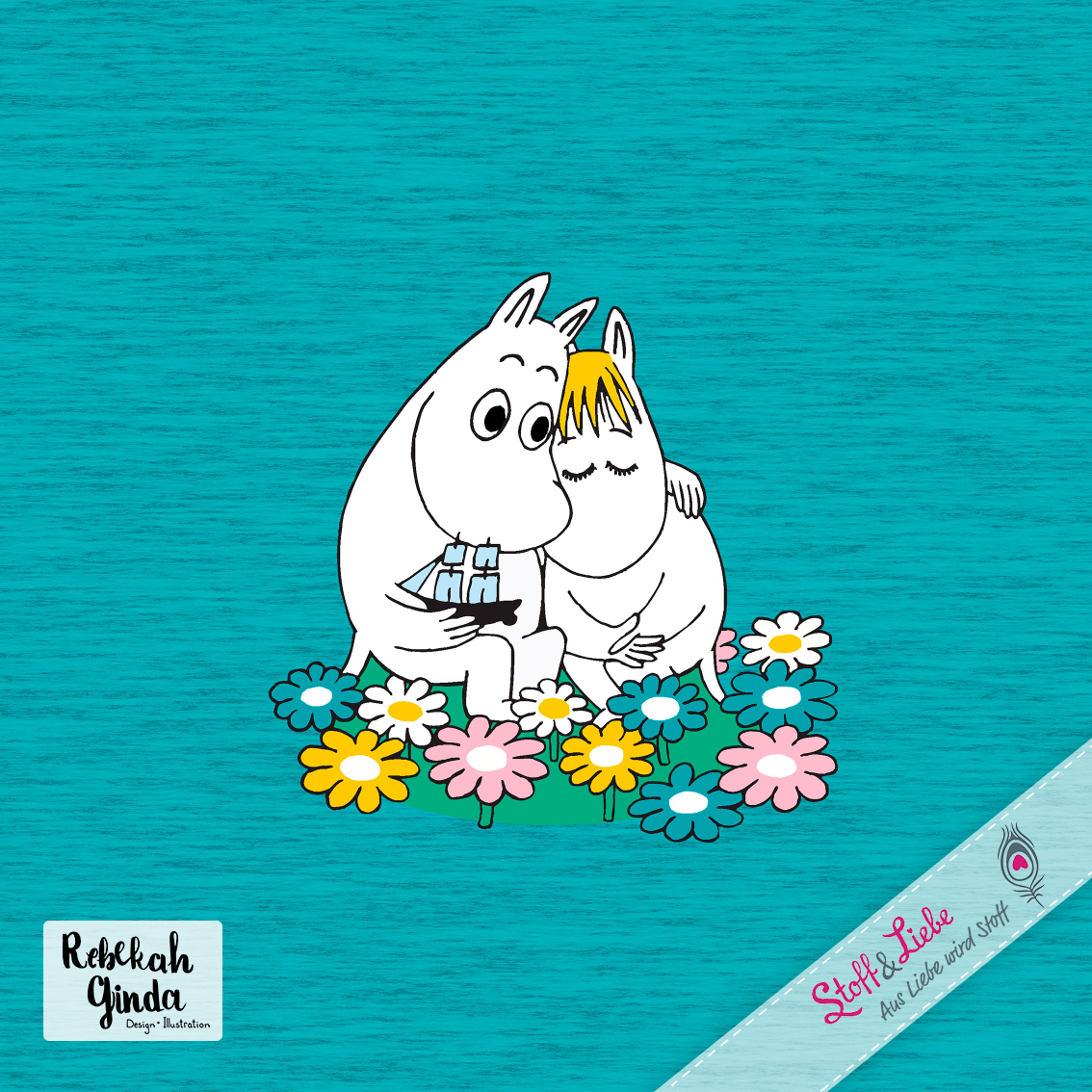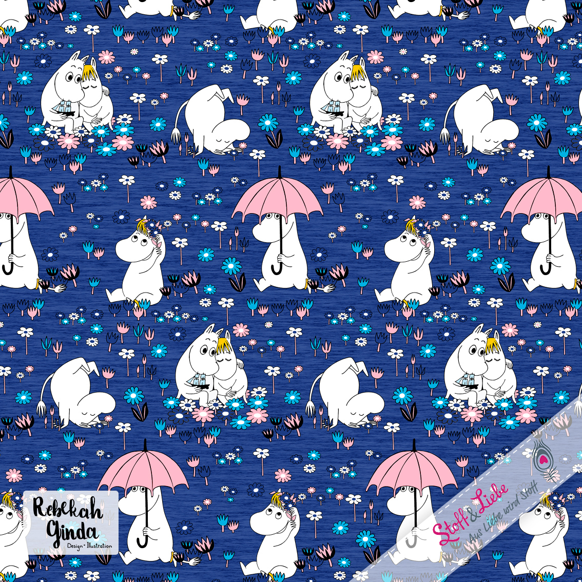 Natürlich gehört auch zu dieser Kollektion ein Allover. „Moomins Freunde“ haben wir für Euch in drei wundervollen Farben: Blau, Türkis und Rosa. Auch hier ist der Hintergrund, wie beim Panel, meliert und damit absolut passend. Euch stehen also wieder alle Möglichkeiten offen. Egal ob Ihr die Stoffe allein oder mit dem Panel vernäht, Eure Nähwerke werden die absoluten Hingucker sein und bestimmt jede Menge gute Laune versprühen.