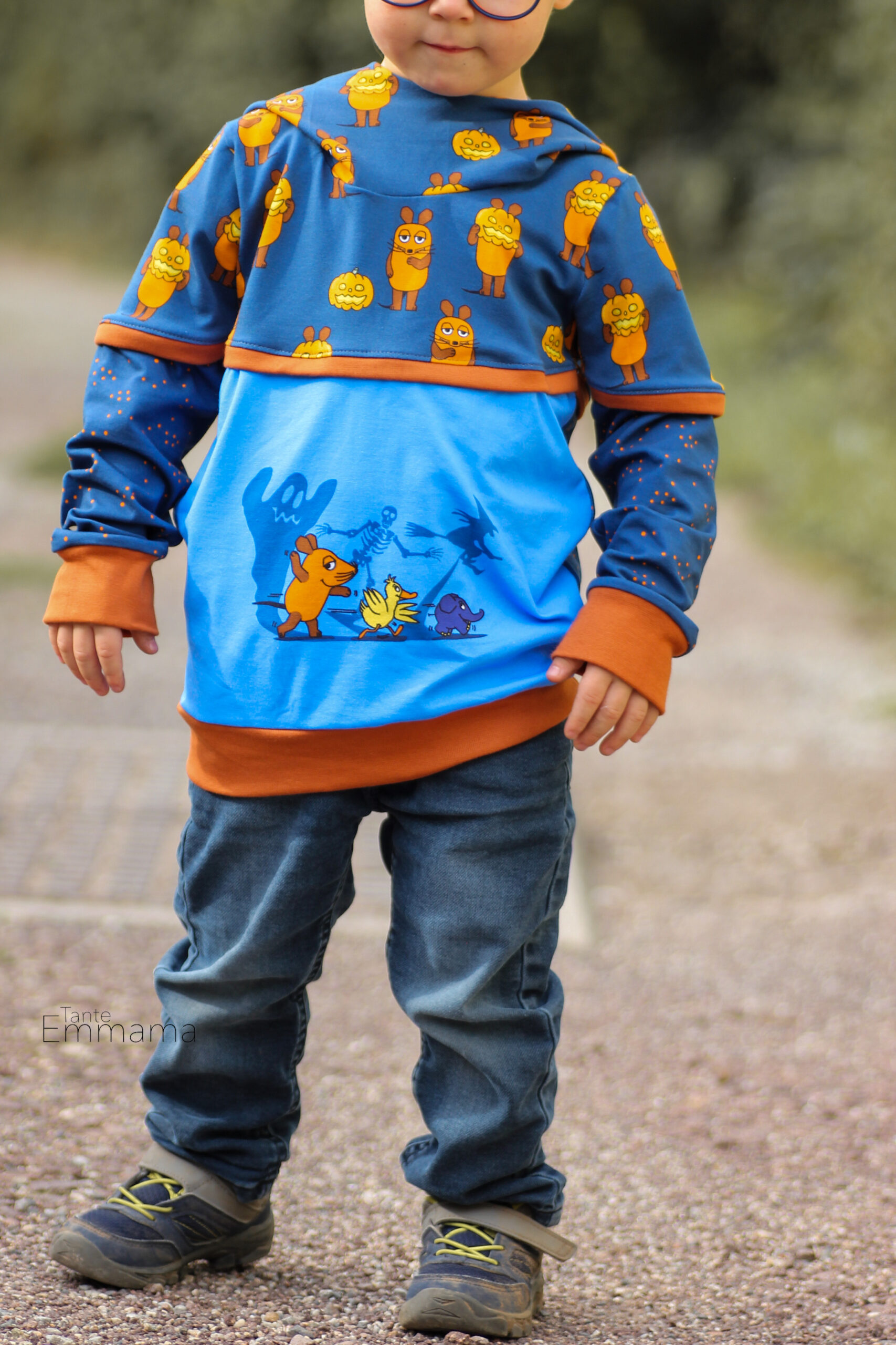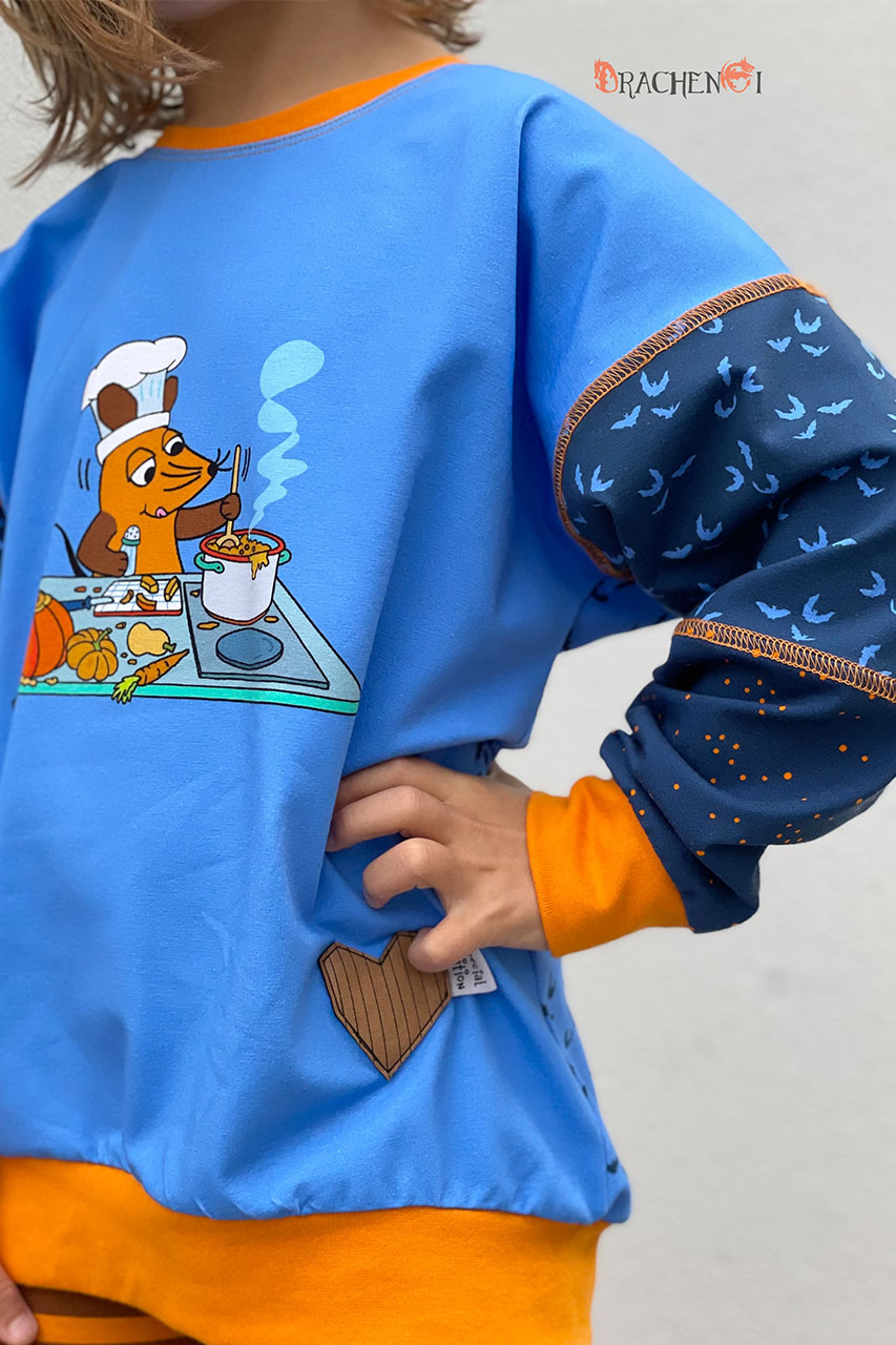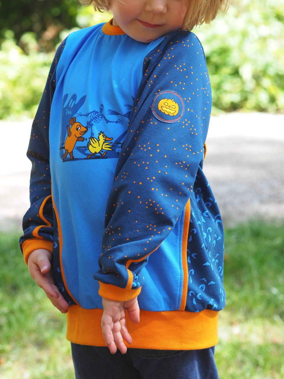 das eine ist der Stoffmixpulli von Klimperklein und der Pulli mit der Maus und dem Kürbis ist der Oscar von RosaRosa.