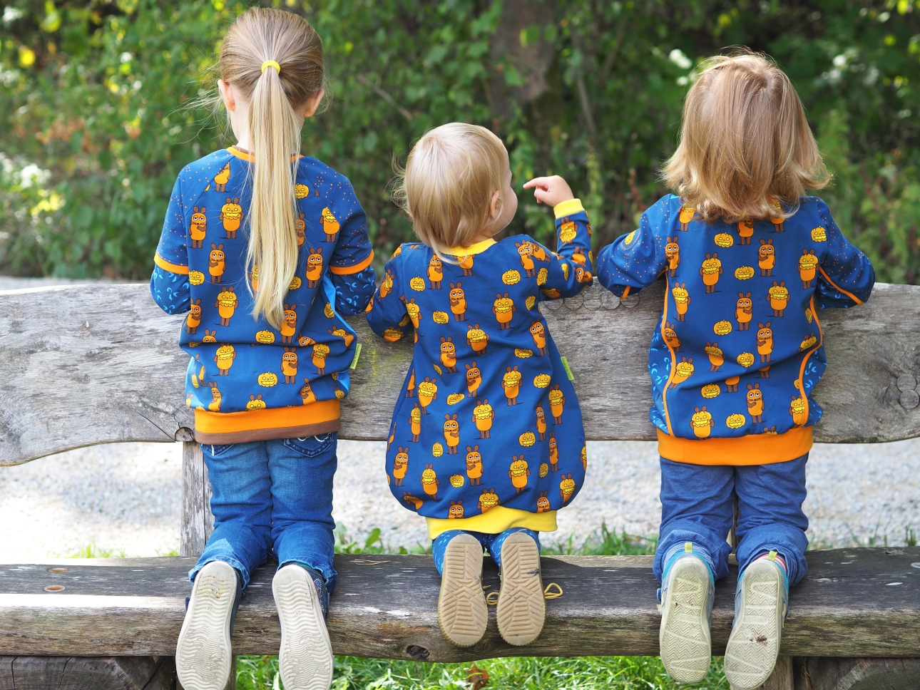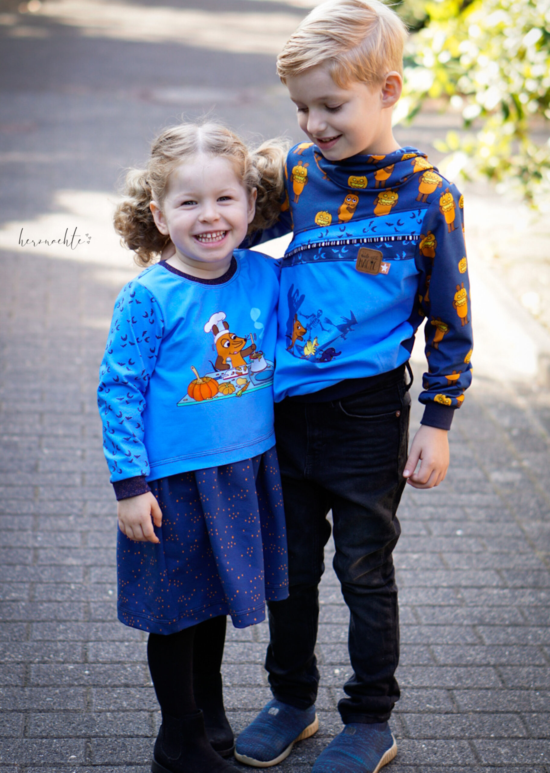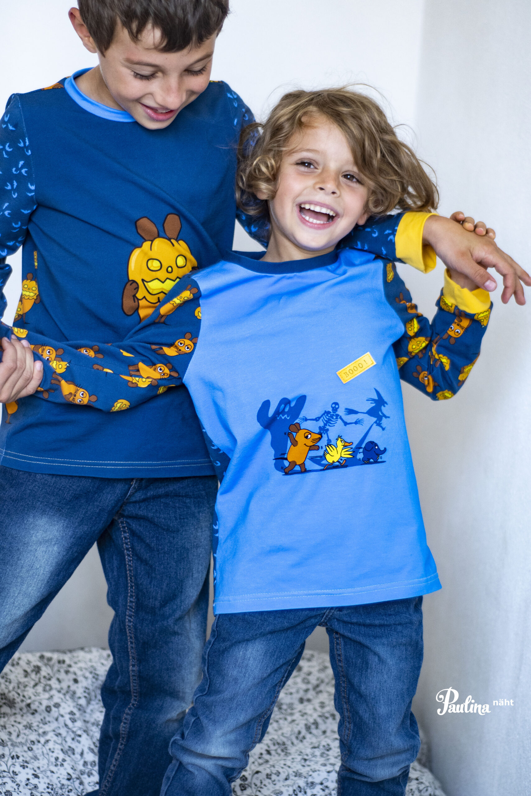 das eine ist der Stoffmixpulli von Klimperklein und der Pulli mit der Maus und dem Kürbis ist der Oscar von RosaRosa.