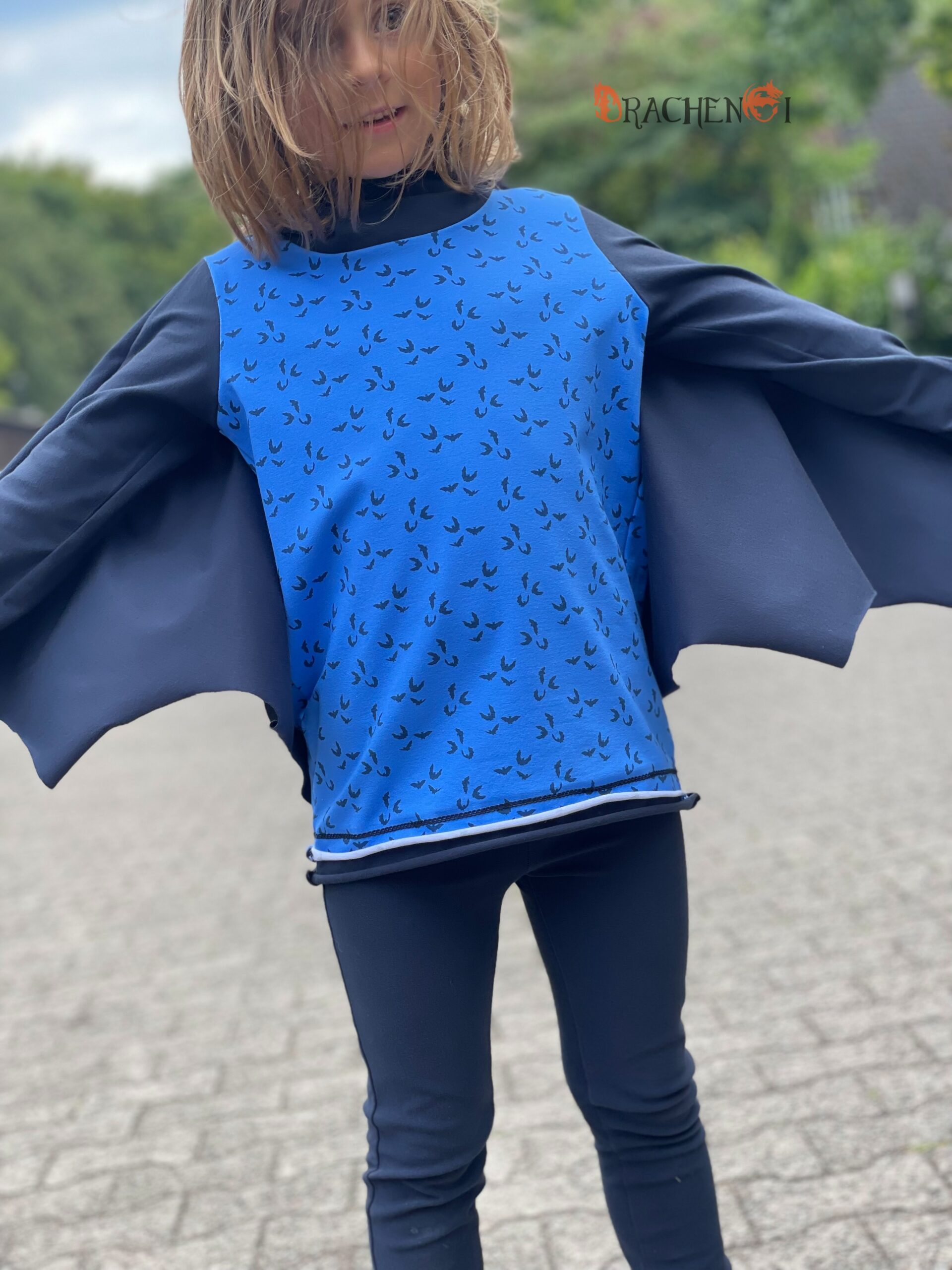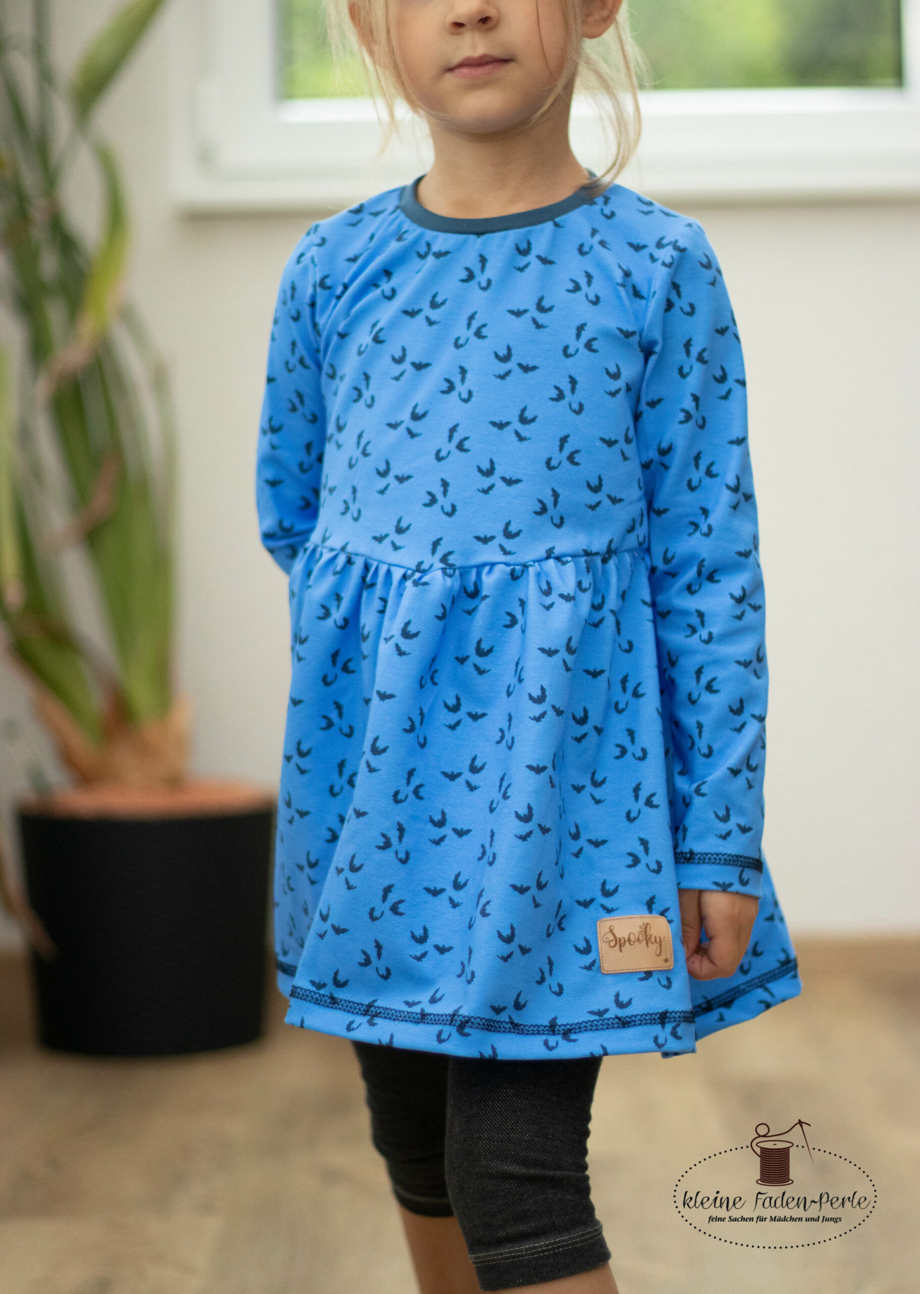 Außerdem gehören zu dieser Kollektion die „Fledermäuse“ und das gleich in zwei Farben. Sie lassen sich nicht nur ganz wunderbar mit den anderen Stoffen der Kollektion vernähen, sondern auch Solo für uns selber oder vielleicht auch für die etwas älteren Kinder? Was meint Ihr? Hiermit lassen sich bestimmt nicht nur Shirts, Kleider, Hosen uvm. nähen, sondern sie können auch die Grundlage für ein Kostüm bilden. Wir sind gespannt, was Ihr daraus macht.