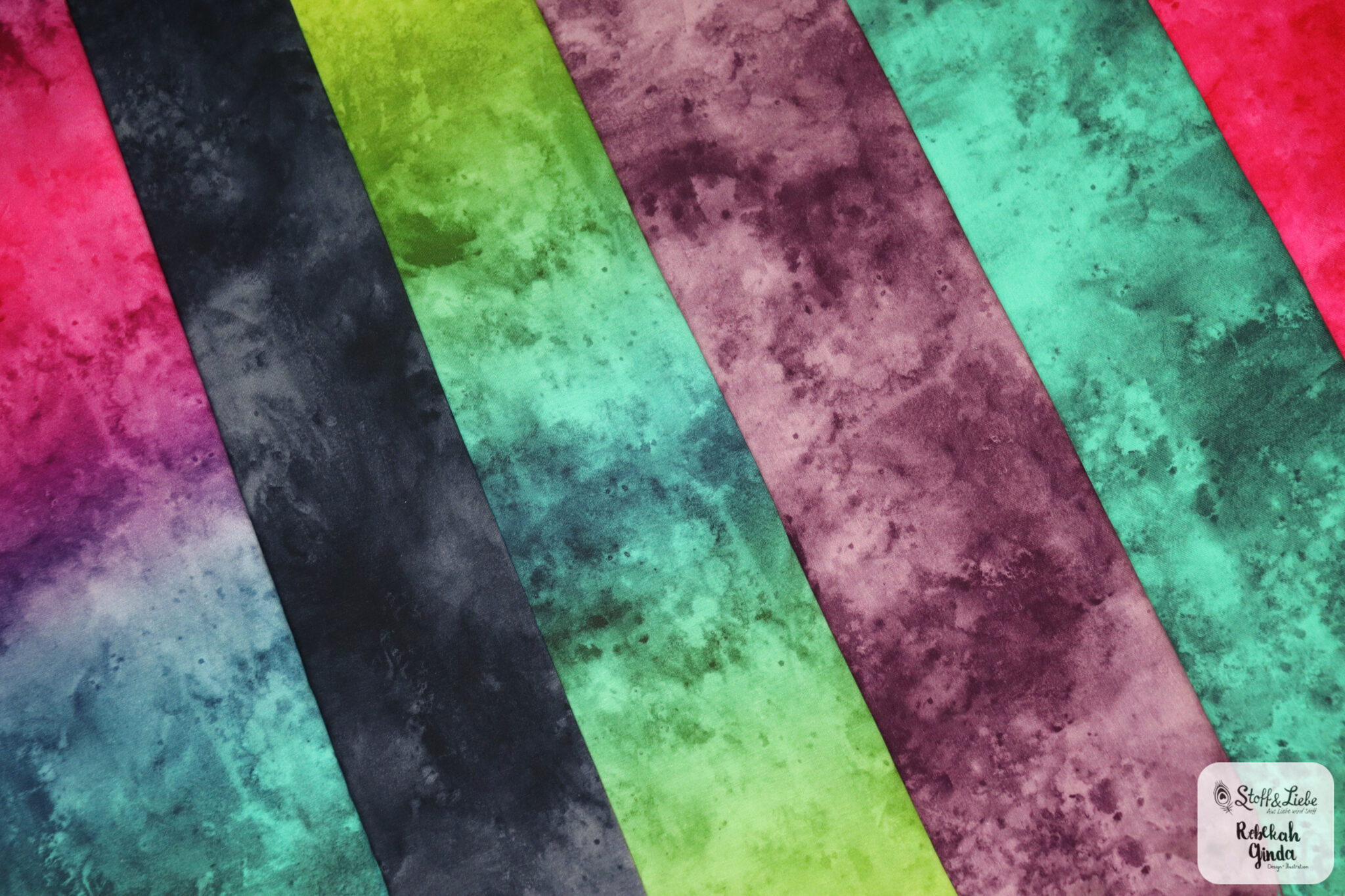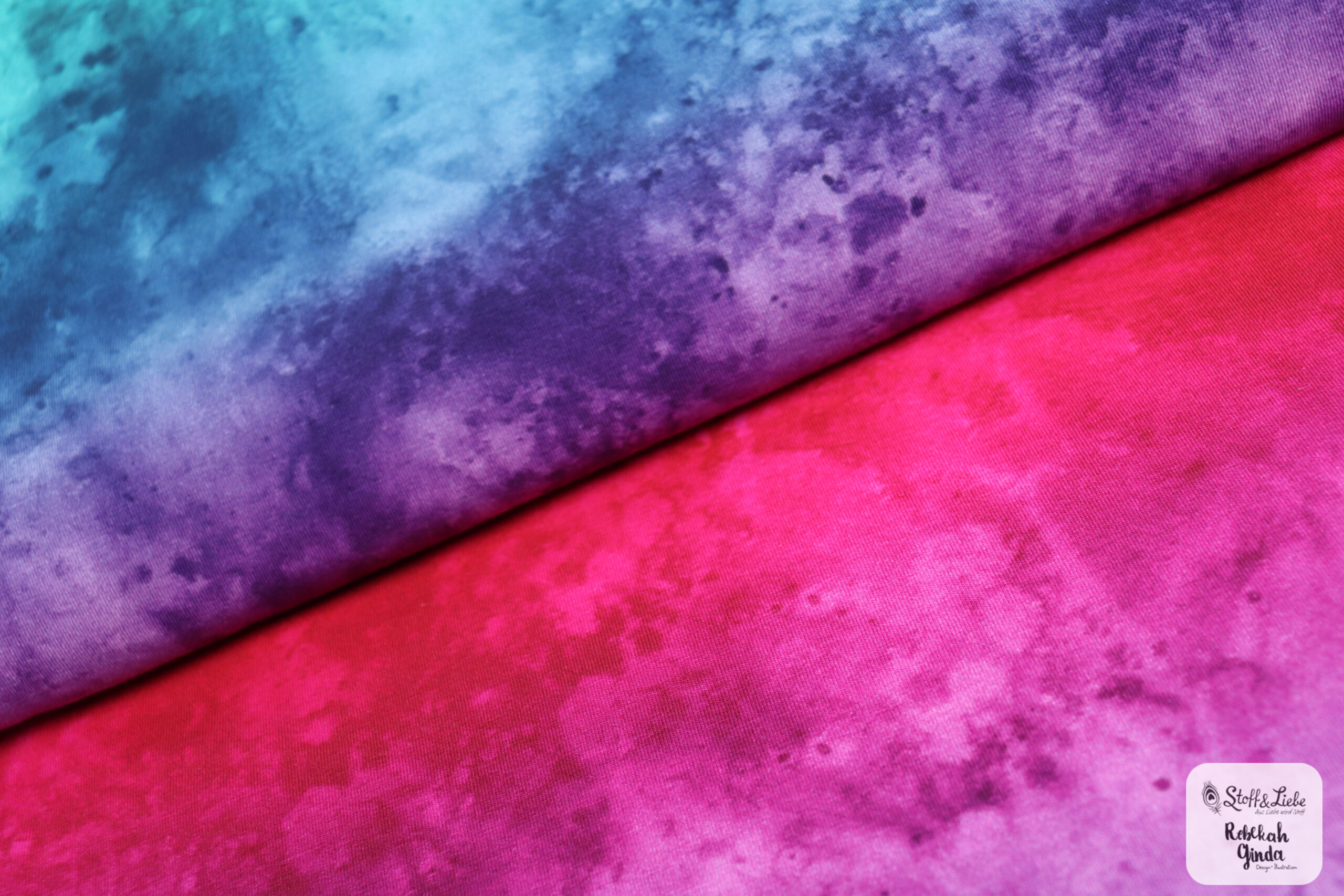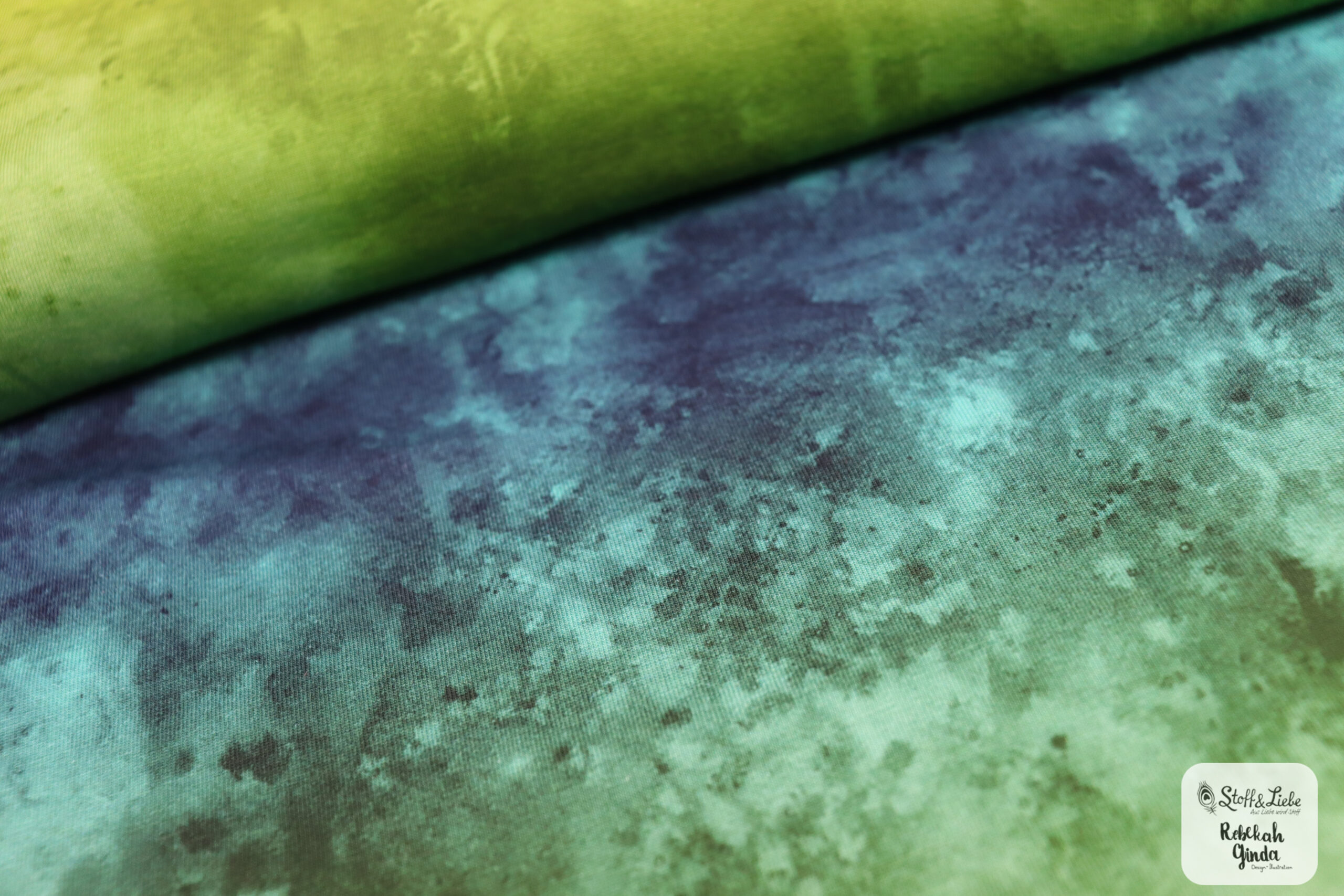 Unsere Watercolor Kollektion umfasst sechs fantastische Farbstellungen auf wunderbar weichem Jersey mit einer Materialzusammensetzung von 95 % Baumwolle und 5 % Elasthan. Das Design stammt aus der Feder von Rebekah Ginda.