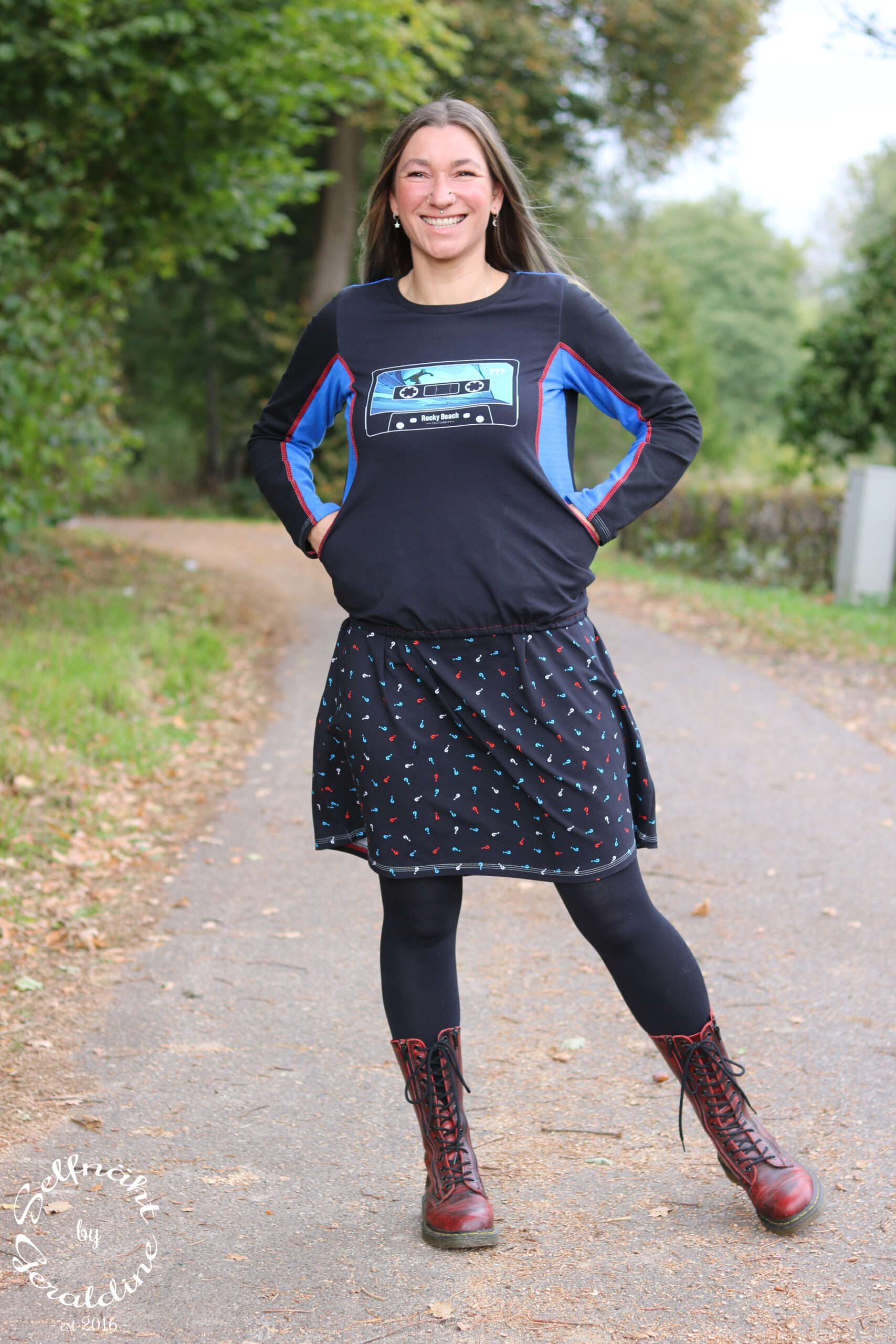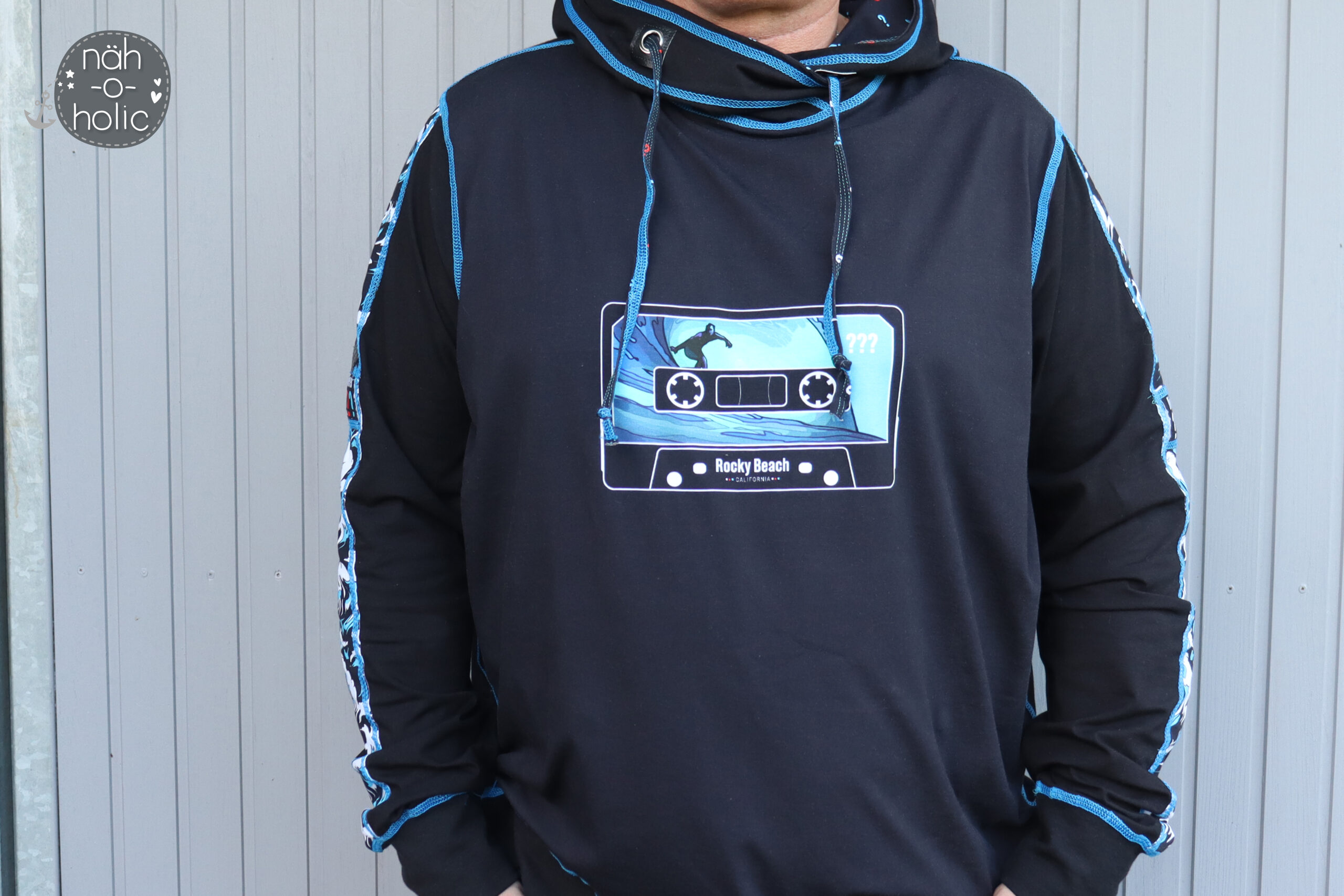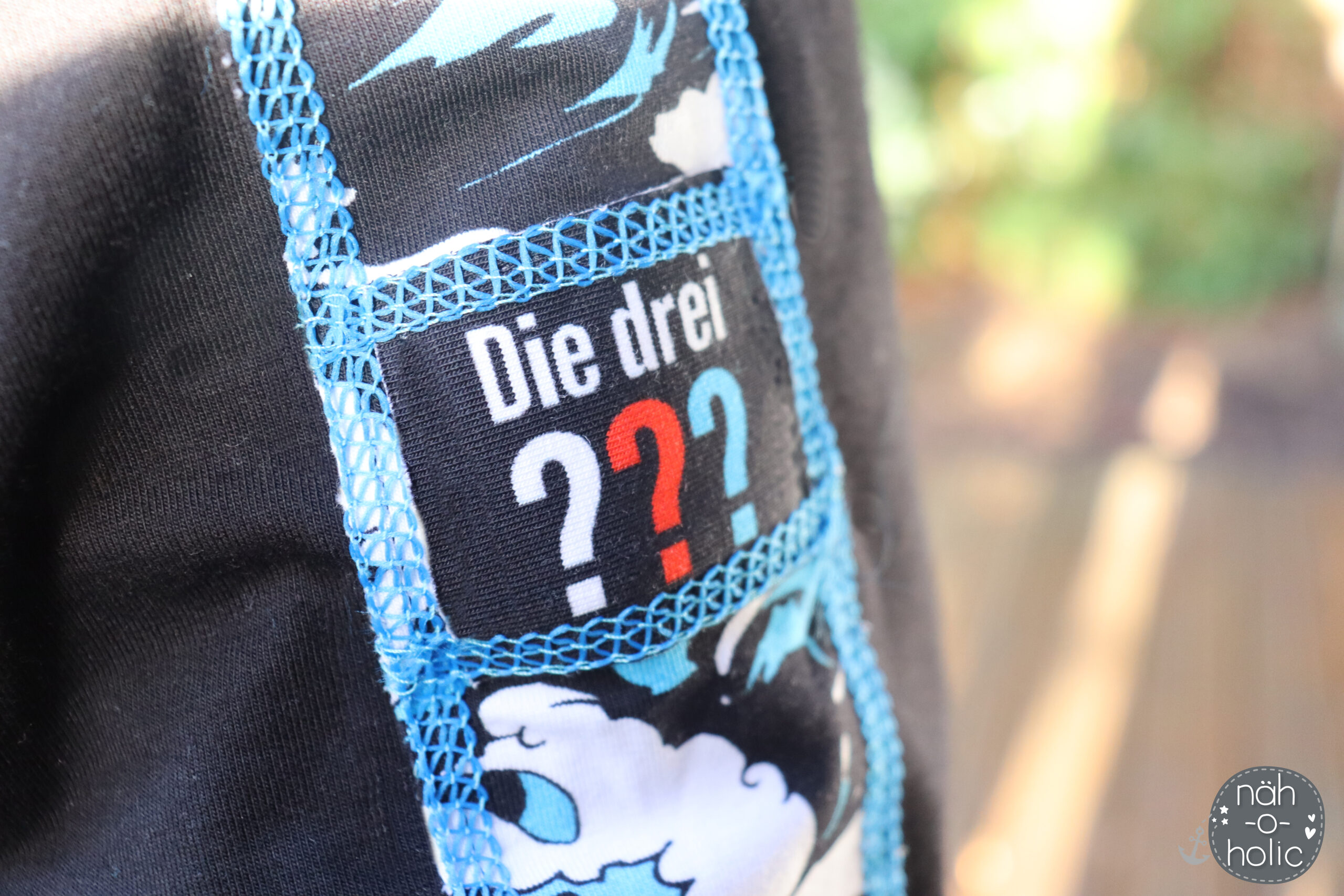 Der Allover lässt sich nicht nur perfekt mit den Panelen kombinieren, auch solo vernäht ist er einfach toll. Vielleicht bringt Ihr nur einen klitzekleinen Hinweis auf „Die drei ???“ an Eurem Nähwerk an um klarzumachen, für welches Detektivteam Euer Herz schlägt.