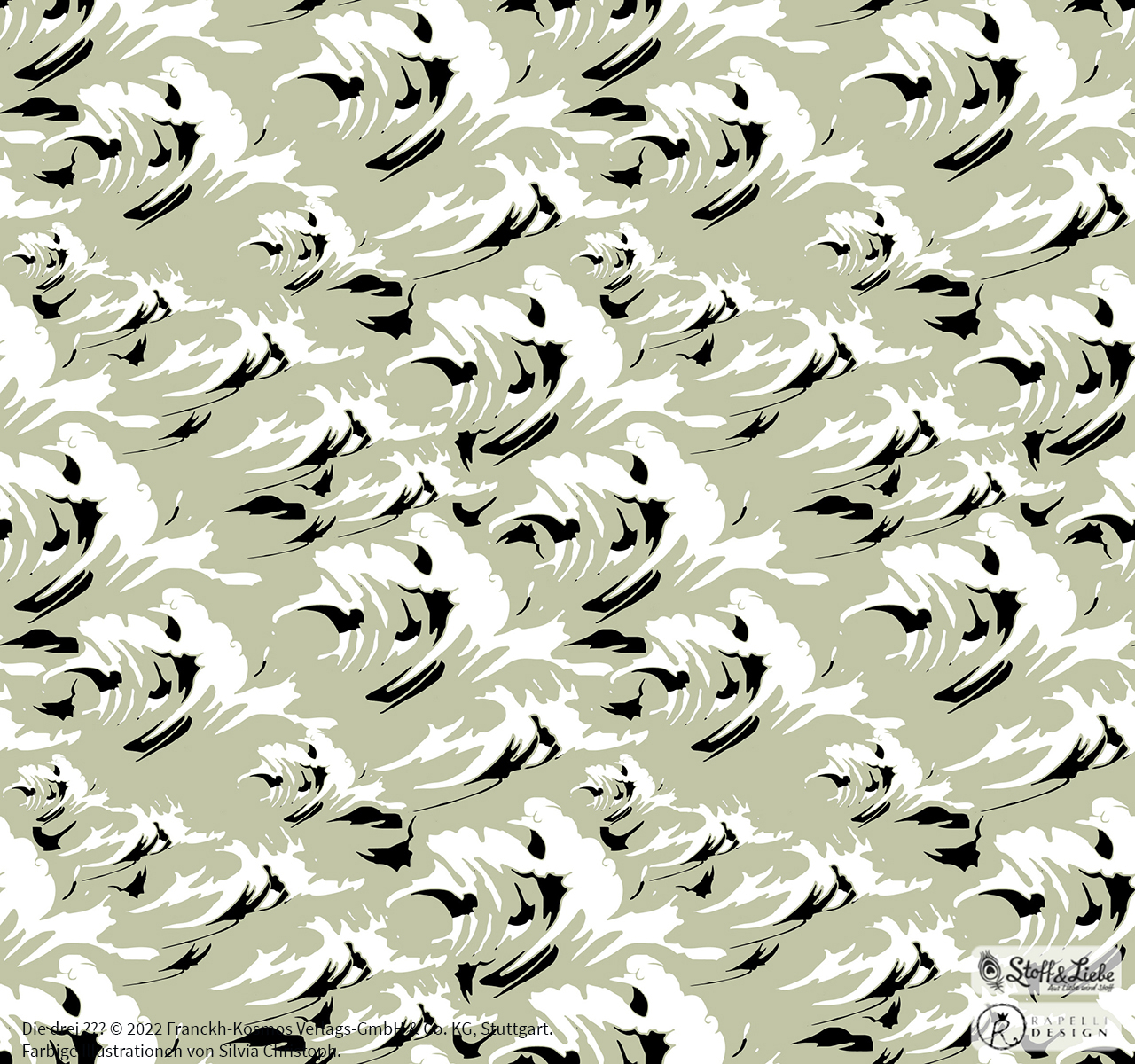 Passend zum Panel haben wir für Euch den Allover „Rocky Beach“. Ebenfalls in zwei Farbstellungen. Mit den coolen Wellen kommen aber bestimmt nicht nur Fans der „Drei ???“ auf ihre Kosten. Wir sehen schon die Augen, der Surfer und Surferinnen glänzen.
