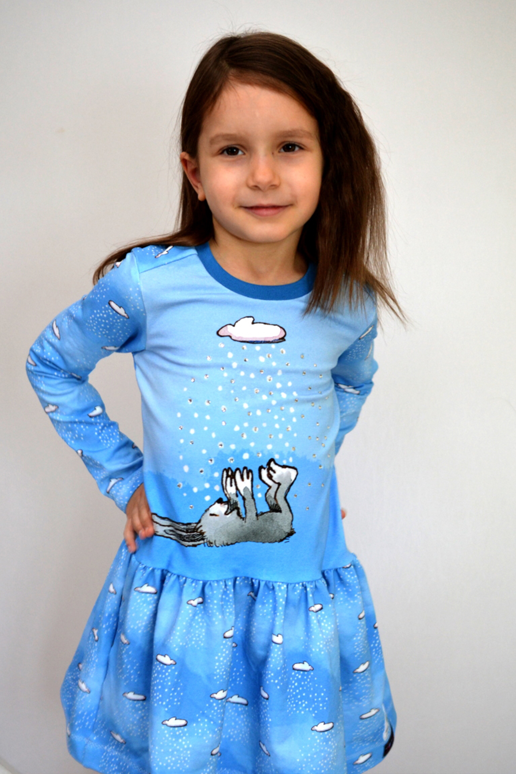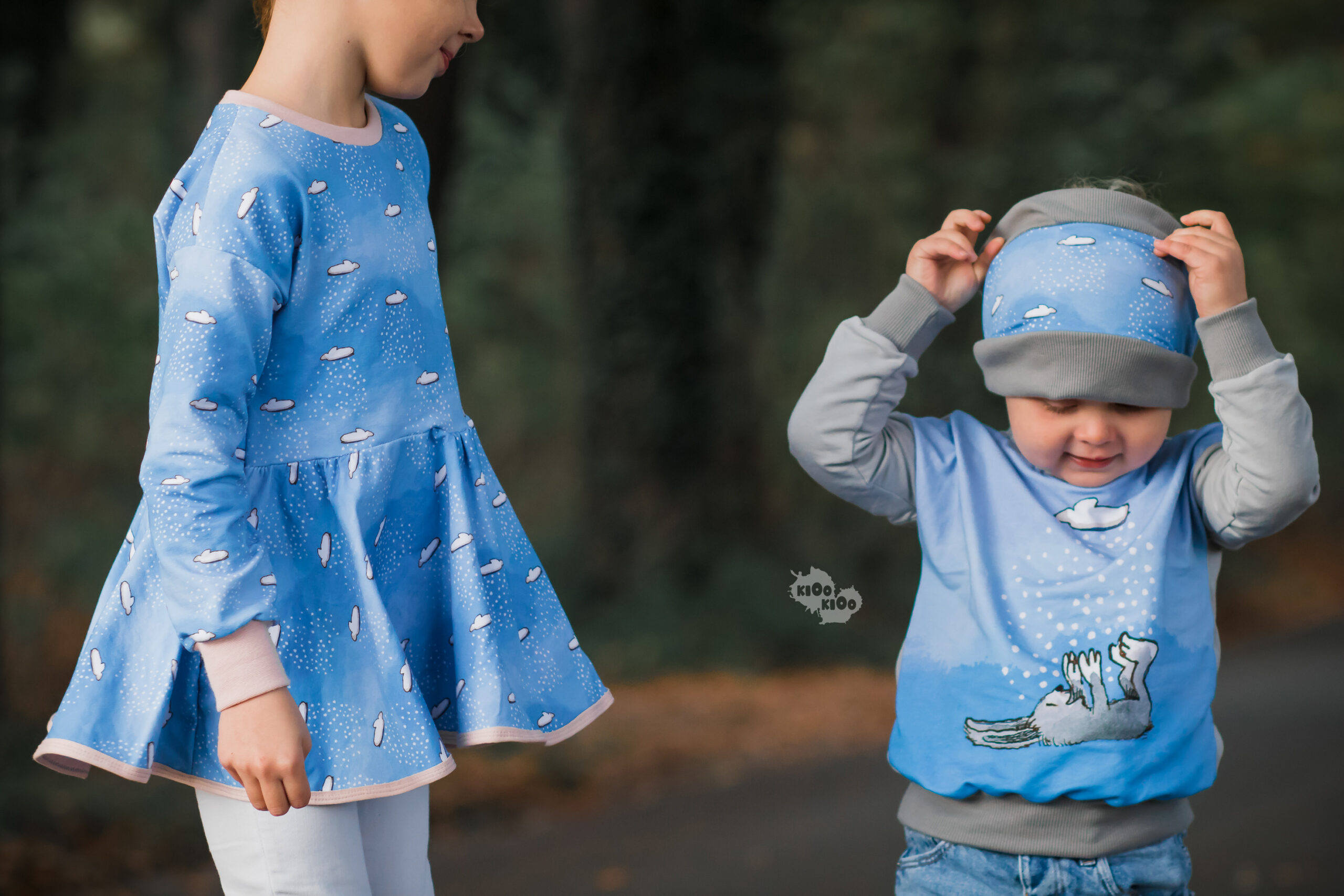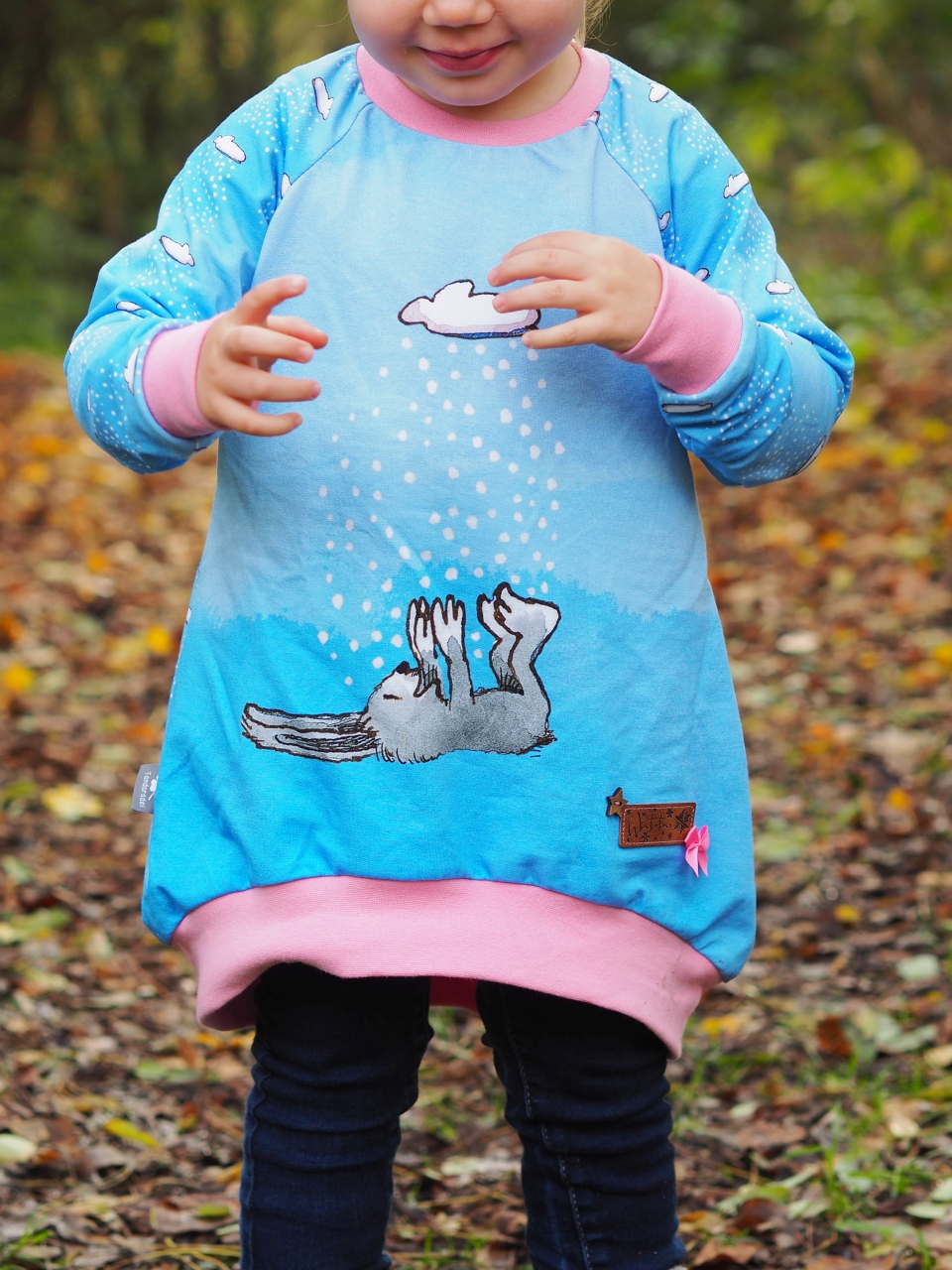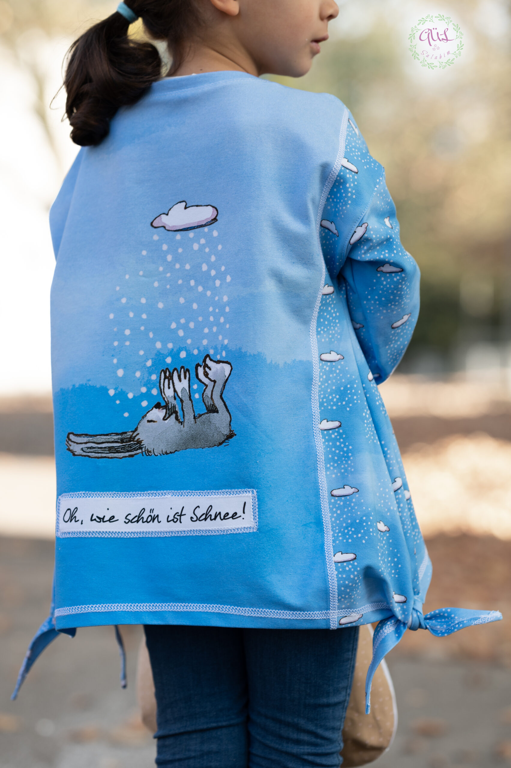 Als Kombistoff haben wir für Euch „Schneewolken“, ebenfalls mit leichtem Aquarelleffekt. Sie passen einerseits perfekt zu dem Panelbild mit dem Hasen und andererseits sind sie auch mit den anderen Stoffen der Kollektion prima kombinierbar und machen so jedes Nähstück um Eyecatcher. Probiert doch einfach mal aus, welche Kombination Euch am besten gefällt.