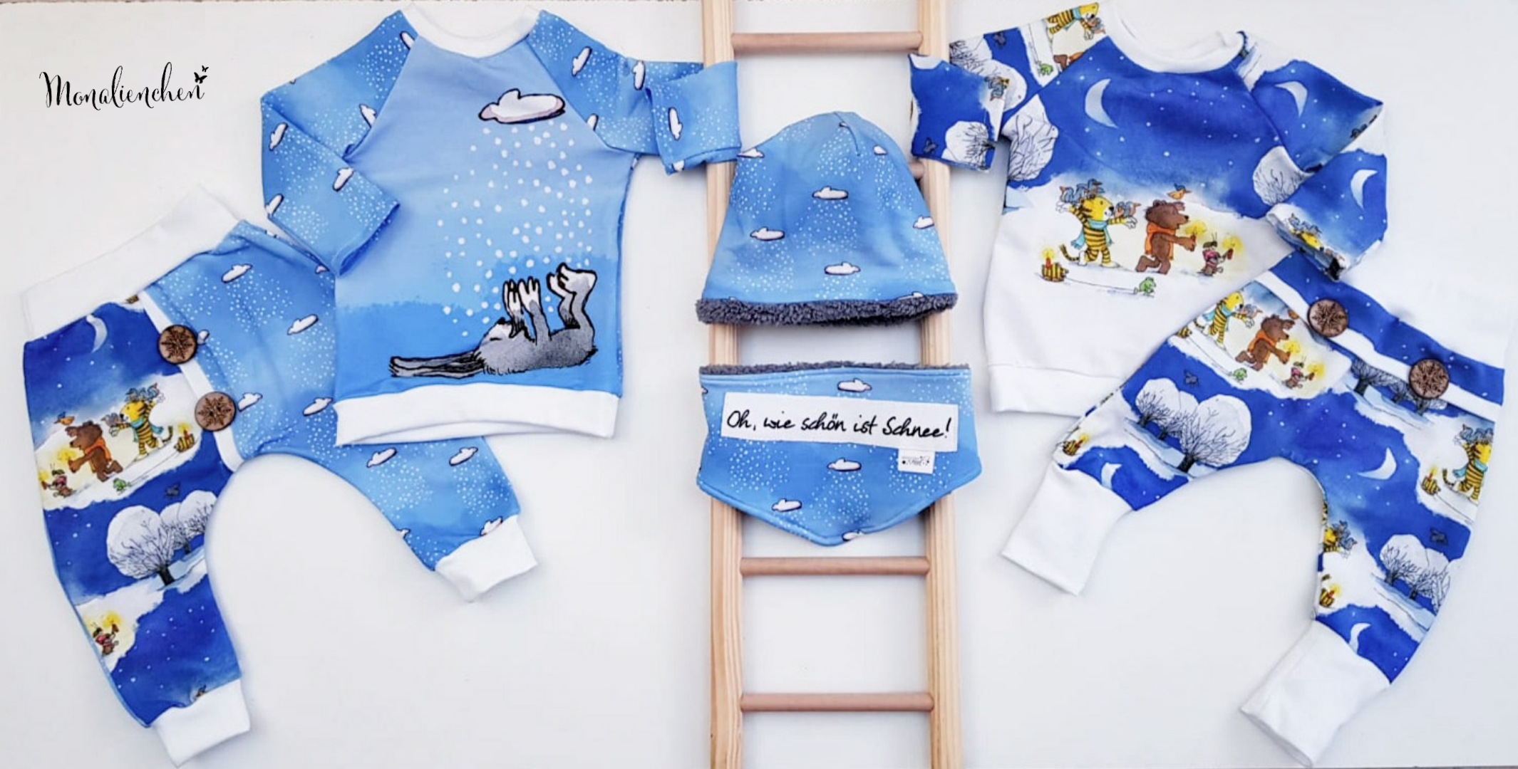 Unsere „Oh, wie schön ist Schnee“ Kollektion wurde umgesetzt von Rapelli Design und hält für Euch ein Panel, einen Allover und einen Kombistoff bereit. Die Stoffe dieser Kollektionen erhaltet Ihr auf wunderbar weichen French Terry.