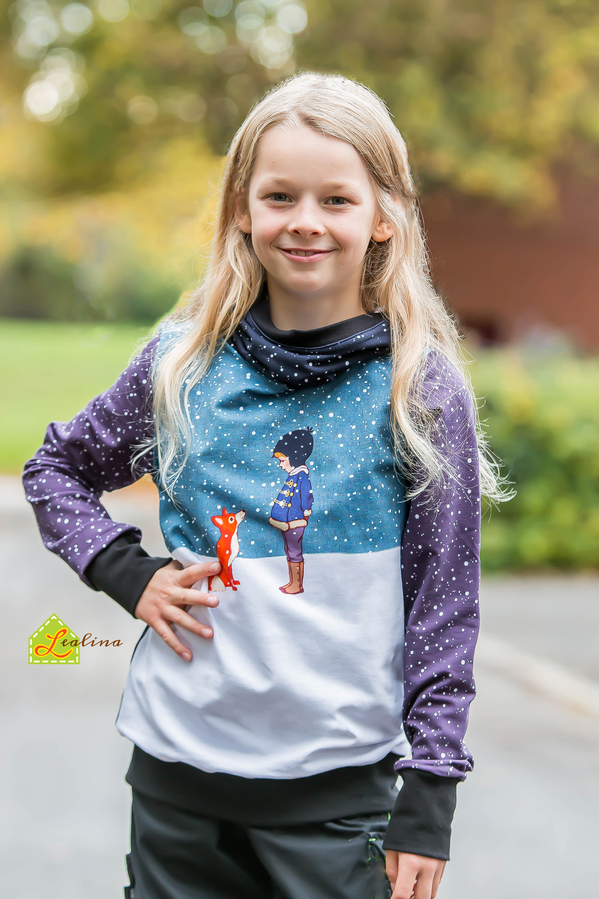 Neben dem Panel gehören die Stoffe „Snowstorm“ und „Carla“ zu dieser Kollektion. „Snowstorm“ erhaltet Ihr in den Farben Sugarplum und Midnight. Wie Ihr es von unseren Kombistoffen kennt, lässt sich dieser nicht nur mit dem Panel vernähen, sondern macht auch Solo richtig was her. Vielleicht setzt Ihr ihn durch einen pfiffigen Schnitt oder mit einem Plott, einer Stickerei oder Applikation in Szene? Er ist doch einfach perfekt für Outfits für die Winterzeit, findet Ihr nicht auch?
