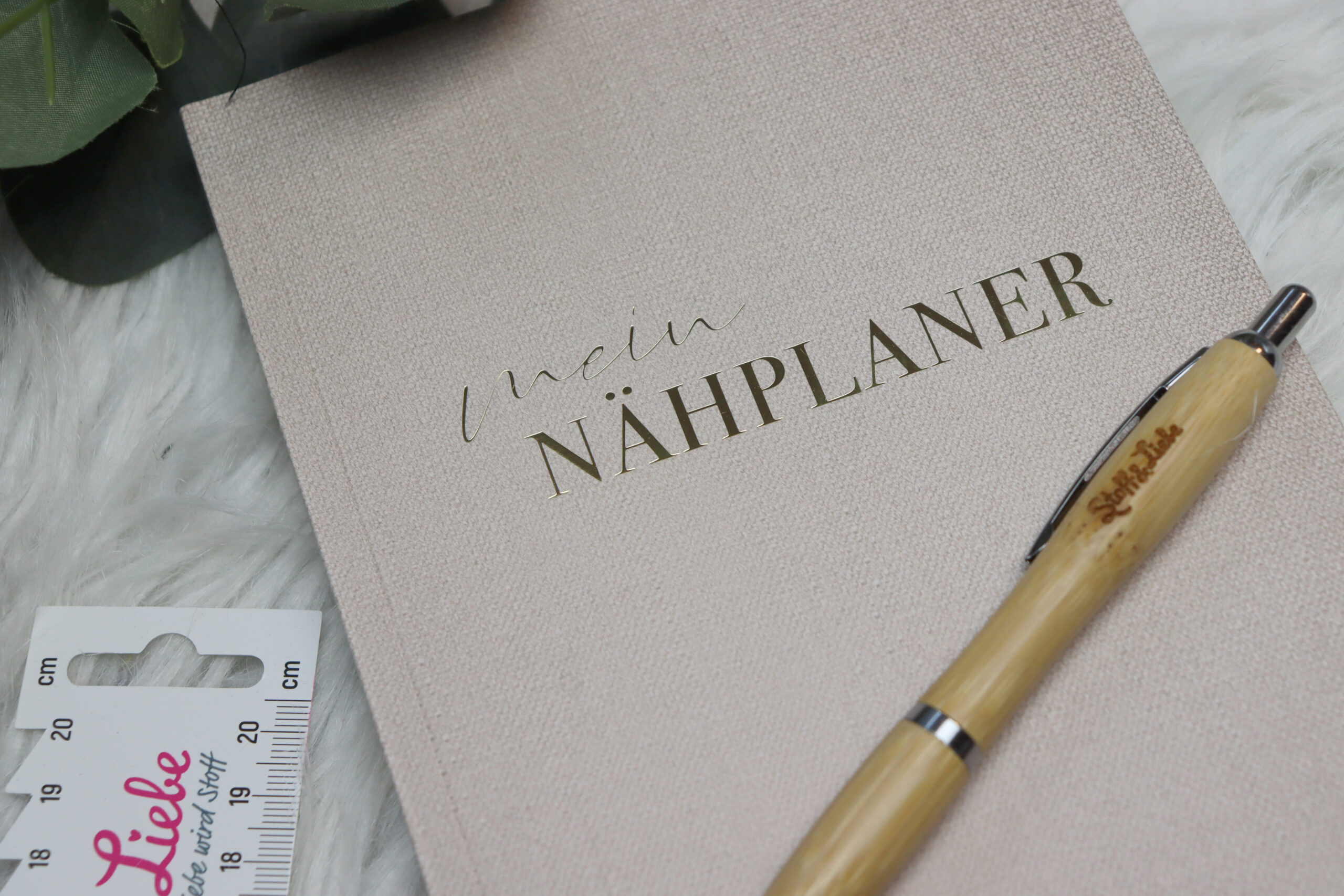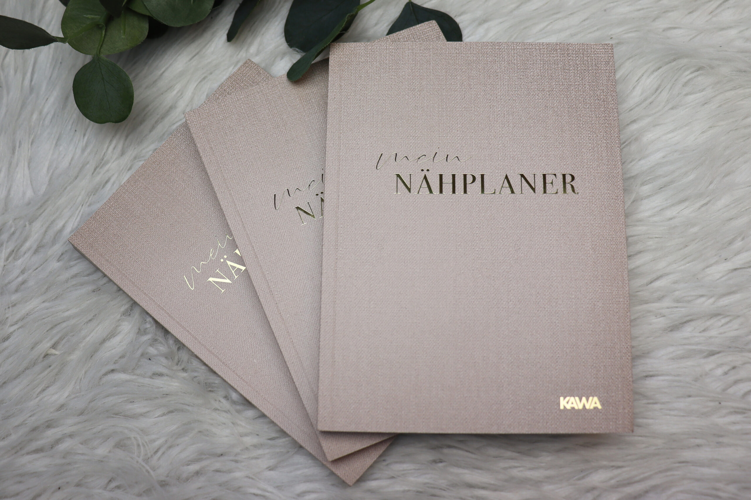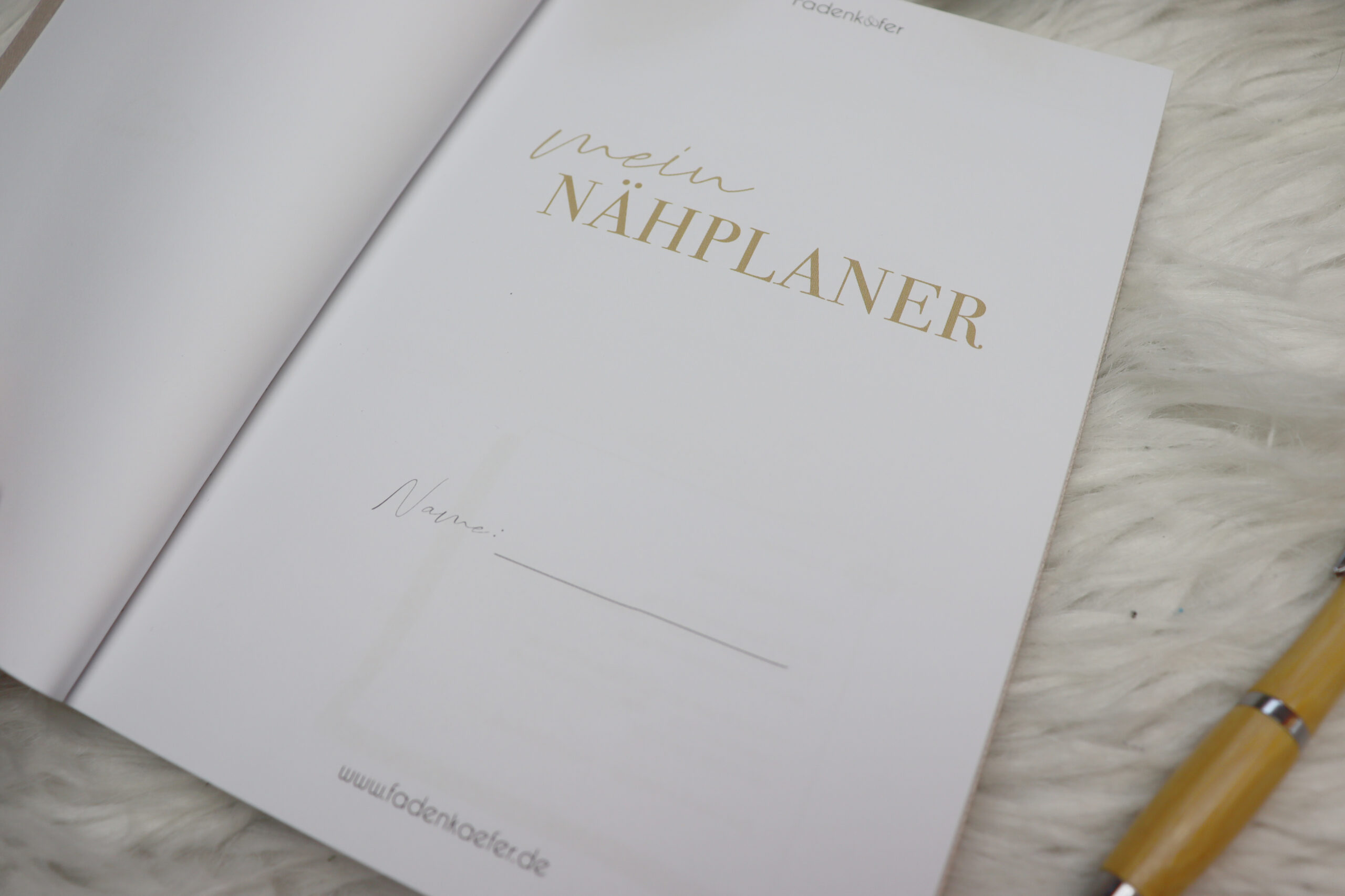 Der Nähplaner hat ein Format von 148 x 210 mm, was DIN A5 entspricht. Optisch macht er auch so richtig was her. Der Umschlag besteht aus 300 g Karton, ist mit einer naturfarbenen Stoffstruktur bedruckt und mit dem goldfarbenen Schriftzug in Heißfolienprägung veredelt. Der Innenteil besteht aus hochwertigem 120 g Naturpapier, auf dem sich sehr angenehm schreiben lässt. So ist der Nähplaner nicht nur haptisch, sondern auch optisch ein totales Highlight.