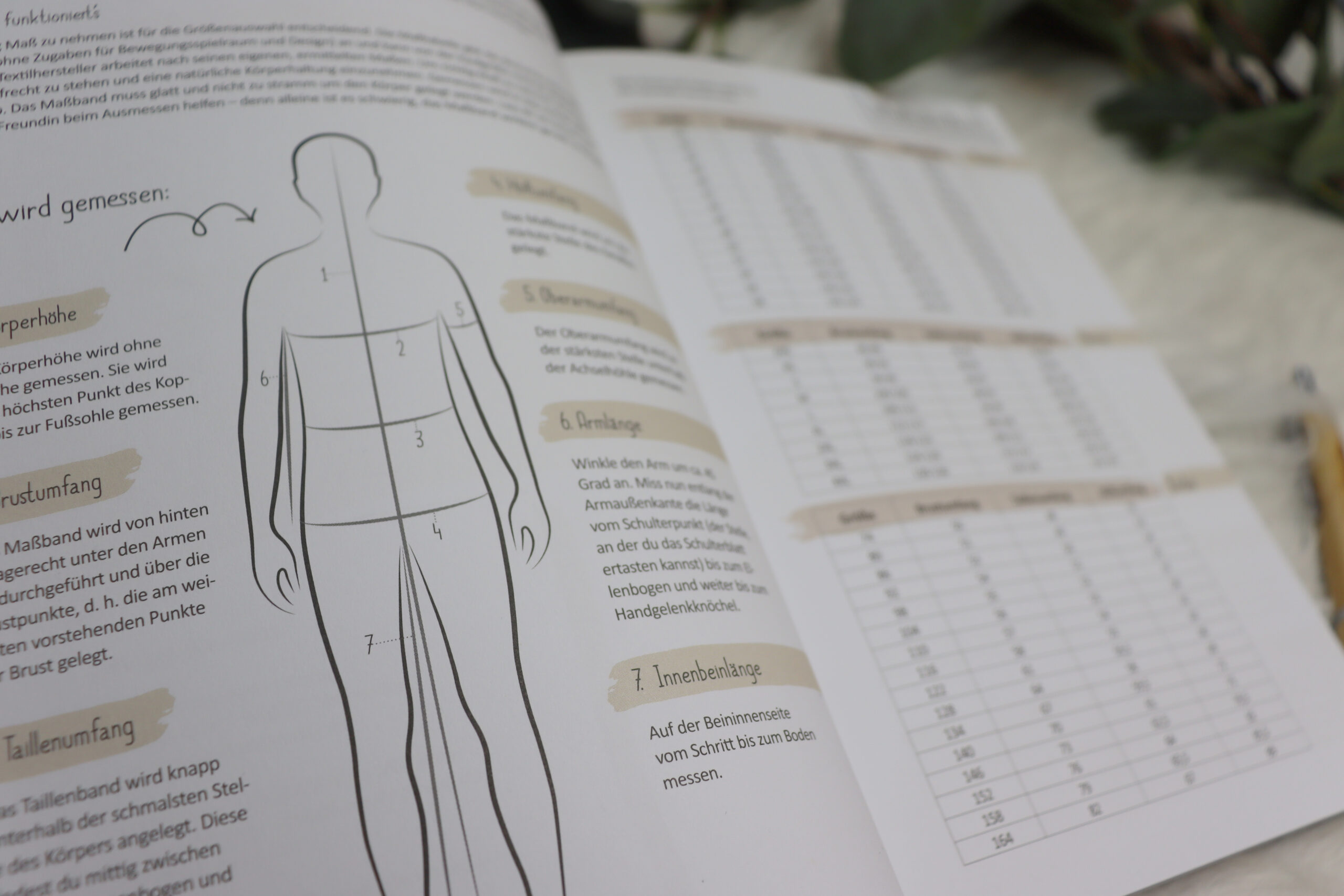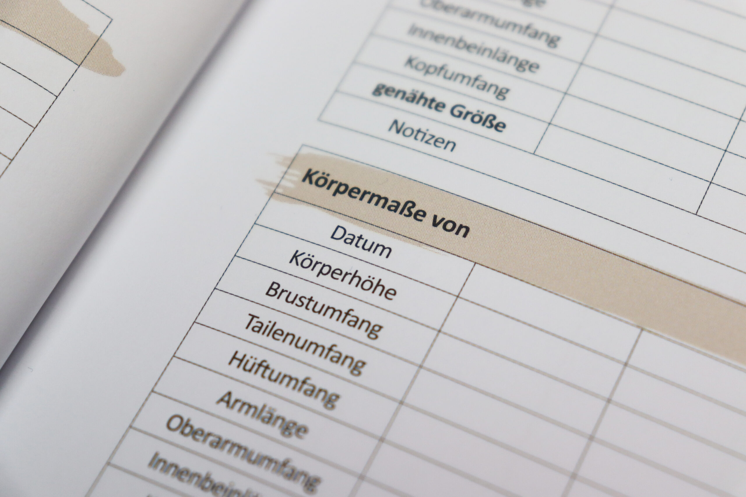Auf mehreren Seiten findet Ihr Tabellen für Körpermaße. So könnt Ihr nicht nur Eure Maße eintragen, sondern habt auch die Eurer Liebsten für das Nähprojekt griffbereit.