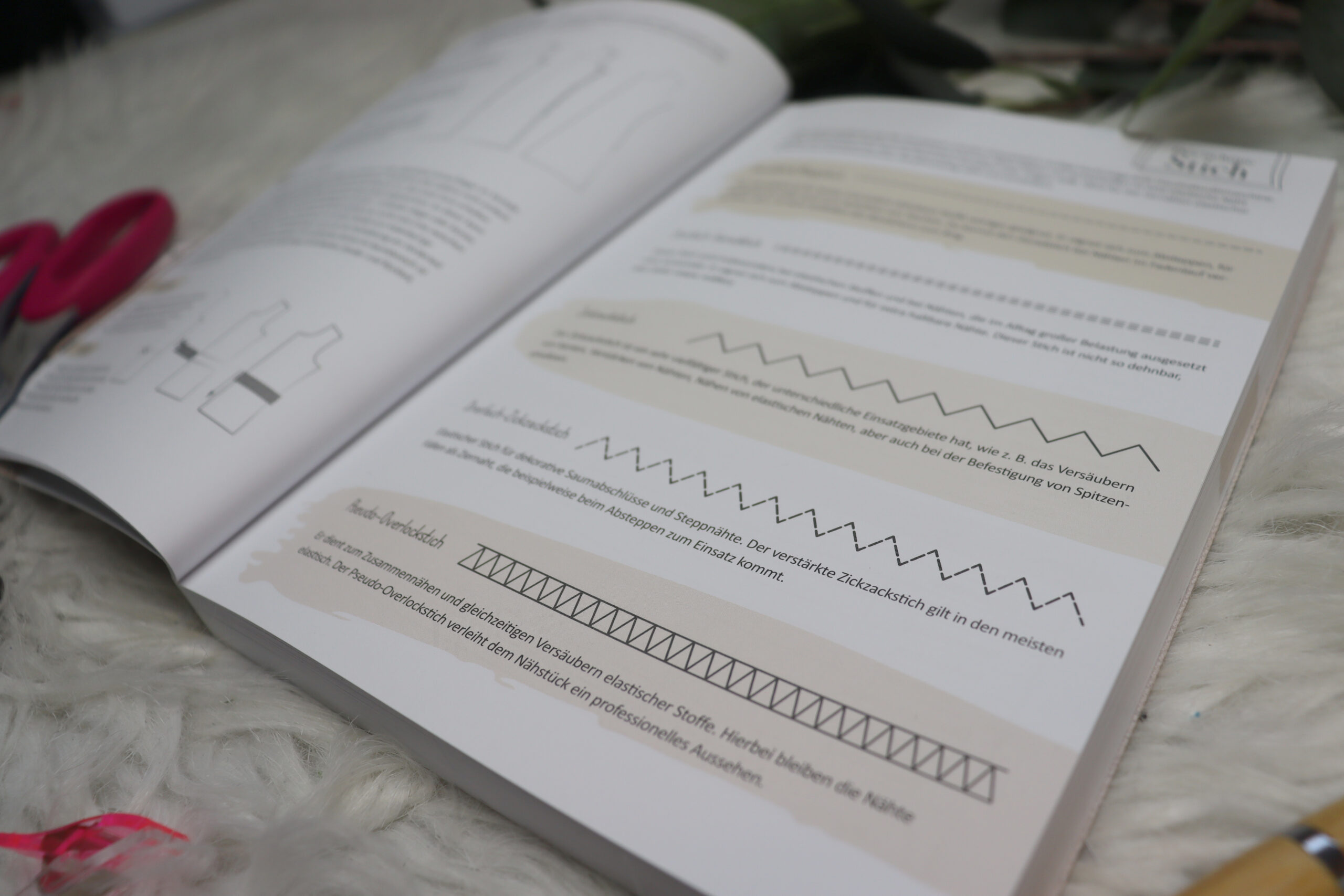 Damit Ihr Euch ein Bild davon machen könnt, welche Möglichkeiten Ihr mit dem Nähplaner habt, gehen wir mal alles in Ruhe durch. Auf über 200 Seiten findet Ihr jede Menge Platz für alles, was nicht in Vergessenheit geraten soll, aber auch informative Dinge und Erklärungen zum Nachlesen. Zum Beispiel wie Ihr richtig Maß nehmt oder Schnittmuster anpasst. Auch findet Ihr eine Übersicht über den richtigen Stich für verschiedene Stoffarten.