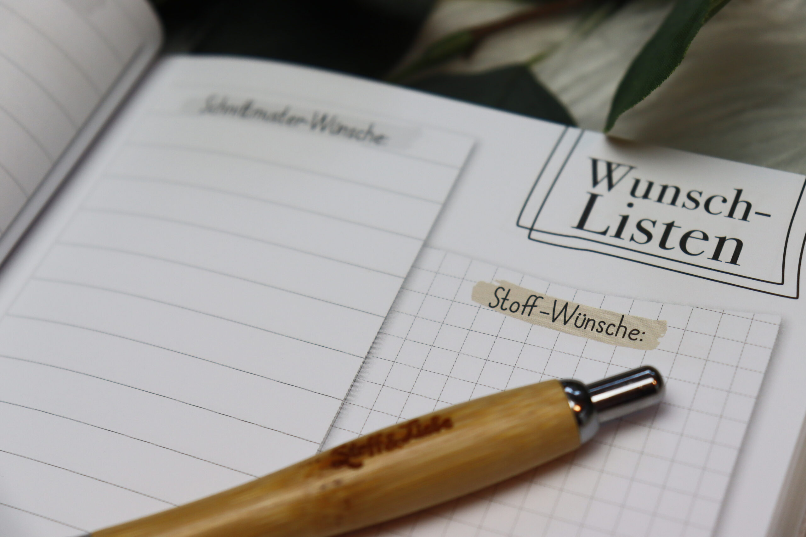 Der nächste Teil im Buch bietet Platz für Deine Wunsch- und Shoppinglisten. Jede Menge Platz für alles, was Deinen Stoffschrank also noch auffüllen soll. Obwohl, würden wir wirklich vergessen, welchen Stoff wir unbedingt noch unser Eigen nennen wollen? Natürlich könnt Ihr hier auch notieren, welches Nähzubehör oder Schnittmuster Ihr Euch noch zulegen möchtet. Oder eben Projektbezogen eine Shoppingliste anfertigen.