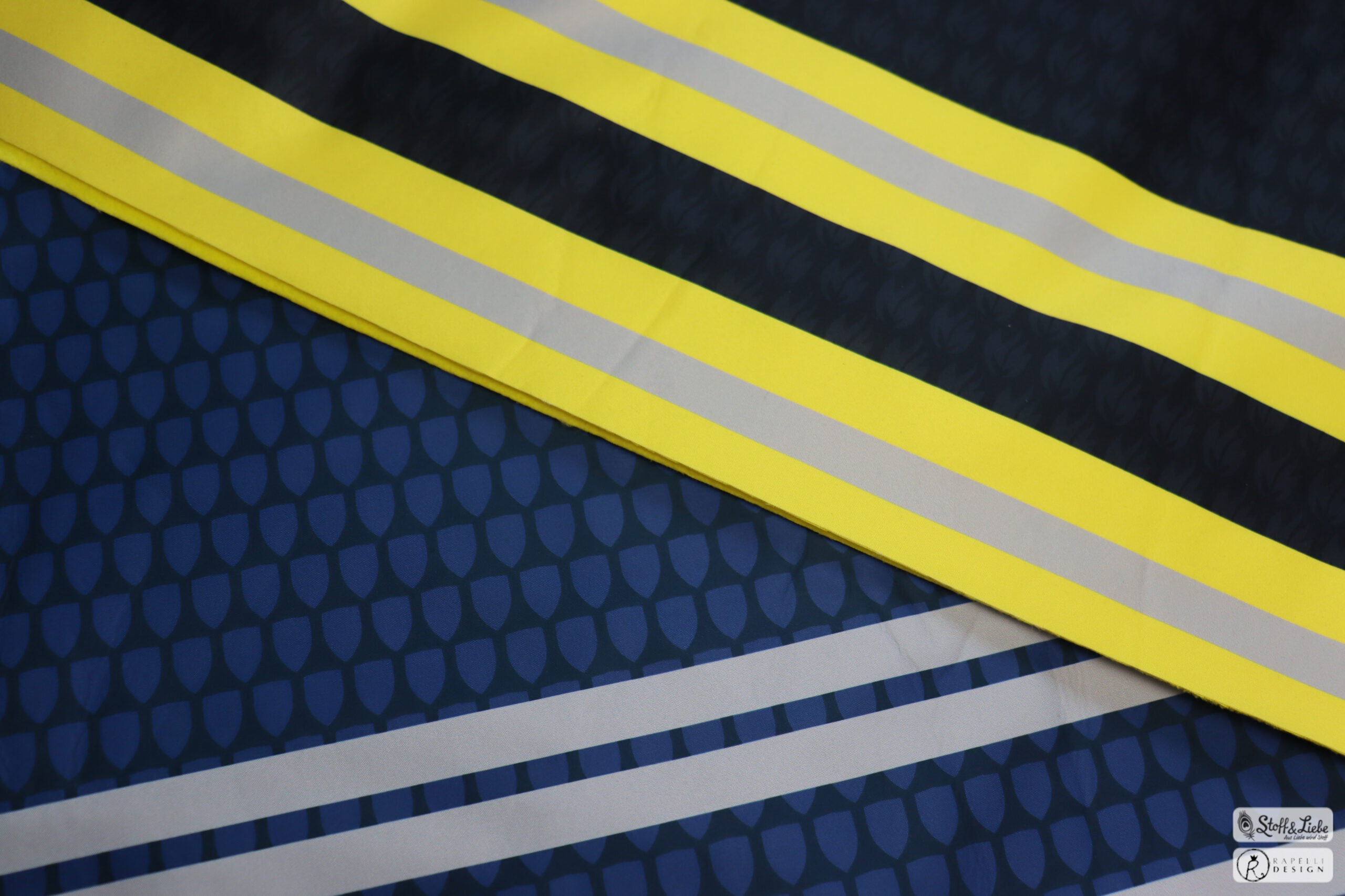 Der Allover ist als Bordüre angelegt. Der Reflexionsstreifen an der rechten Seite ist also durchgehend.
