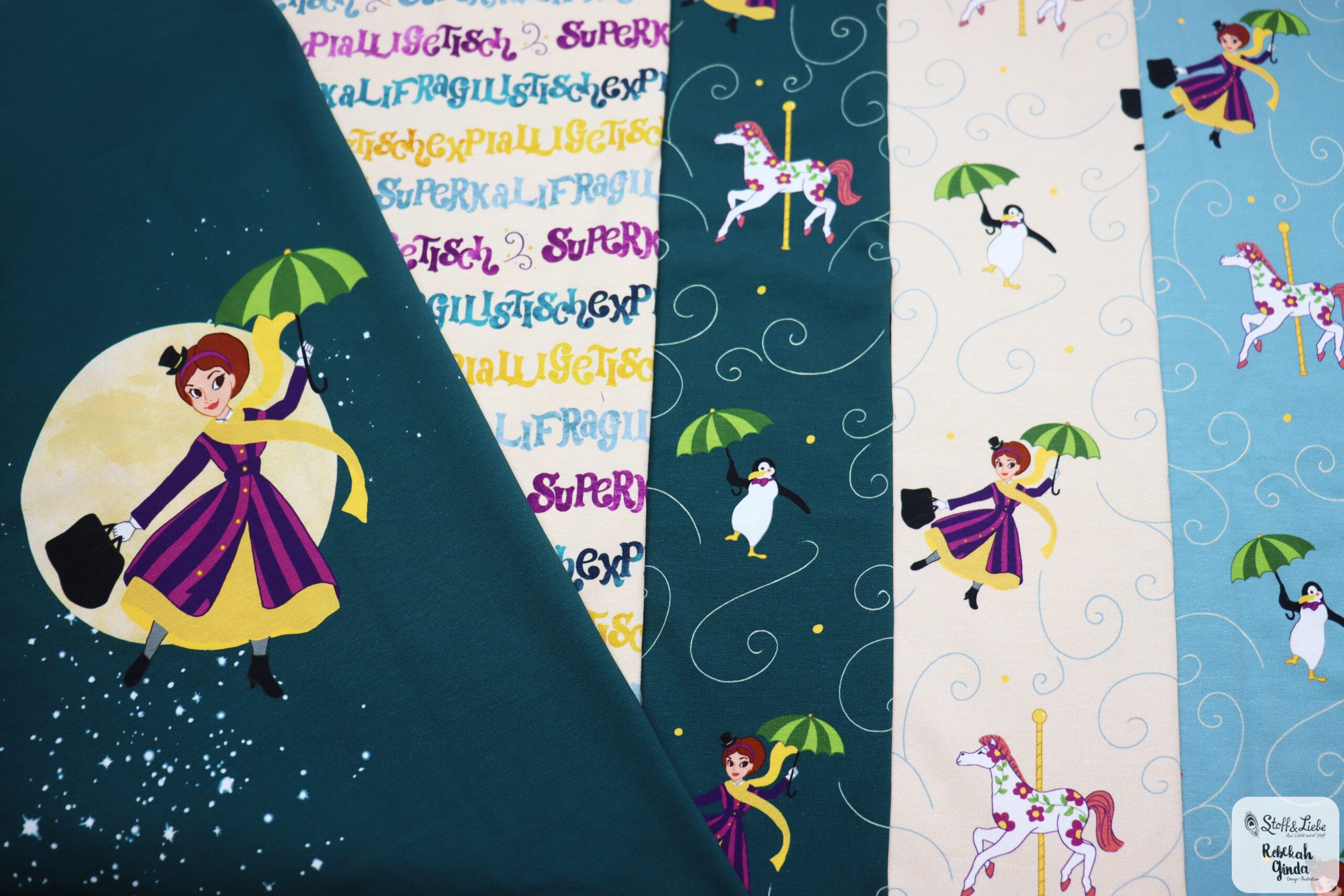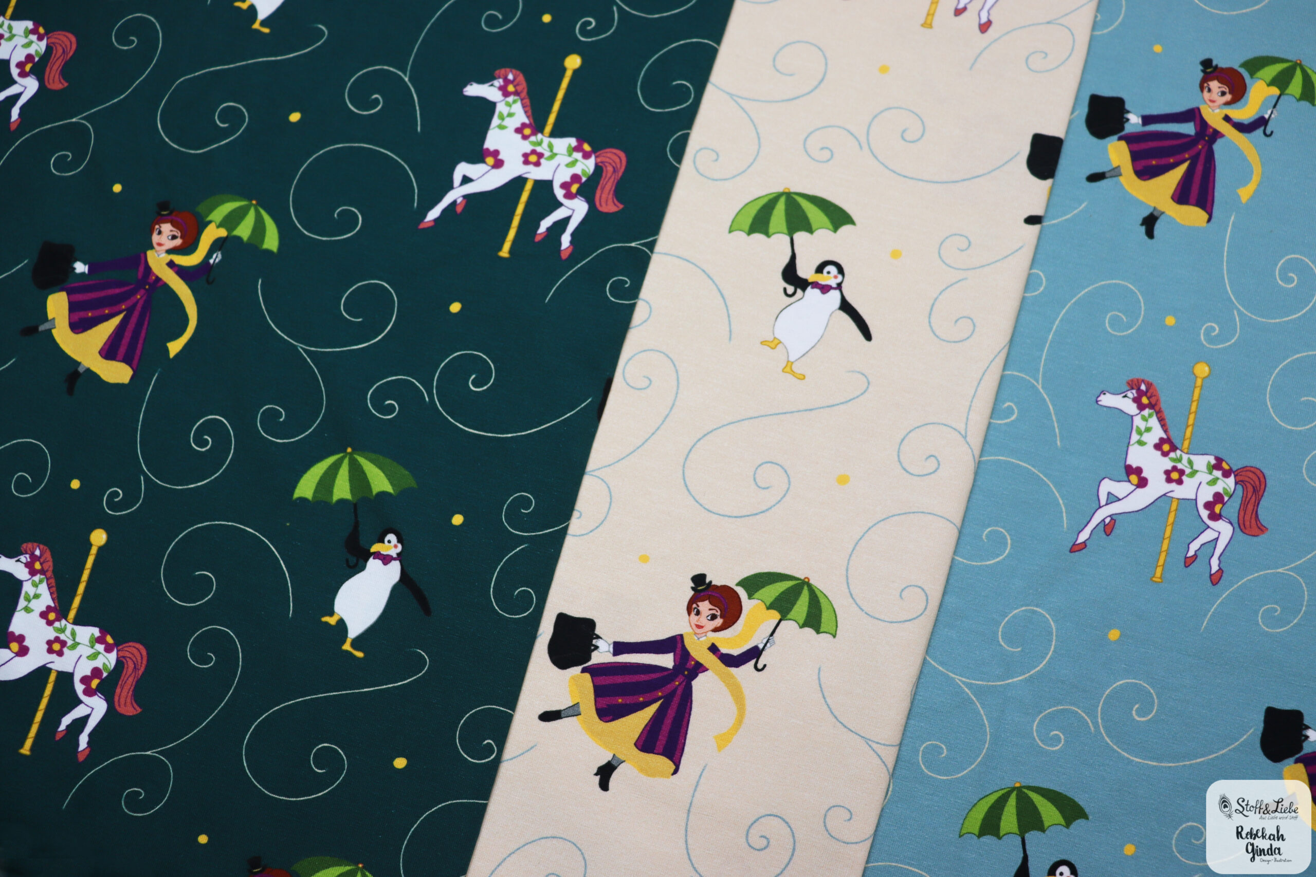 Als Allover haben wir den wundervollen “Kind of Magic“ in direkt drei fantastischen Farben für Euch. Wählen könnt Ihr zwischen Creme, Petrol und Hellblau. Die Motivgrößen liegen zwischen ca. 6,5 cm (Pinguin mit Schirm) bis ca. 9 cm (Frau mit Schirm). Somit ist der Allover perfekt für Nähwerke in allen Größen nutzbar.