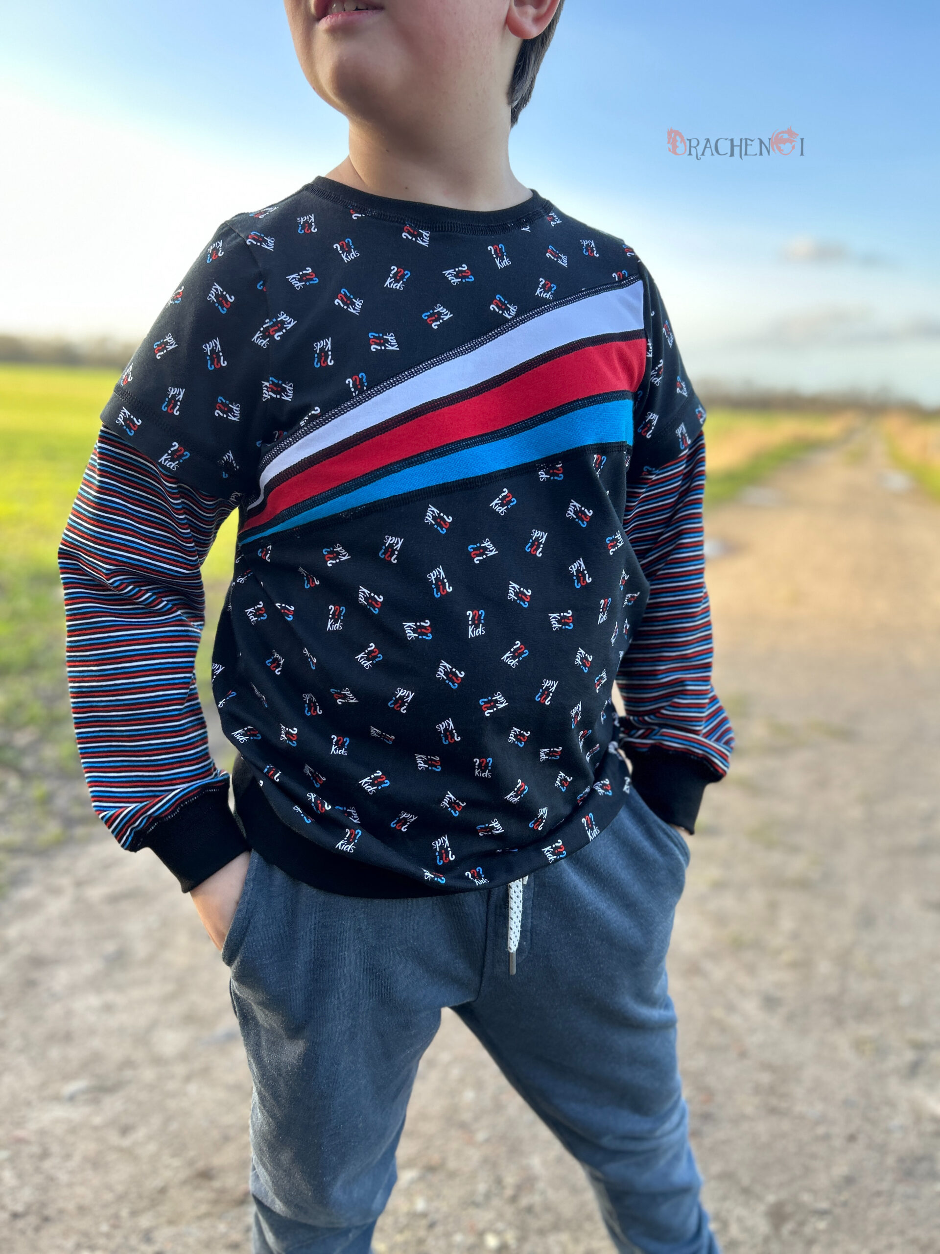 Zu dieser Kollektion gehören ein Panel, zwei Allover sowie zwei Kombistoffe. Alle Stoffe werdet Ihr auf French Terry erhalten. Auch bei der zweiten Kollektion war uns wieder wichtig, dass die Stoffe schlicht sein sollen, aber dennoch das gewisse Extra haben und gut kombinierbar sein sollen sowie viel Spielraum für Kreativität lassen. Das ist unserer Marleen von Rapelli Design wieder einmal bestens gelungen und wir hoffen, Ihr seid genauso begeistert wie wir. Da wird selbst Skinny Norris blass vor Neid 😉
