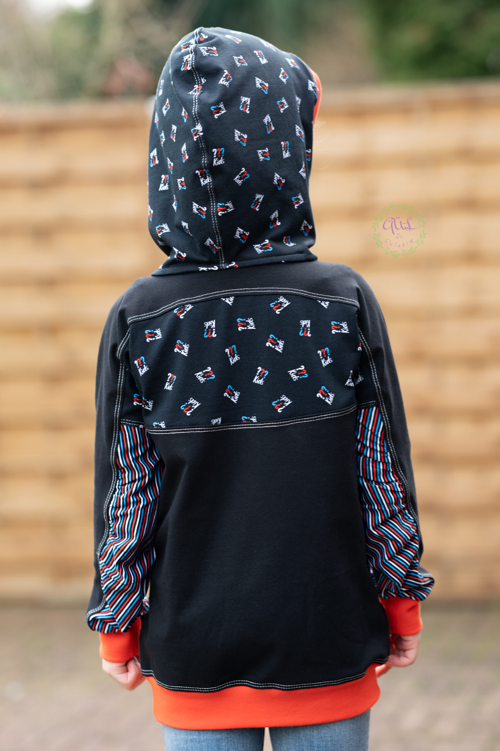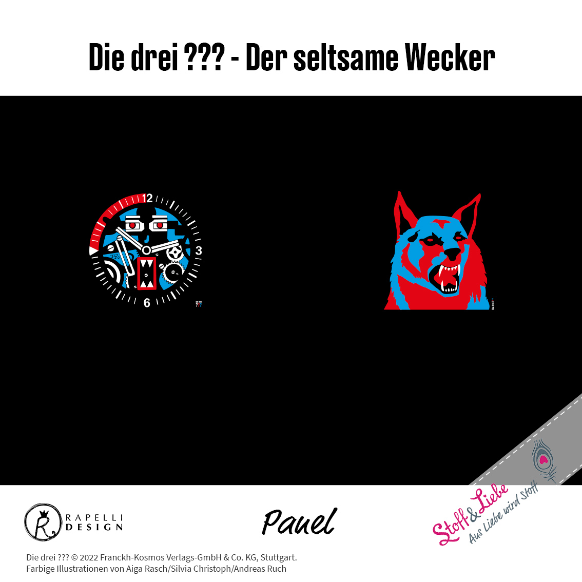 Mit diesem Panel könnt Ihr zwei absolute Klassiker der „Drei ???“ als Nähwerk umsetzen: „Der seltsame Wecker“ und „Der Karpatenhund“. Das Panel hat eine Höhe von ca. 100 cm und keine Unterteilung, Sodass Ihr Eure Schnittteile frei positionieren könnt. Mit dieser Höhe lassen sich prima Stücke für Erwachsene nähen. Die perfekte Ergänzung zu unserer ersten Kollektion „Rocky Beach“, oder? Eure „Drei ???“ Garderobe könnt Ihr nun als um ein paar Teile erweitern.
