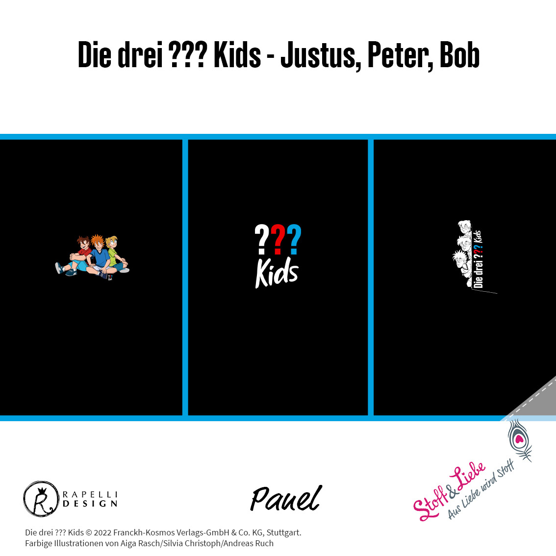 Die „Die drei ??? Kids“ Kollektion besteht aus einem Panel und zwei passenden Kombistoffen. Diese Serie erhaltet Ihr auf Jersey.