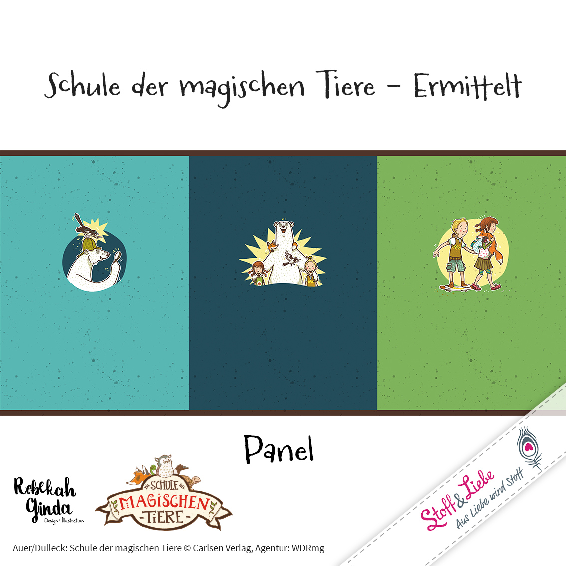 Das Panel hält drei verschiedene Motive für Euch bereit. Die Höhe der farbenprächtigen Panels beträgt ca. 65 cm. Somit ist er auch perfekt für größere Fans der Schule der magischen Tiere vernähbar.