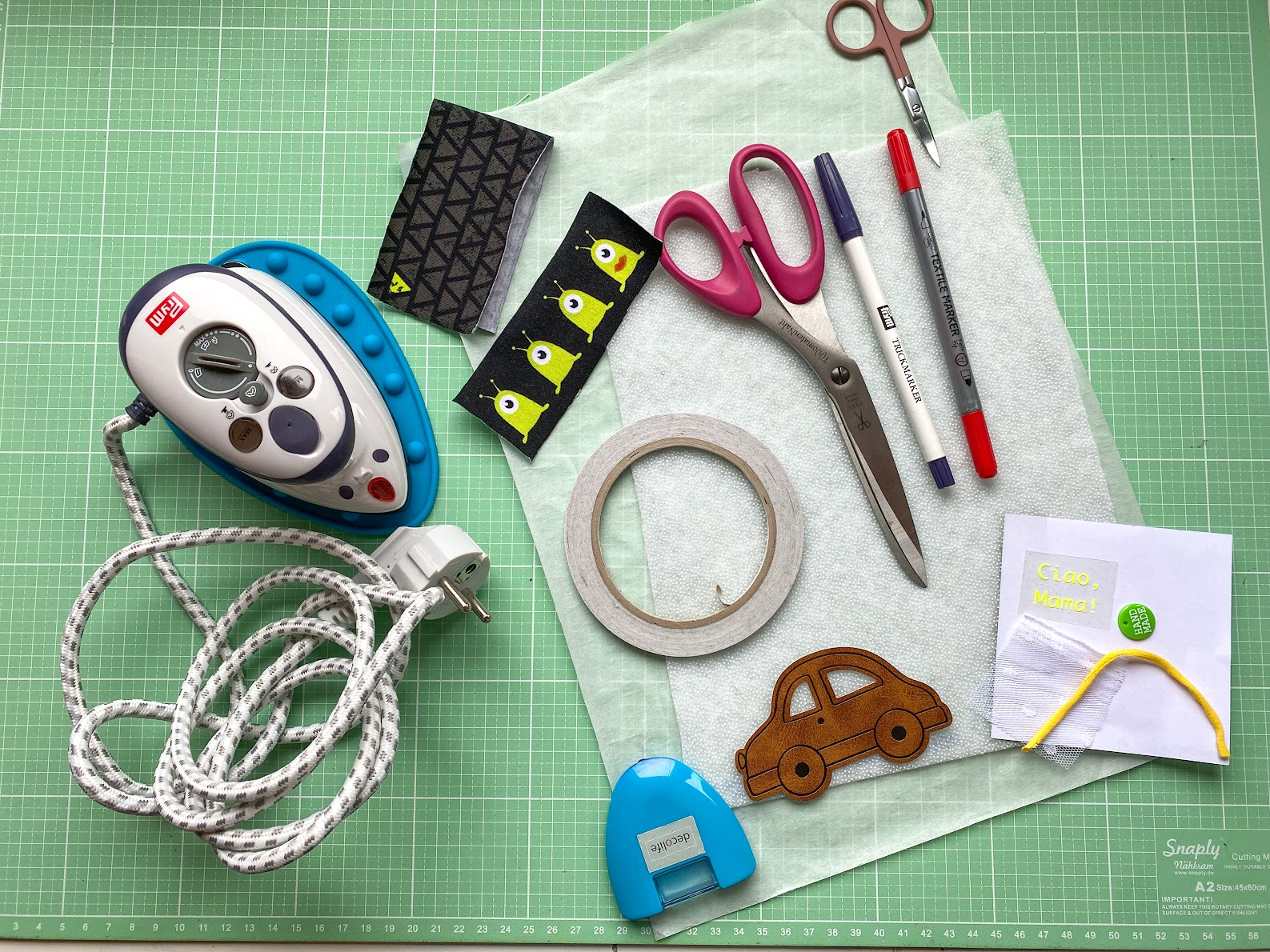 - einen Textilklebestift oder doppelseitiges Textilklebeband,
