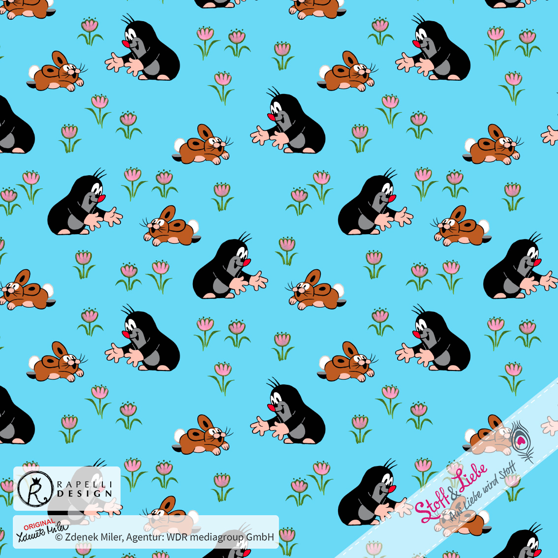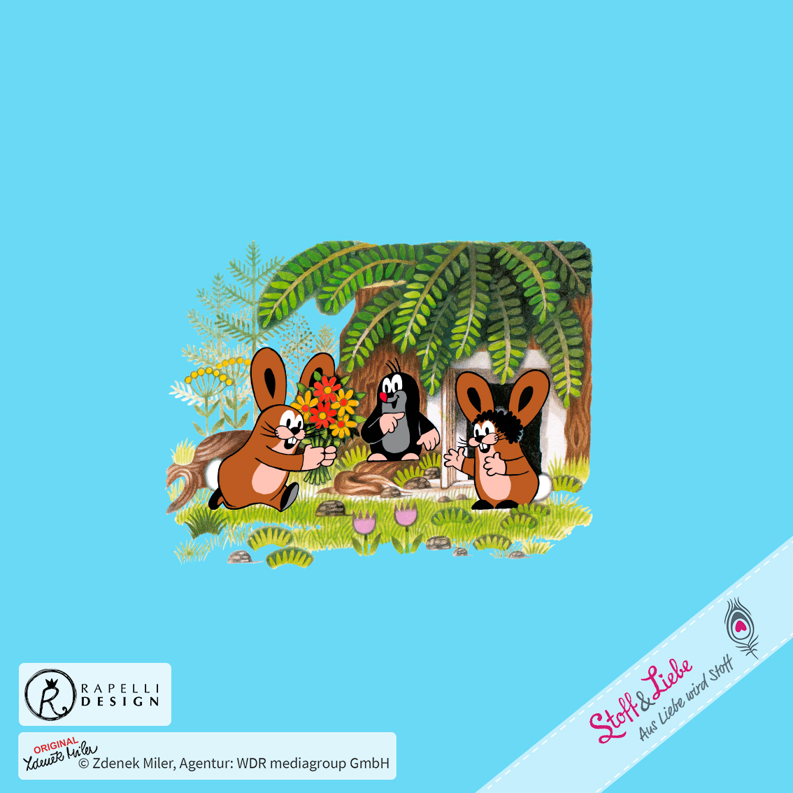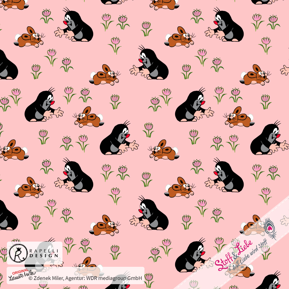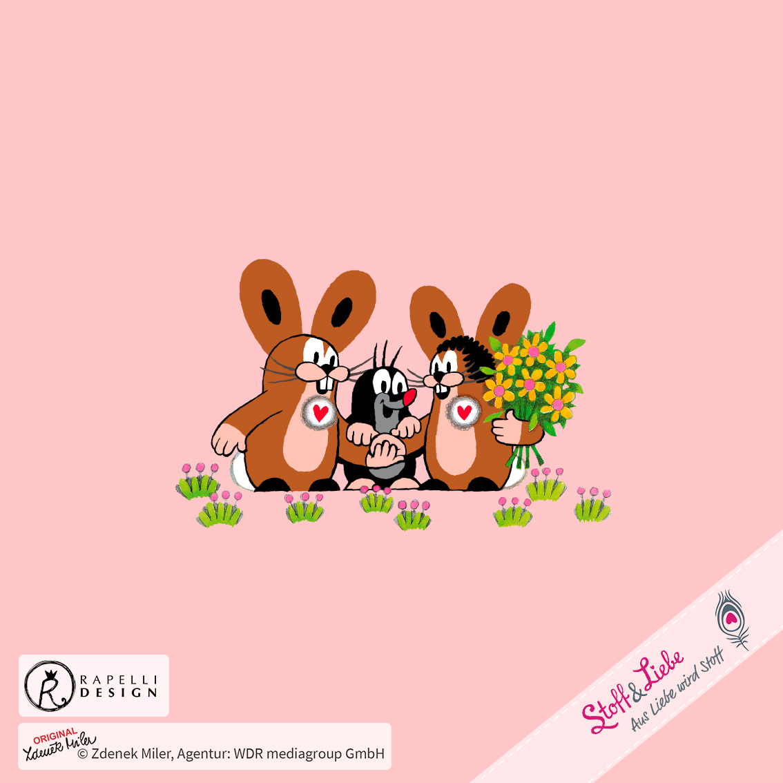 Das Panel hat eine Höhe von ca. 60 cm und ist abgestimmt auf alle weiteren Stoffe der Kollektion. Ihr findet den Maulwurf und seine Freunde auf Rosa, Blau und Grün. Durch die enthaltenen Farben, stehen Euch jede Menge Möglichkeiten offen, mit Unistoffen zu kombinieren.