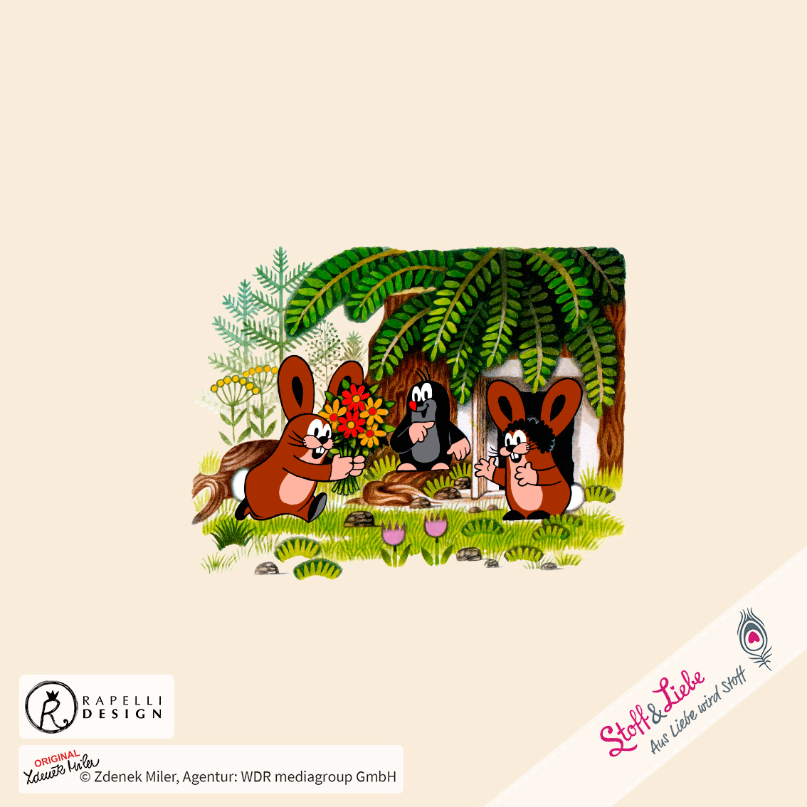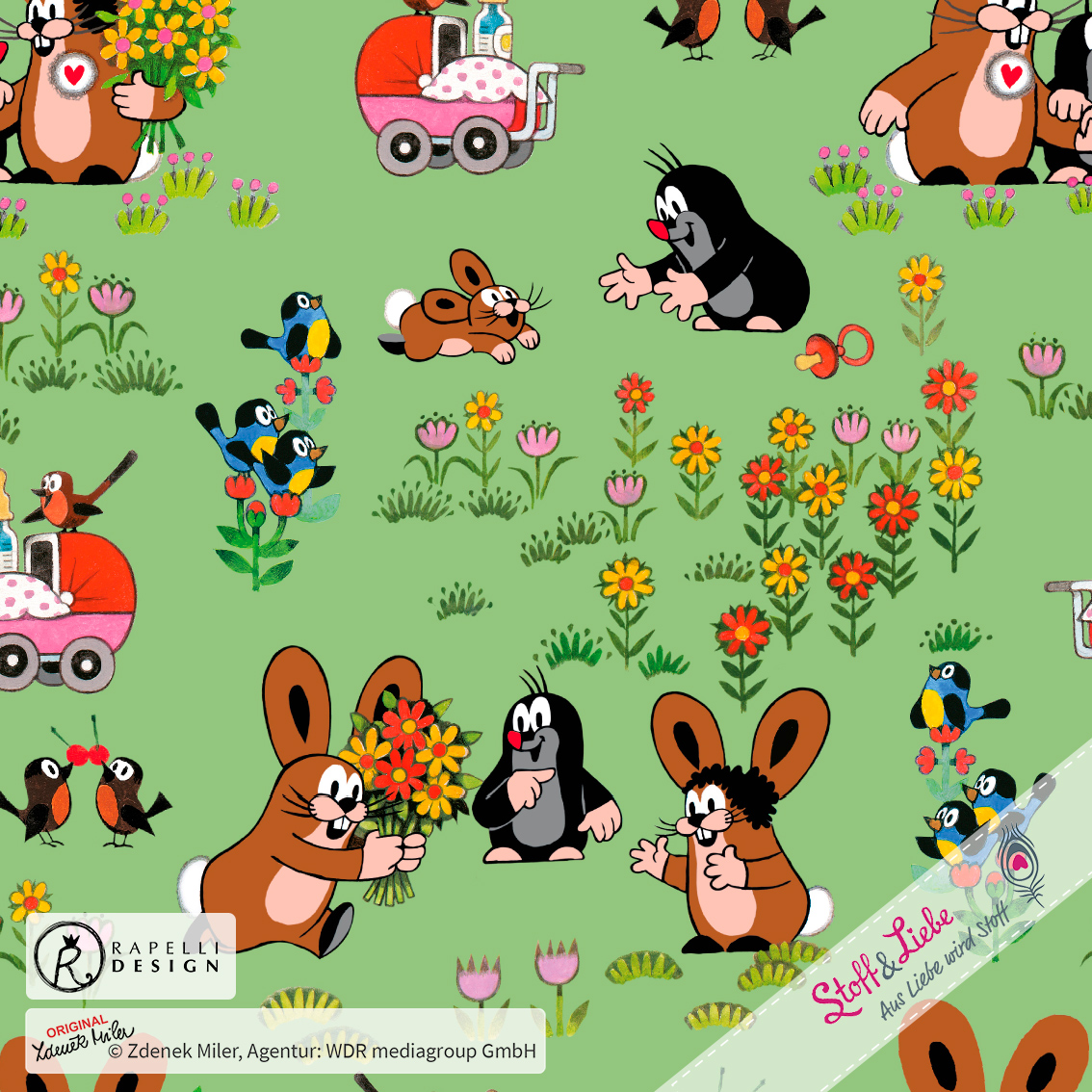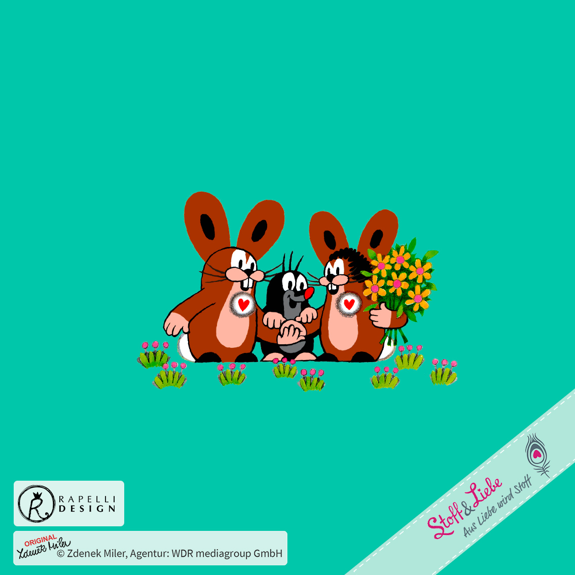 Unsere „Der kleine Maulwurf – Hasenglück“ Kollektion wurde umgesetzt von Rapelli Design. Dieses Design haben wir für Euch direkt in zwei Farbgruppen. Jede Variante hält perfekt aufeinander abgestimmte Stoffe auf Jersey für Euch bereit. Natürlich ist es aber auch möglich, die Stoffe beider Farbgruppen zu mischen. Ganz wie Ihr es mögt. Pro Farbgruppe könnt Ihr zwischen verschiedenen Stoffen wählen. Mit dabei sind natürlich Panel, Allover und Kombistoffe.