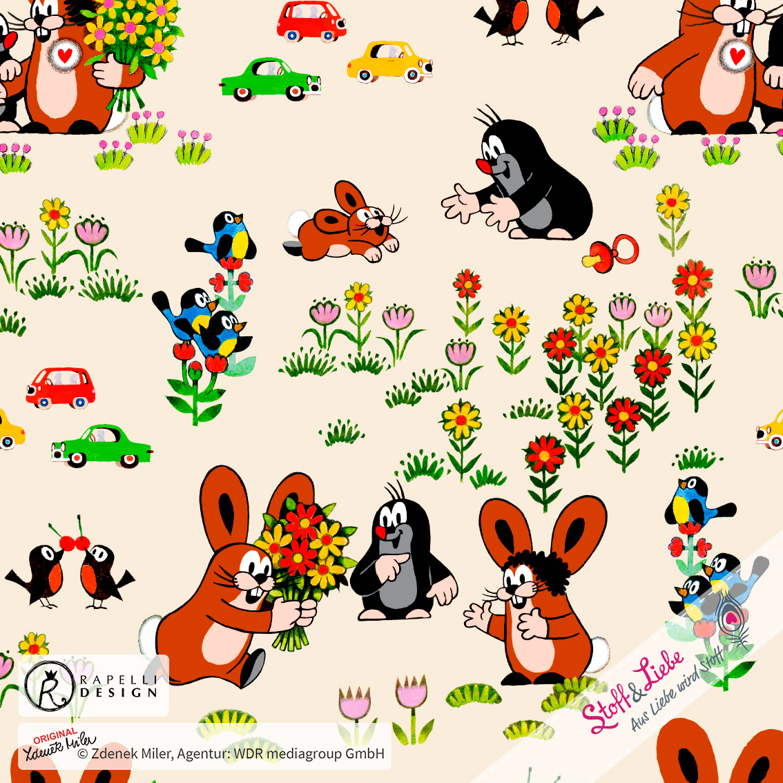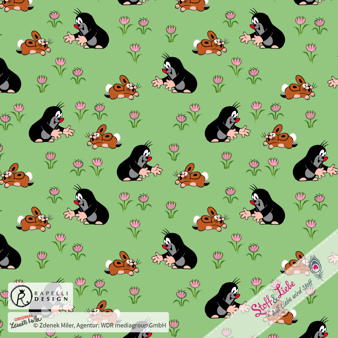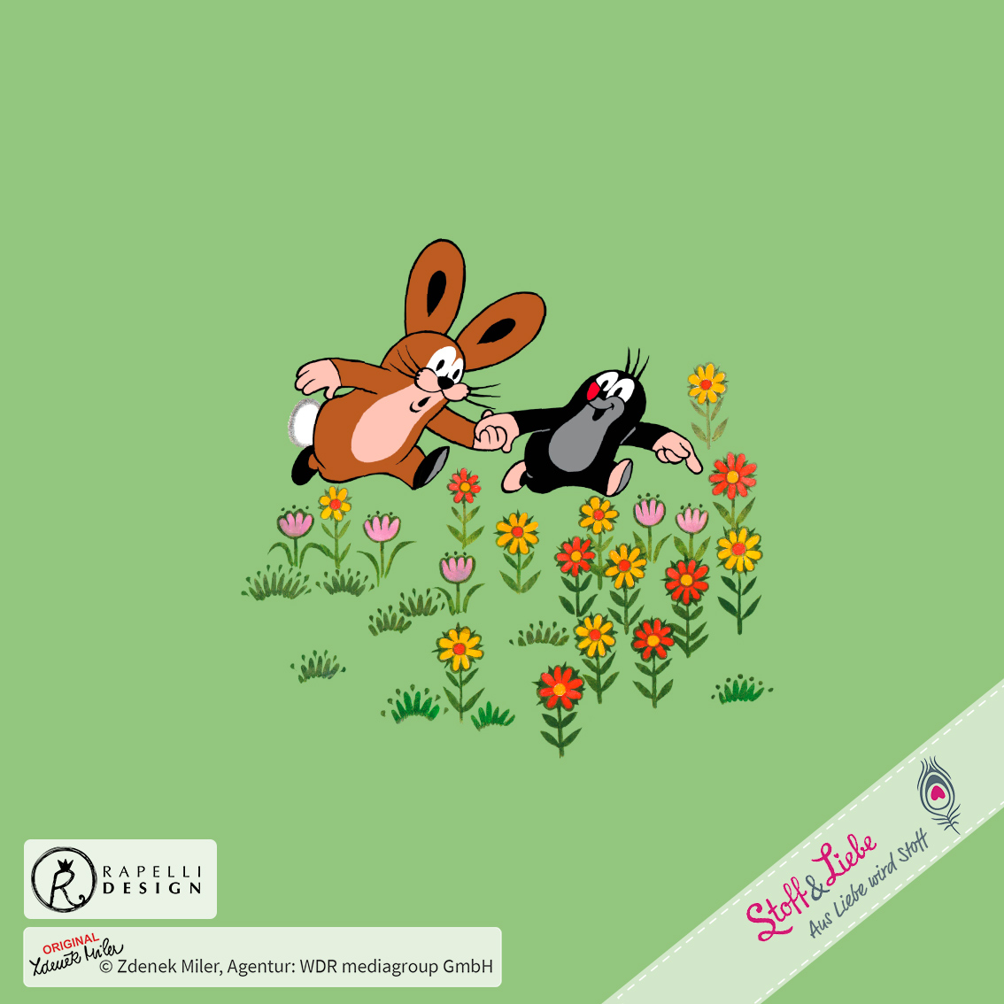 Unsere „Der kleine Maulwurf – Hasenglück“ Kollektion wurde umgesetzt von Rapelli Design. Dieses Design haben wir für Euch direkt in zwei Farbgruppen. Jede Variante hält perfekt aufeinander abgestimmte Stoffe auf Jersey für Euch bereit. Natürlich ist es aber auch möglich, die Stoffe beider Farbgruppen zu mischen. Ganz wie Ihr es mögt. Pro Farbgruppe könnt Ihr zwischen verschiedenen Stoffen wählen. Mit dabei sind natürlich Panel, Allover und Kombistoffe.