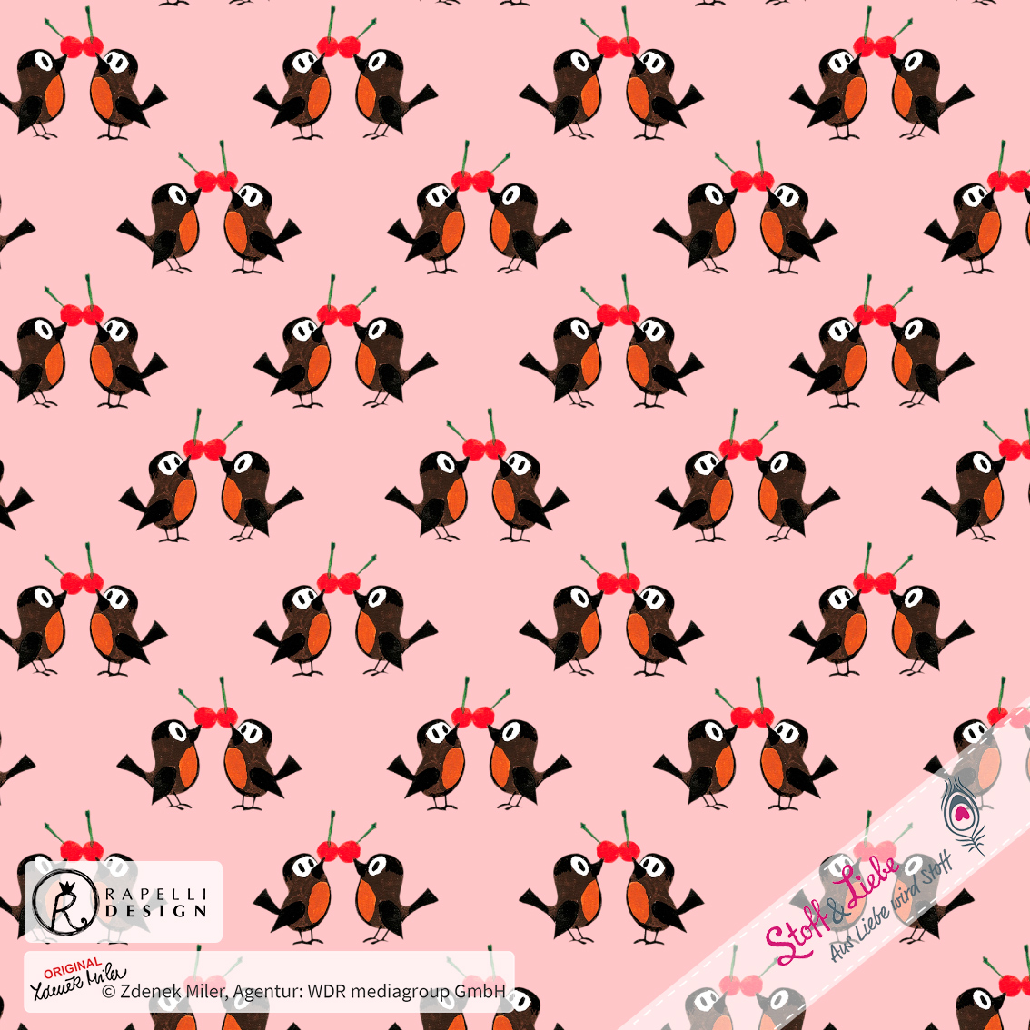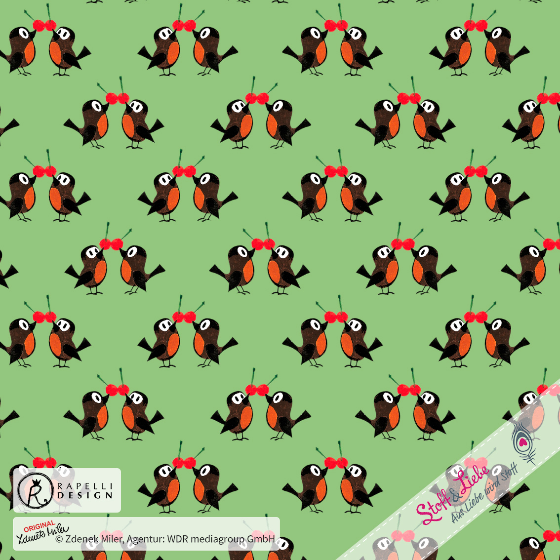 Die Piepmätze konntet Ihr schon auf einigen unserer „Der kleinen Maulwurf“ Designs entdecken und jetzt bekommen sie einen Soloauftritt. Wählen könnt Ihr zwischen Rosa und Grün.