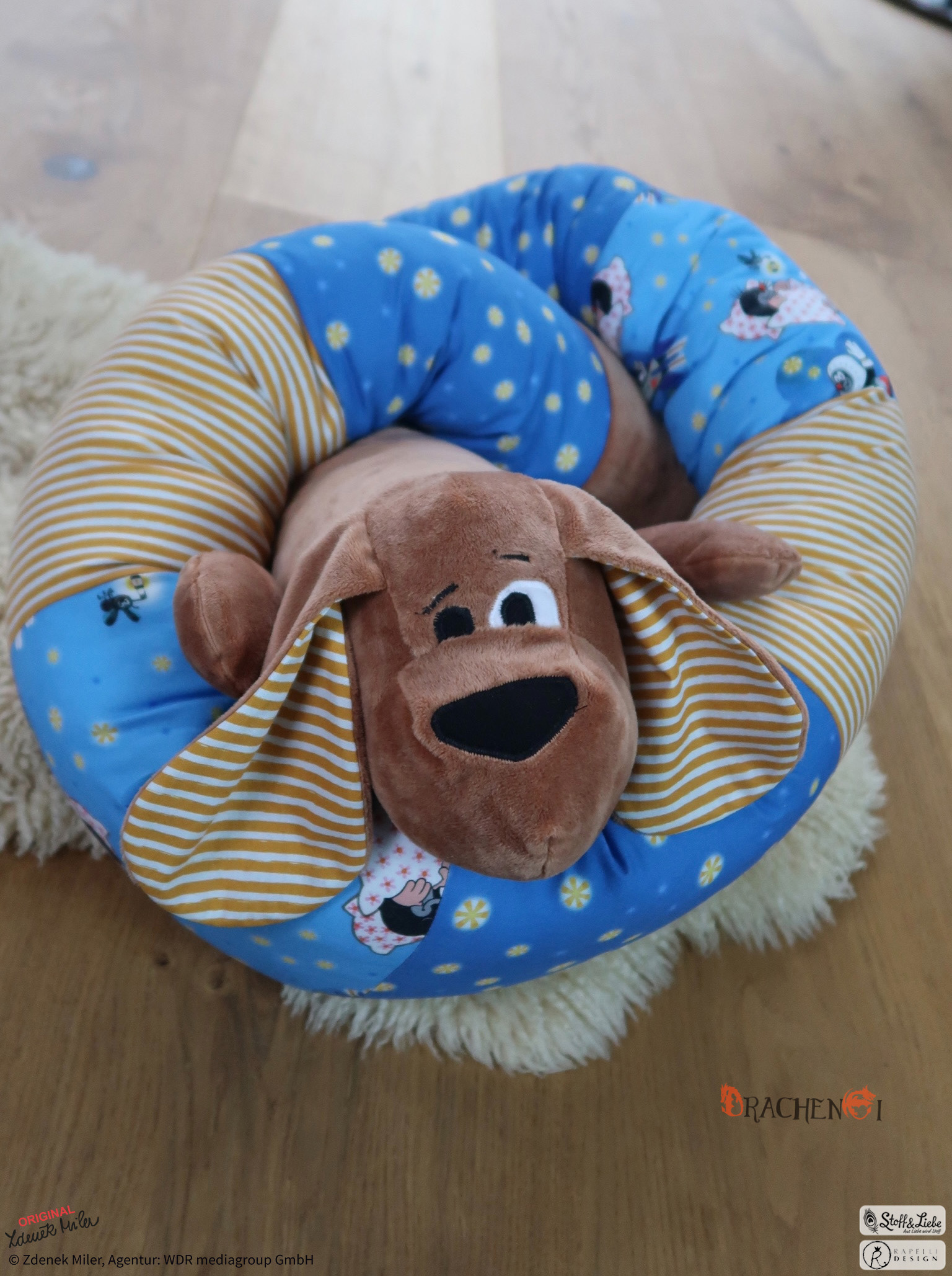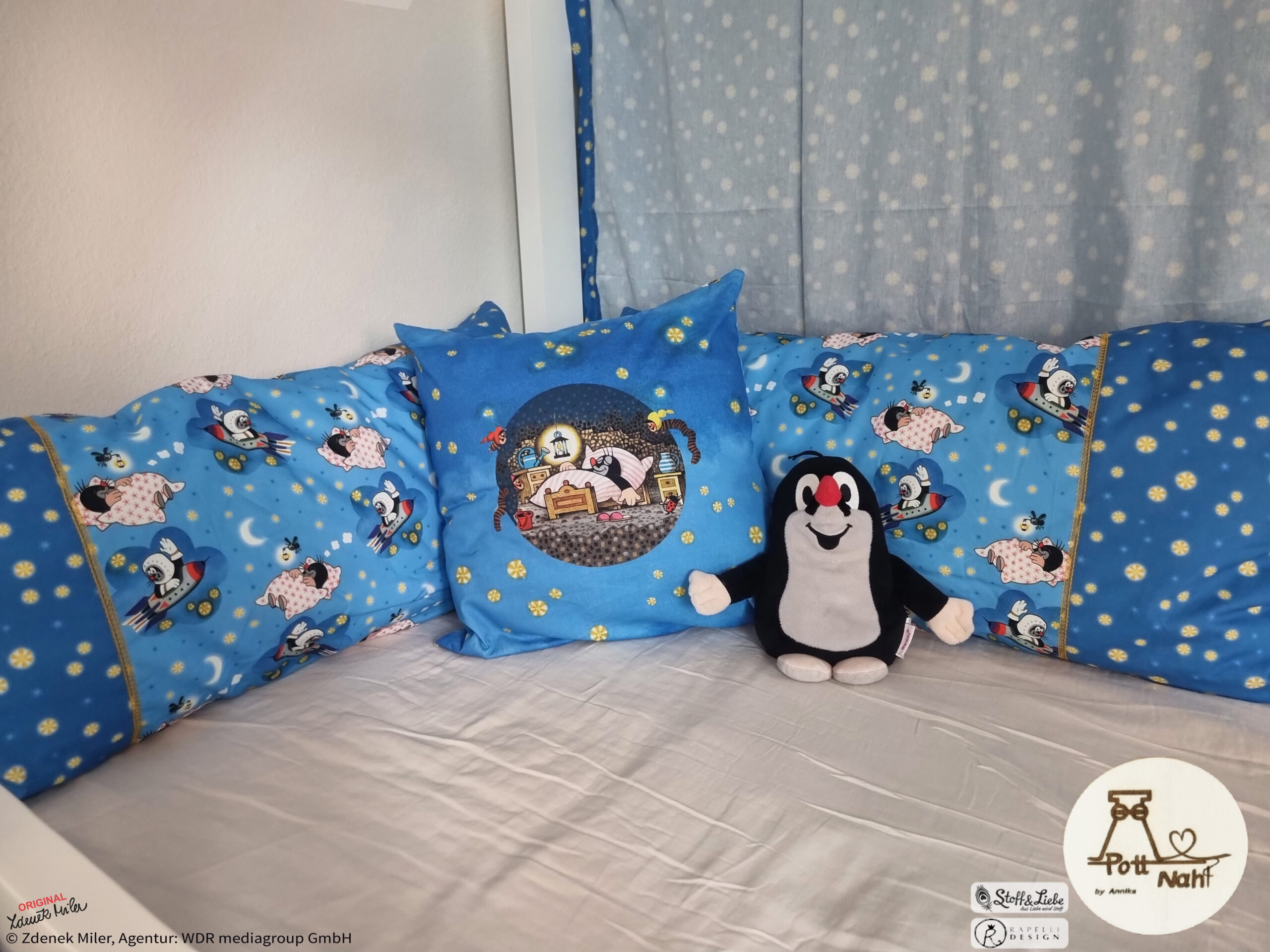 Ist der Maulwurf nicht einfach goldig, wie er da schlummert und von seinen Abenteuern träumt? Der „Gute Nacht“ Allover ist natürlich auch wieder dabei. Er passt nicht nur optimal zum Panel sondern ist alleine vernäht auch einfach traumhaft.