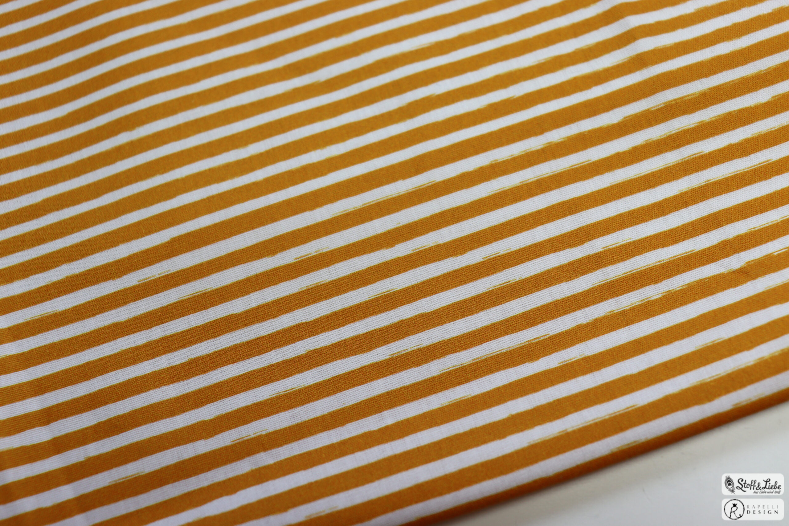 Was darf als Kombistoff nicht fehlen? Ganz genau! Streifen! Und das diesmal in Form unserer Maccaronies in Senfgelb-Weiß.