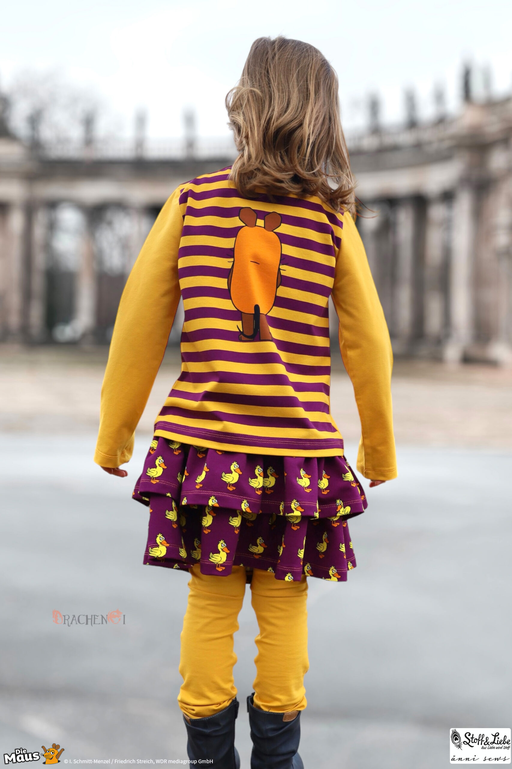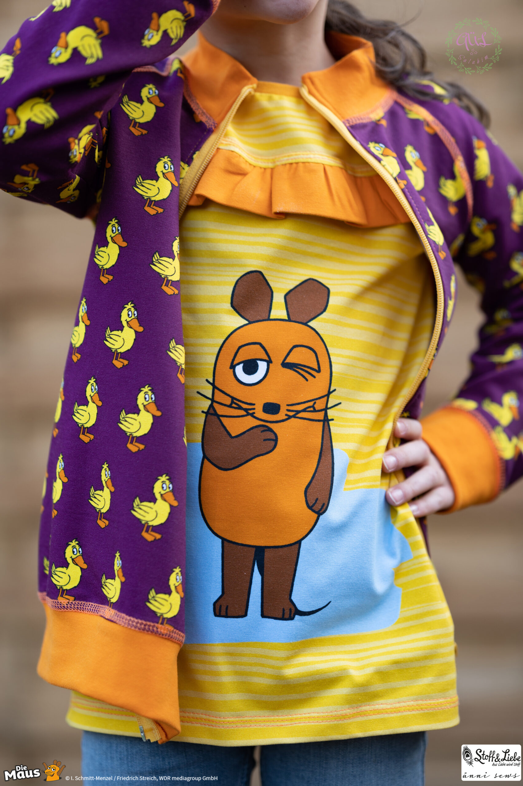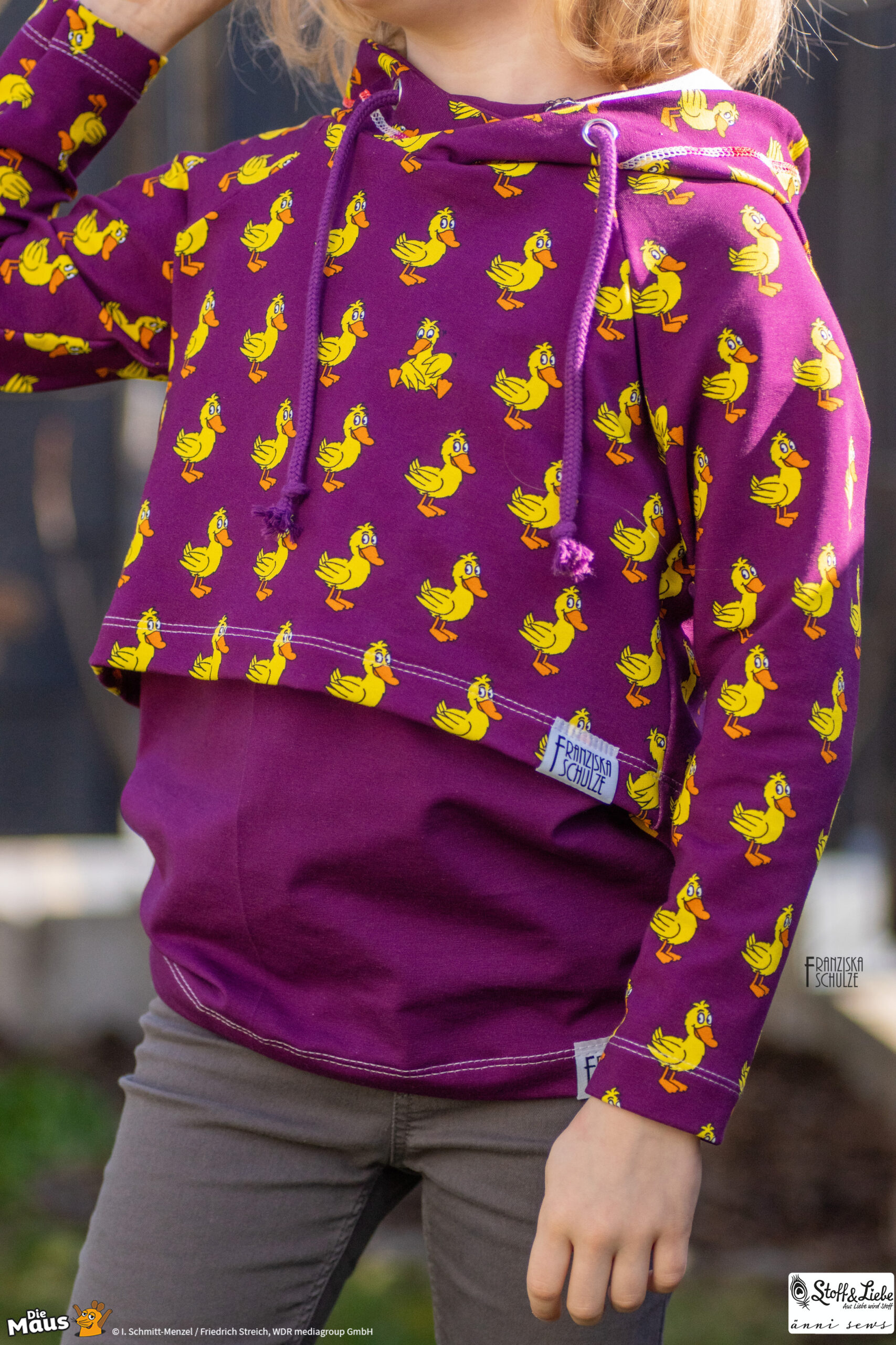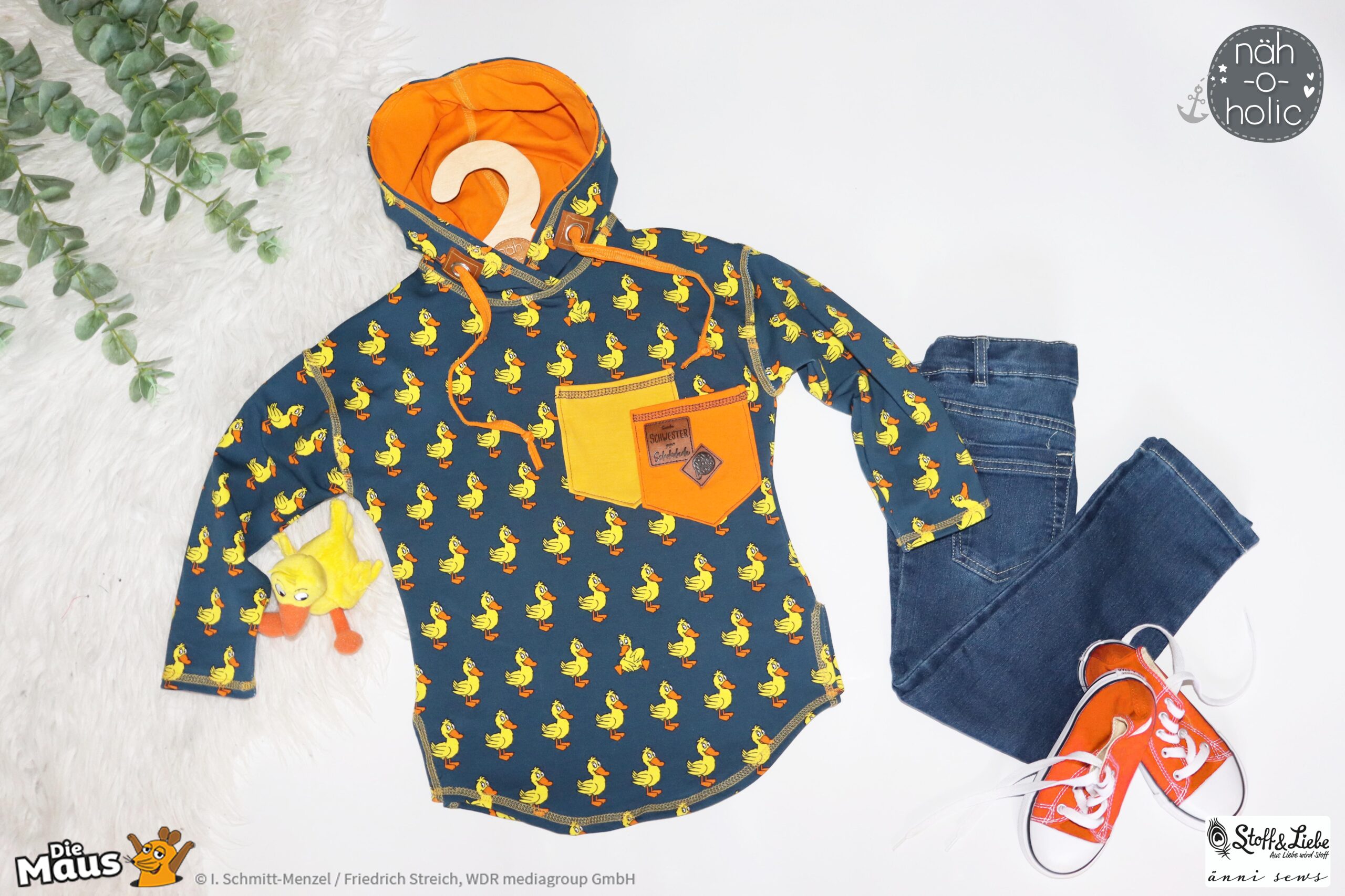 Unseren niedlichen „DieMaus Vorne – Hinten“ Allover kennt Ihr ja schon. Der Elefant durfte bei diesem Design natürlich nicht fehlen und nun komplettiert die Ente diese Serie. Während Ihr die Panels der drei Freunde auf Jersey bekommt, haben wir den Allover mit der Ente auf butterweichem French Terry für Euch. Auch dieses Design wurde von Ännisews umgesetzt.