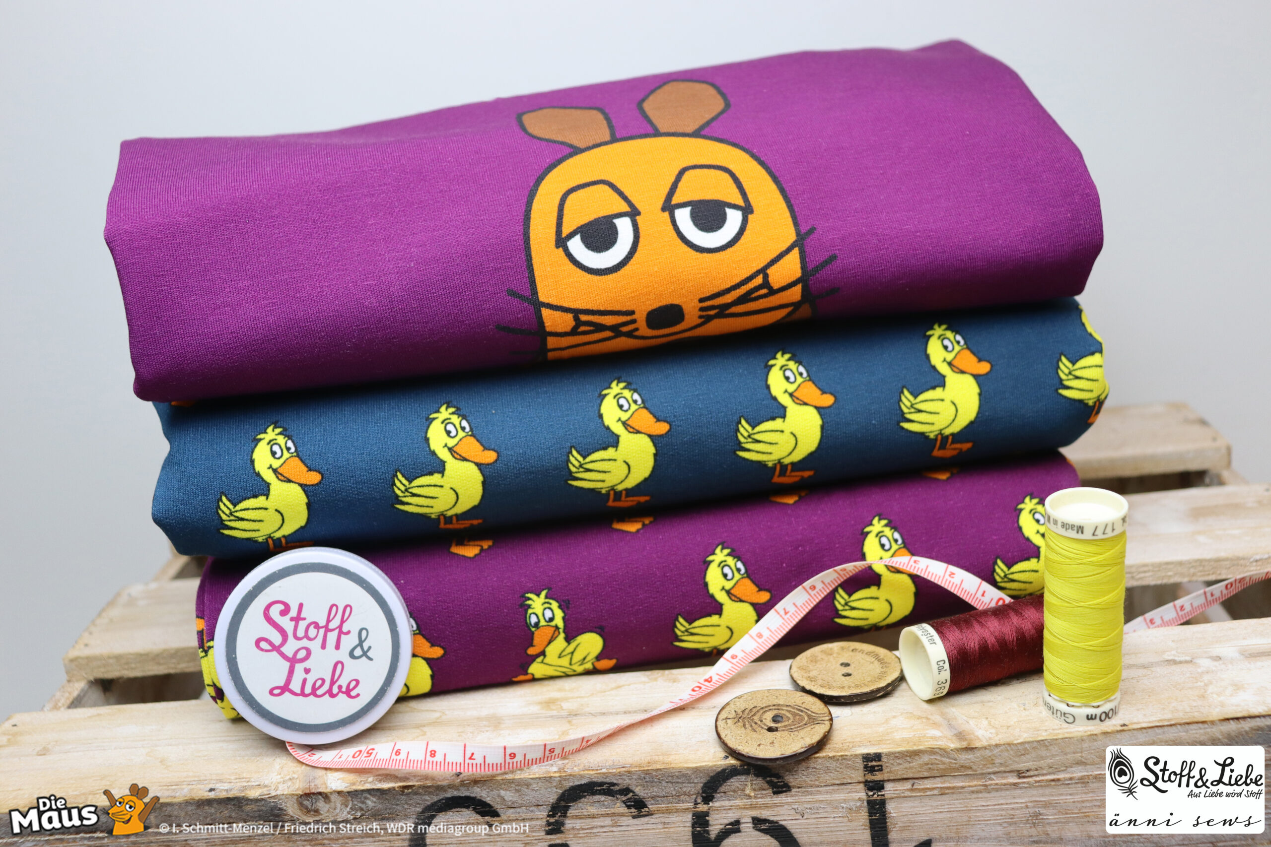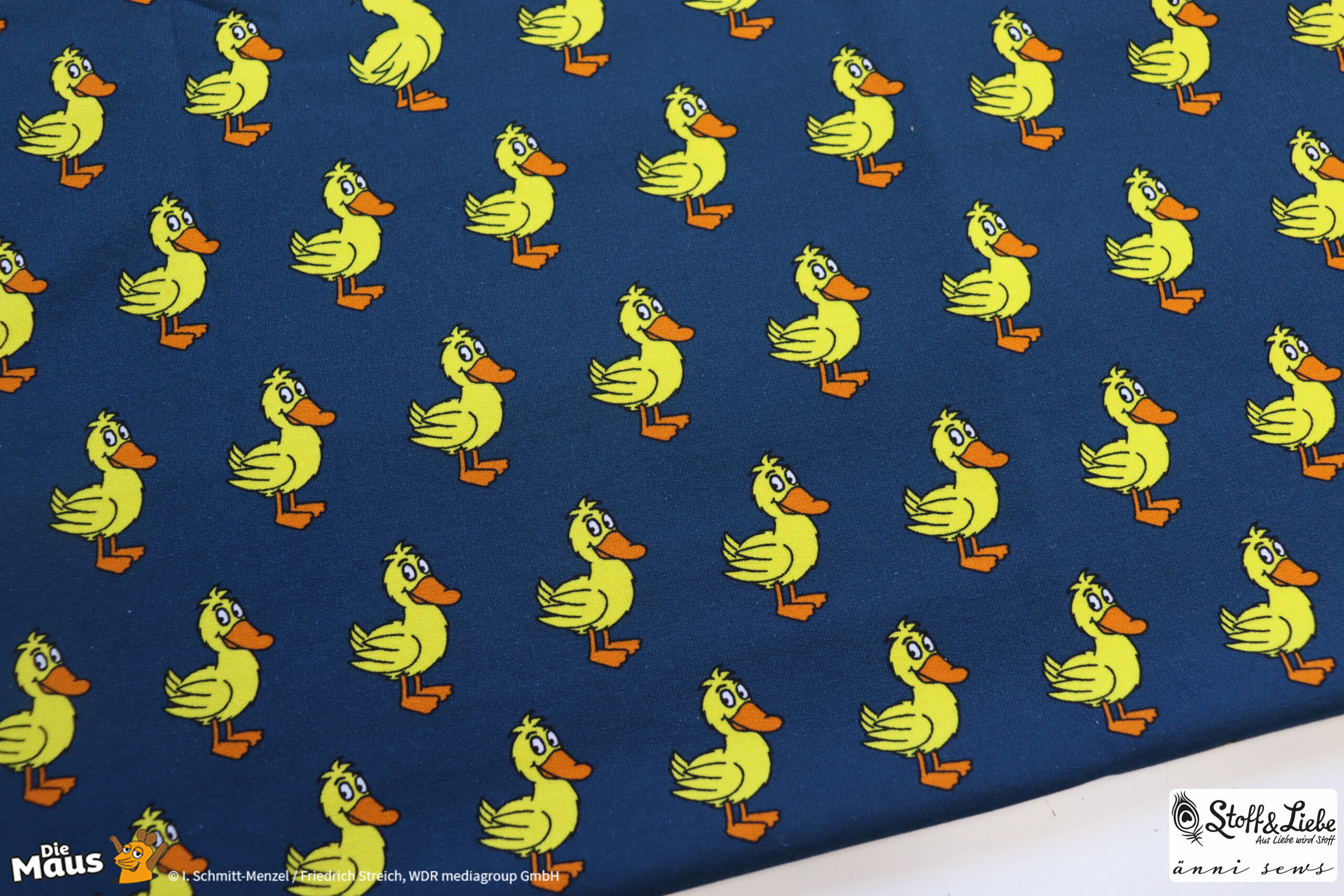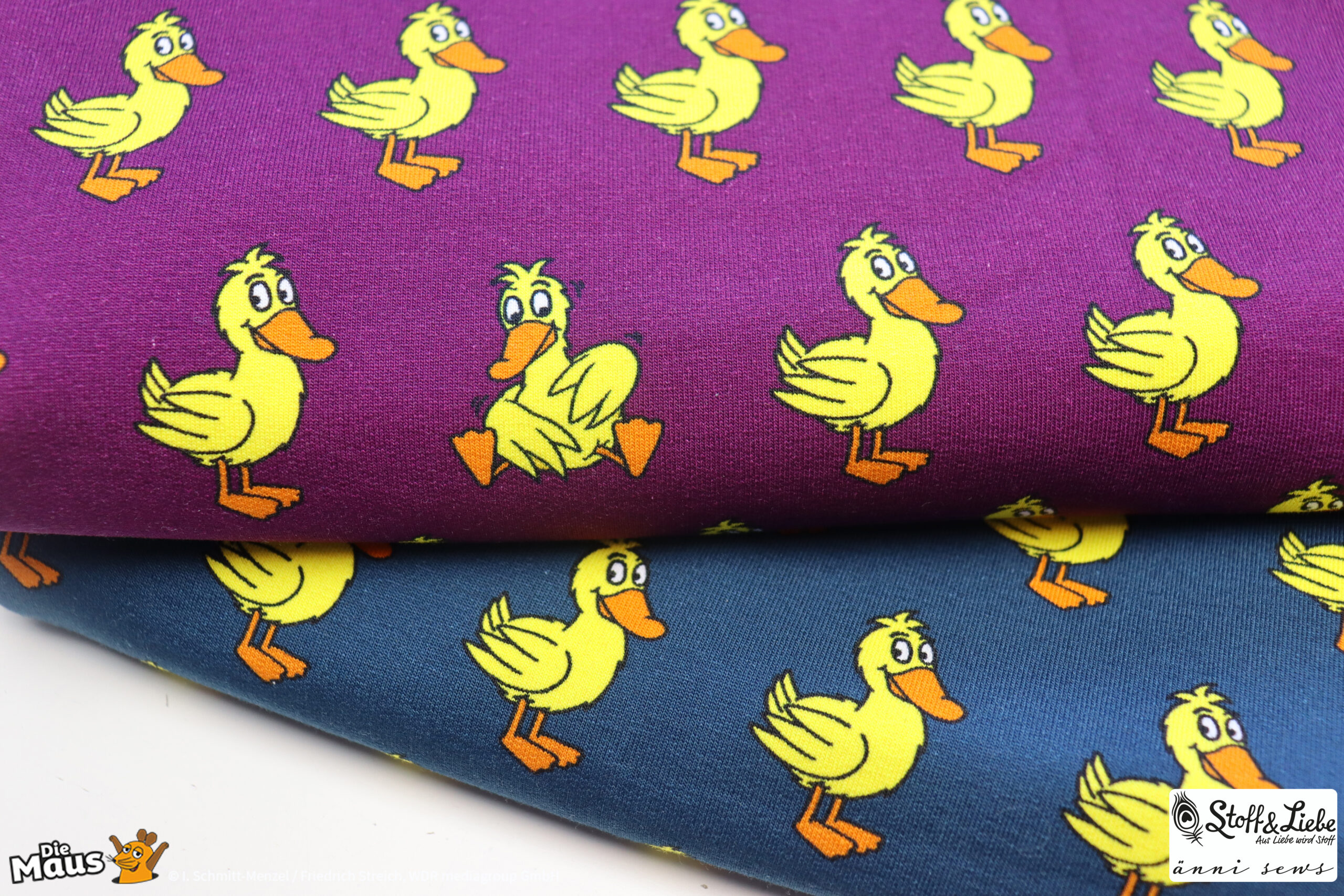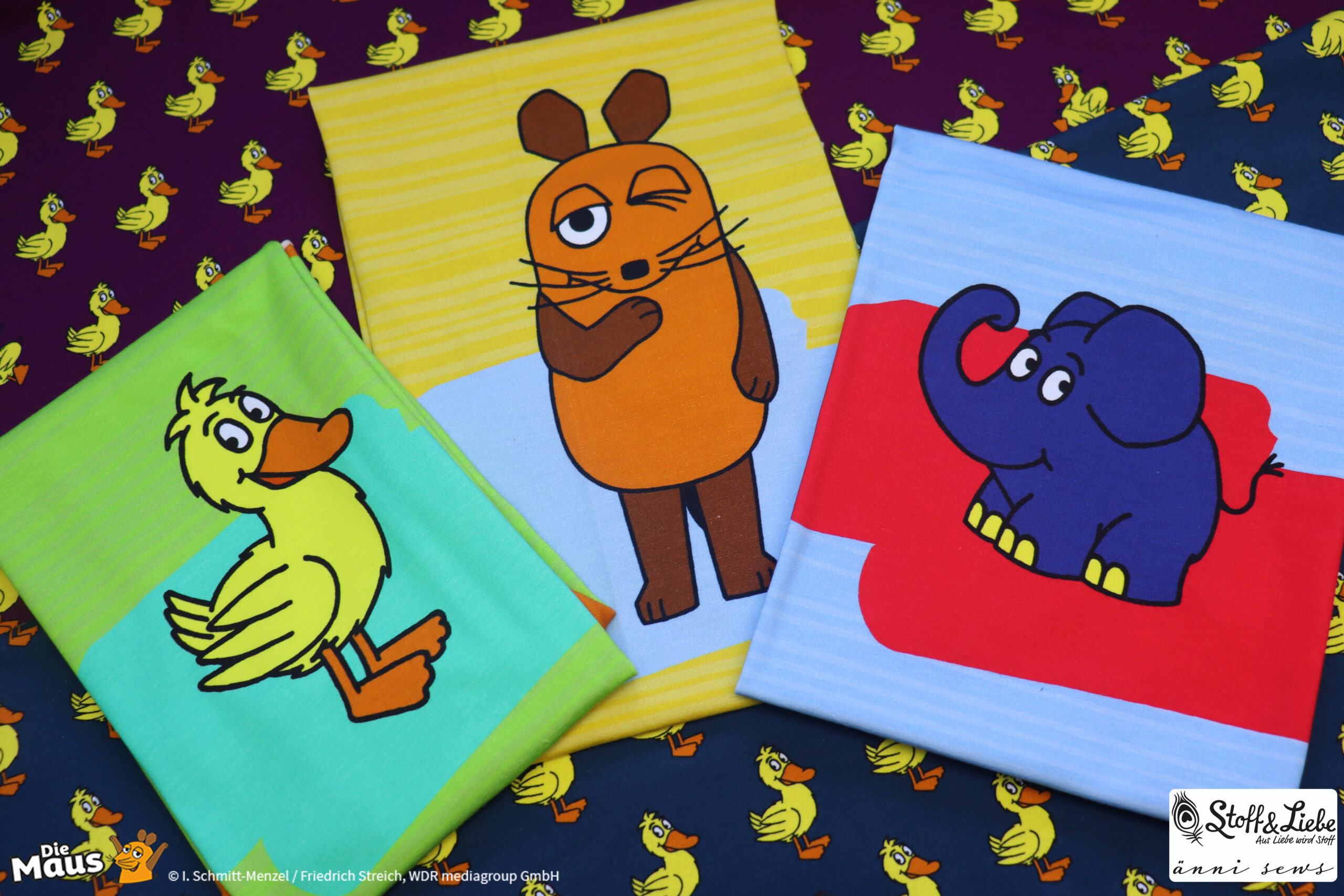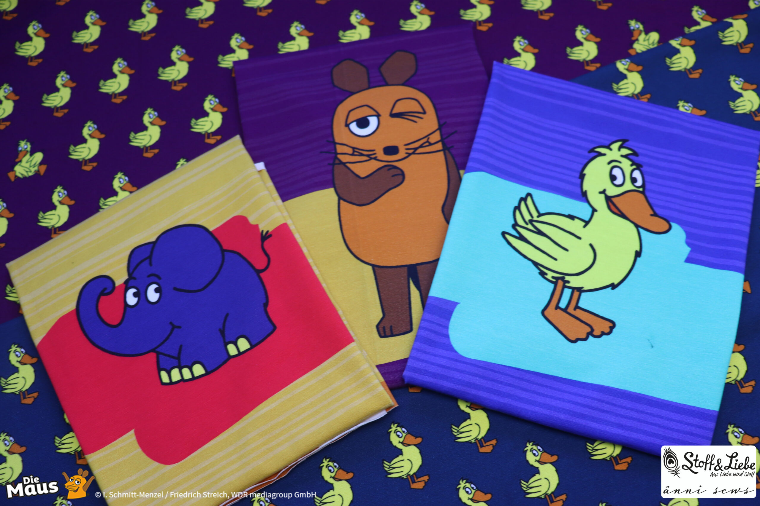 Für Eure nächsten Nähabenteuer haben wir in dieser Woche jede Menge Stoffnachschub. Nicht nur DieMaus und der Elefant kommen in neuem Design daher, sondern auch die Ente hat in dieser Woche ihren Auftritt.