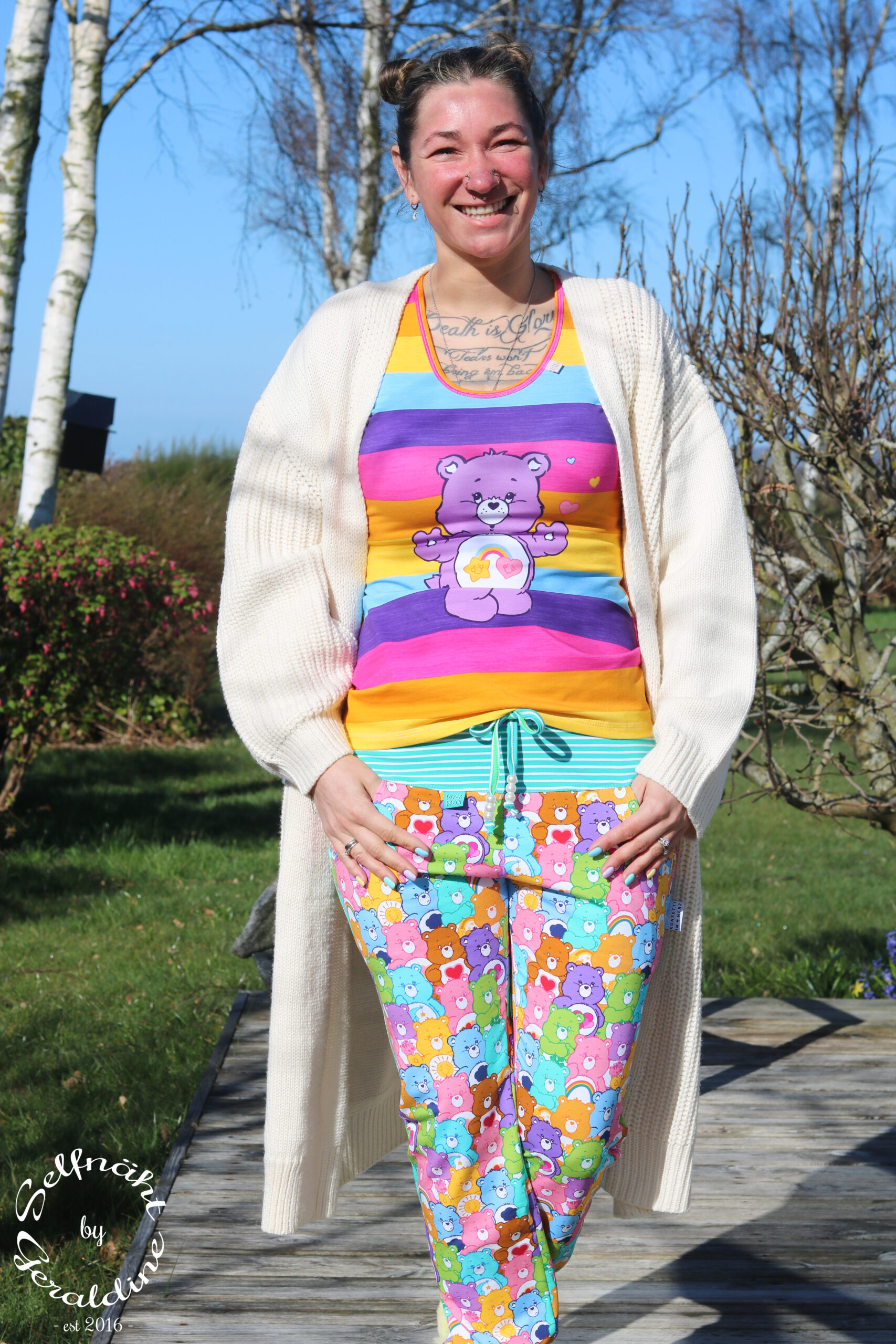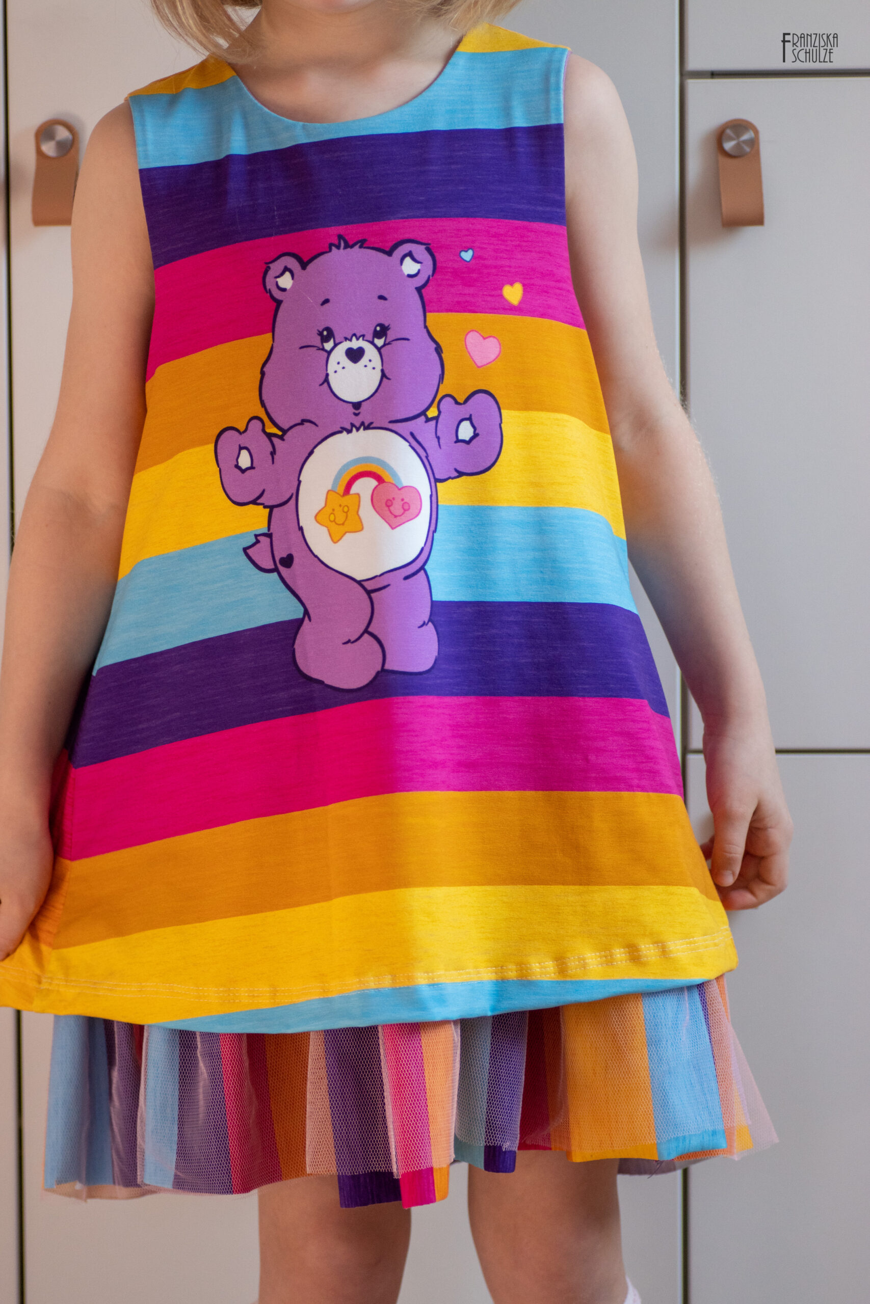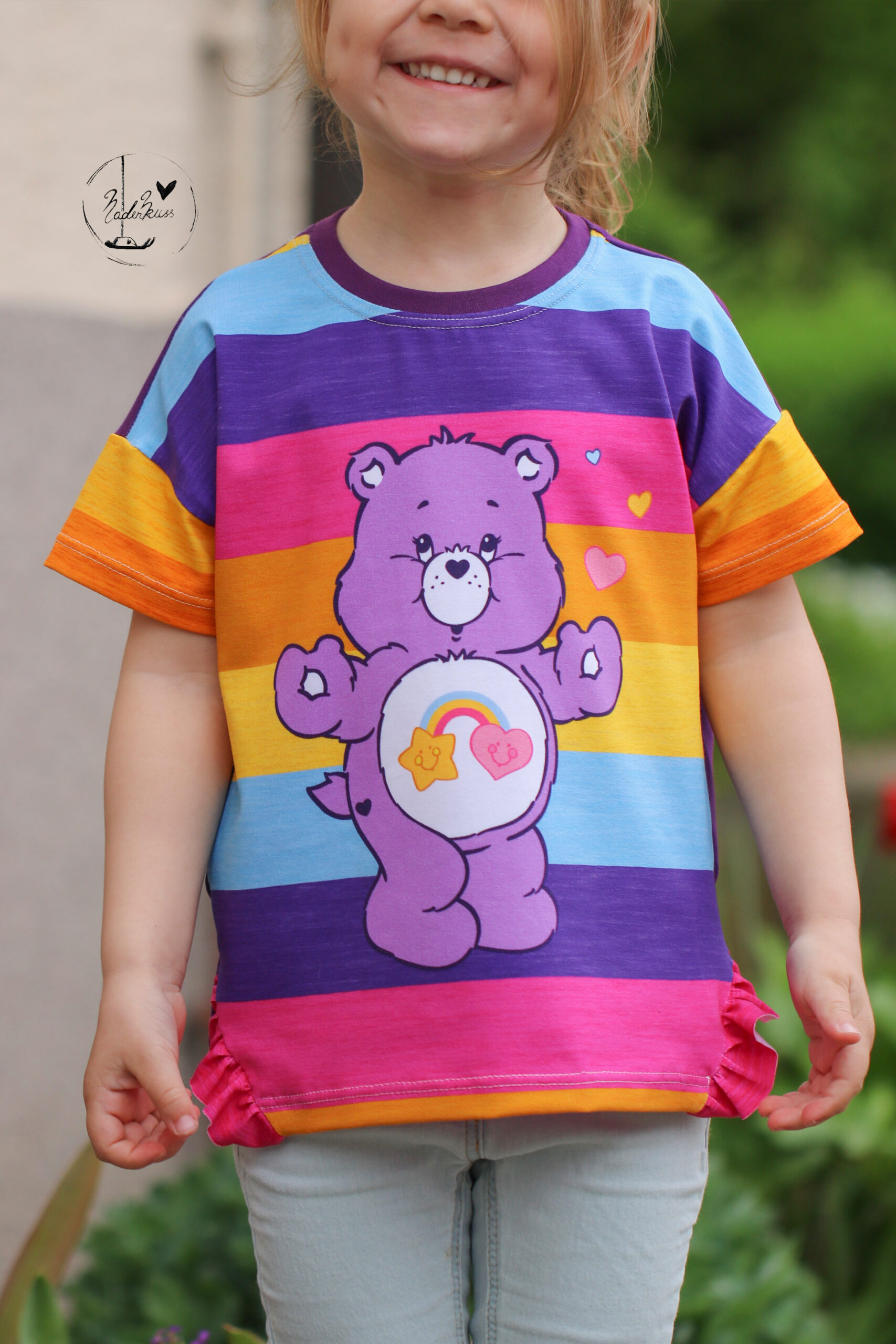 Durch die Größe des Panels, es misst ca. 85 cm, ist es nicht nur für kleine Glücksbärchis Fans vernähbar, sondern auch große Fans kommen hier voll auf ihre Kosten und können in Kindheitserinnerungen schwelgen. Oder wie wäre es z.B. mit Outfits im Partnerlook für Groß und Klein? Vielleicht sogar ganze Familienoutfits?