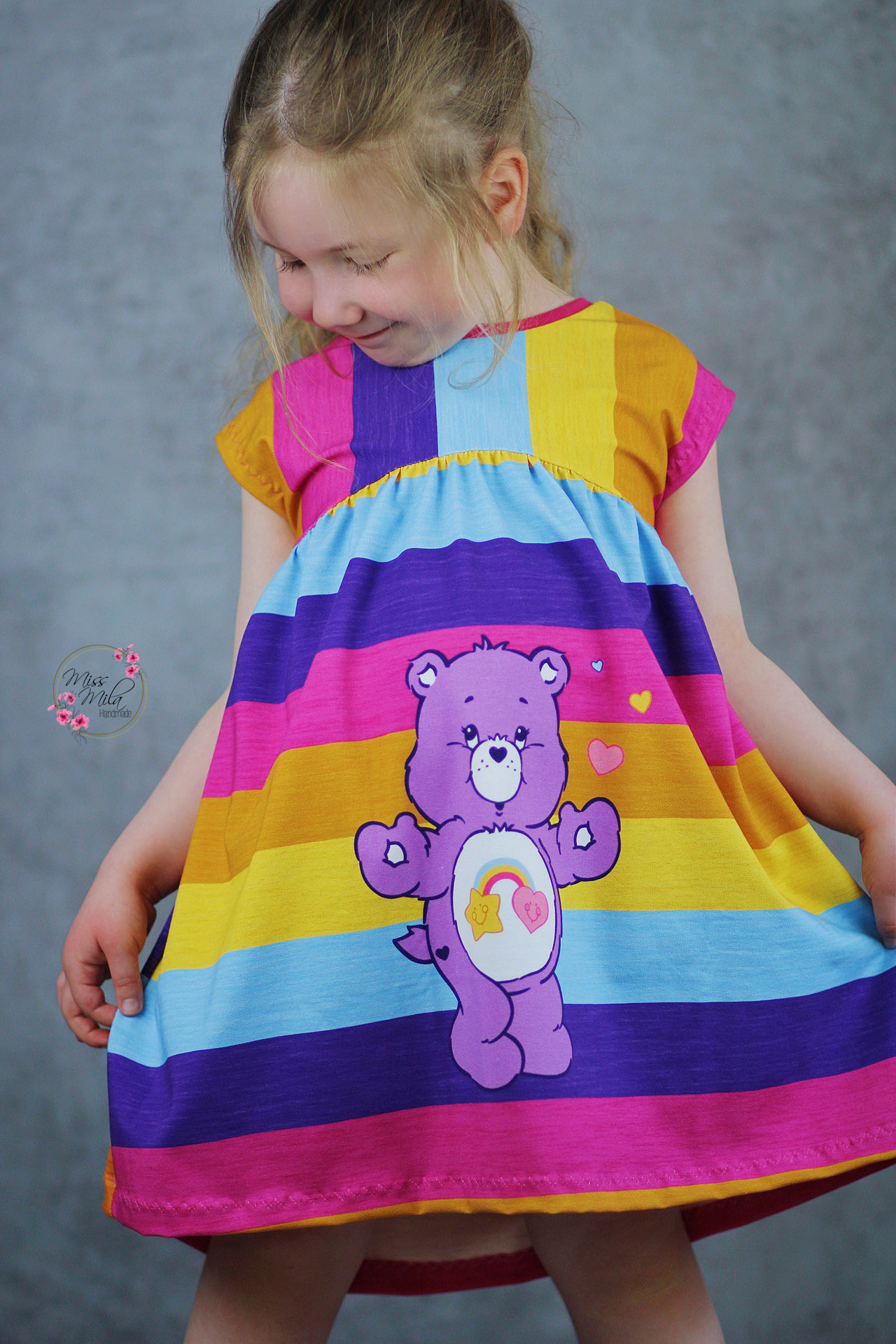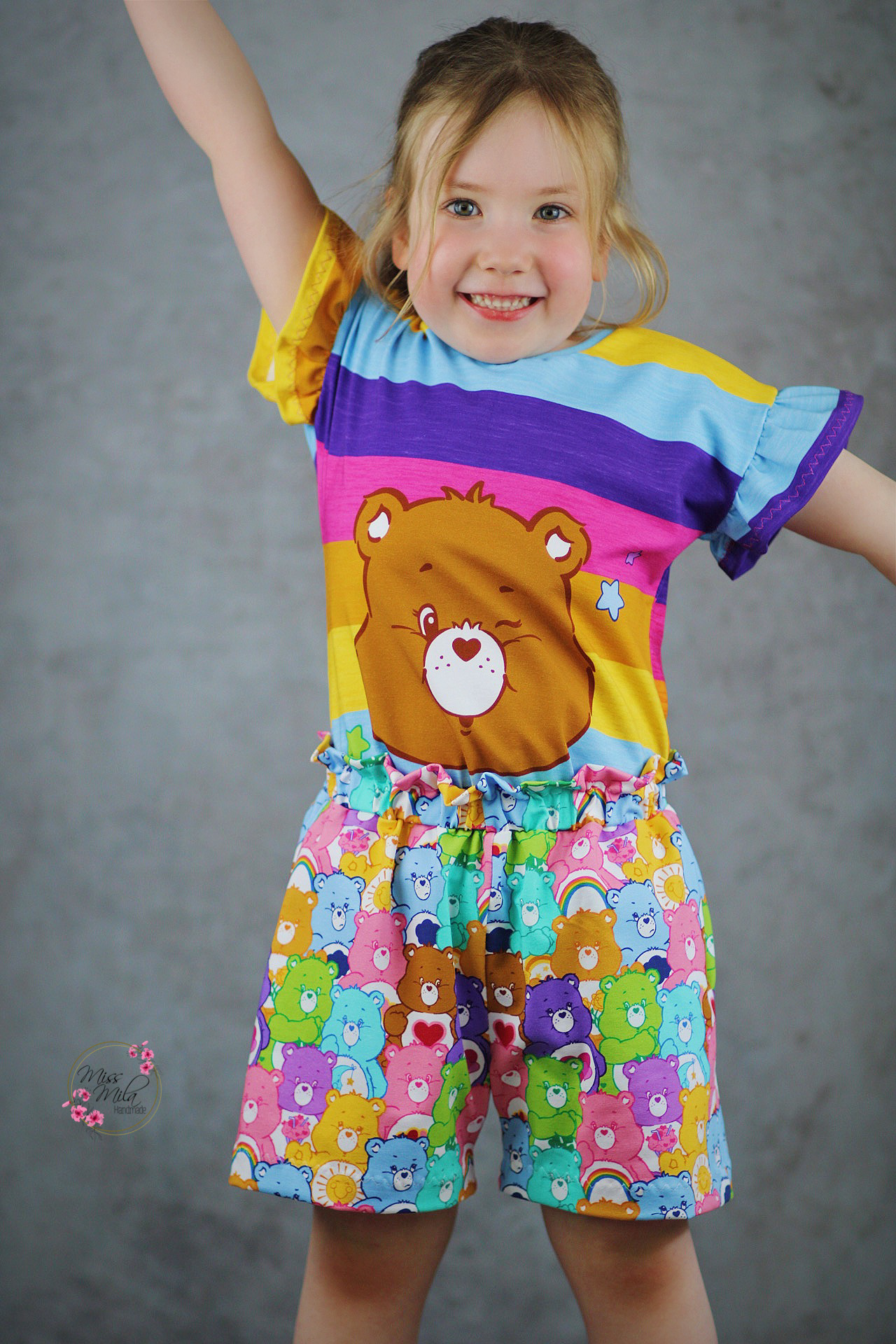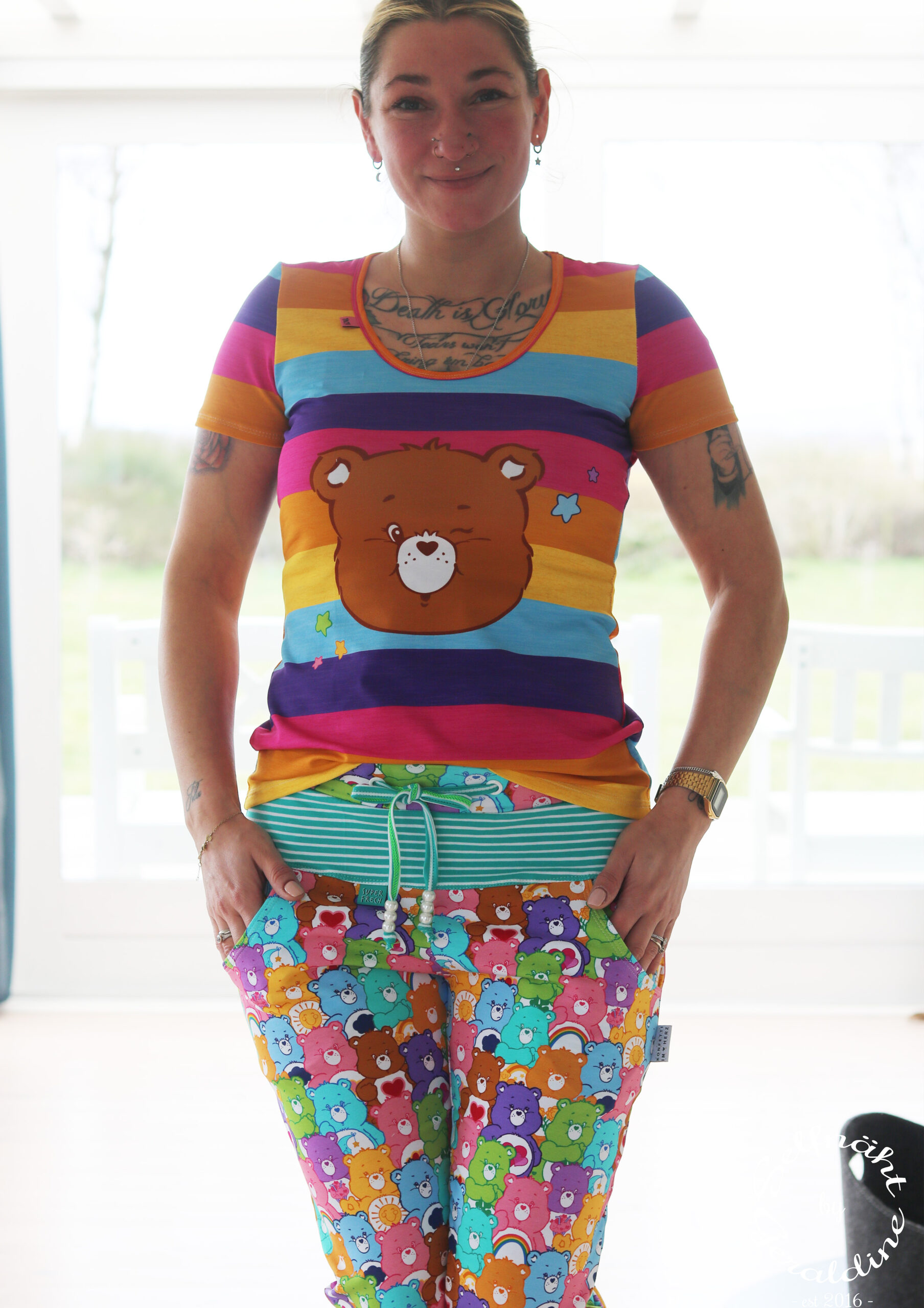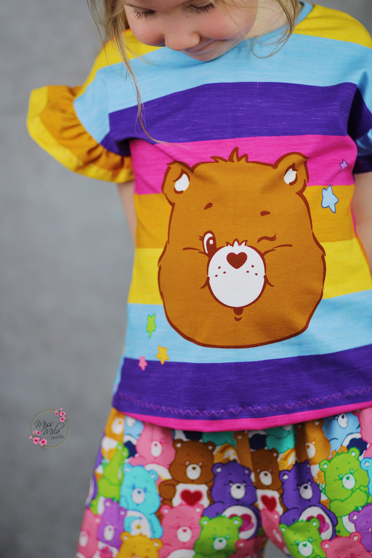 Durch die Größe des Panels, es misst ca. 85 cm, ist es nicht nur für kleine Glücksbärchis Fans vernähbar, sondern auch große Fans kommen hier voll auf ihre Kosten und können in Kindheitserinnerungen schwelgen. Oder wie wäre es z.B. mit Outfits im Partnerlook für Groß und Klein? Vielleicht sogar ganze Familienoutfits?