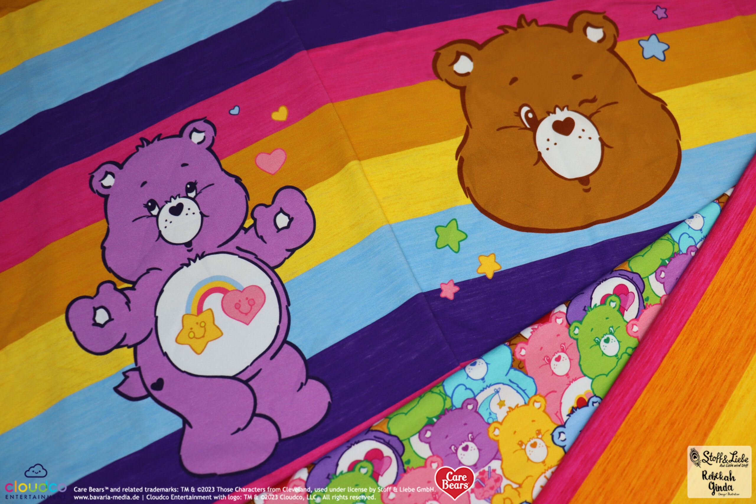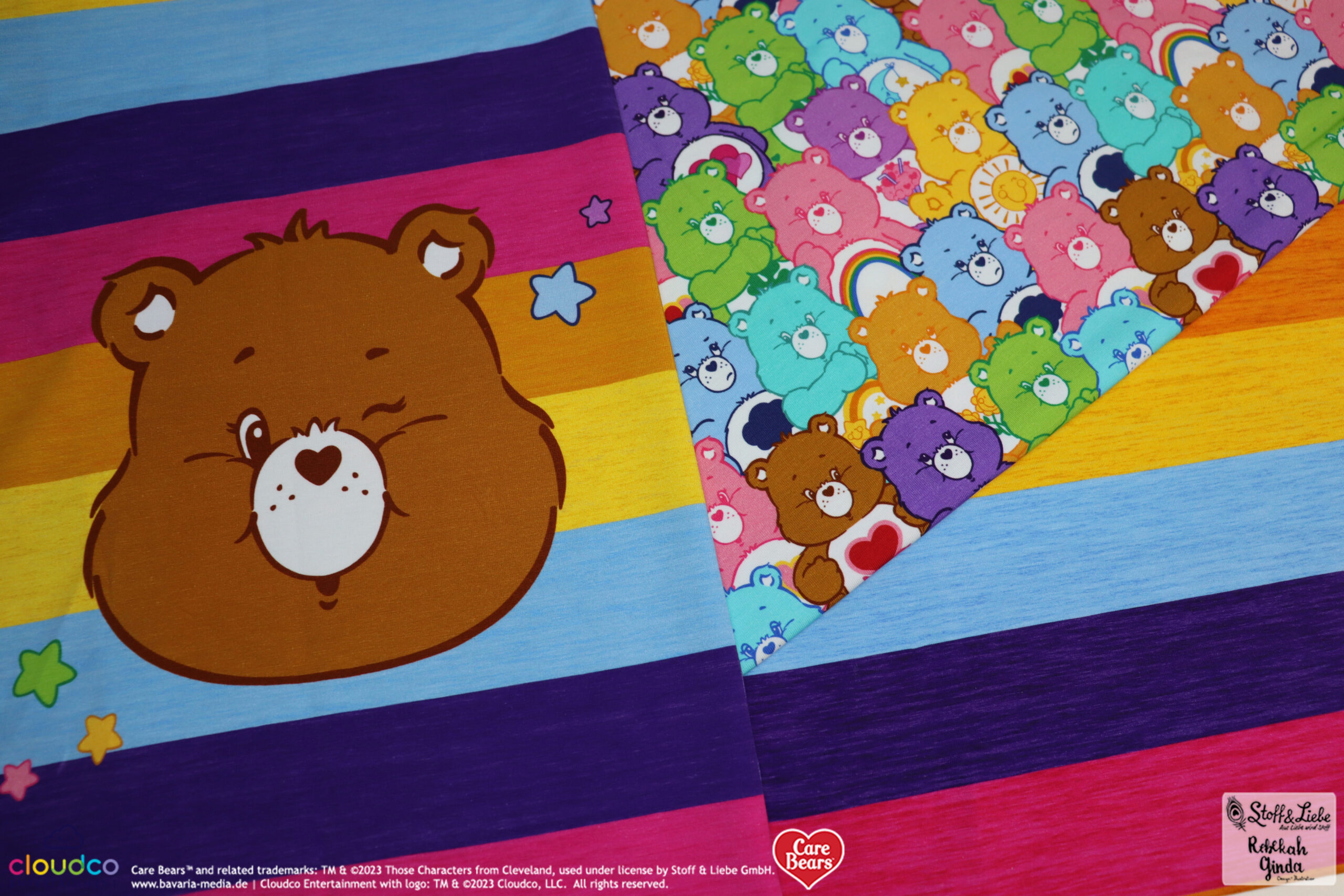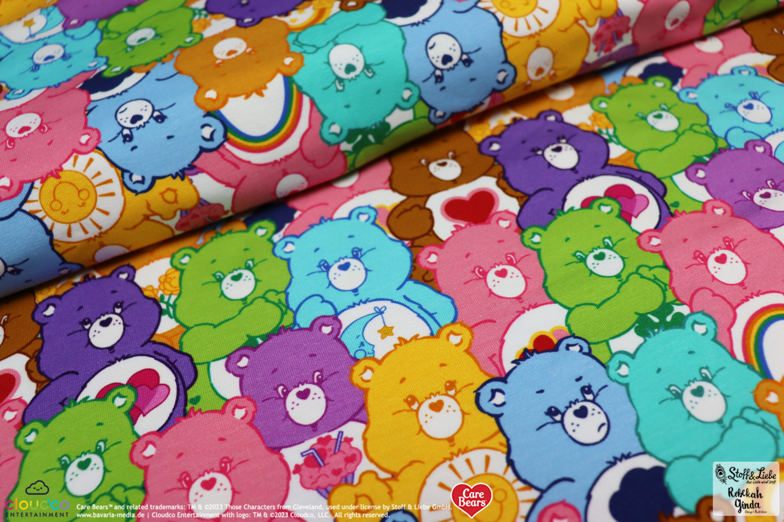 Als Hauptstoff haben wir einen richtig tollen Allover für Euch: “Bunte Laune“. Hier ist der Name Programm, denn Ihr habt die Glücksbärchis in Hülle und Fülle in allen Farben und Launen 😉 Hinterlasse uns gerne einen Kommentar, welche Glücksbärchis Ihr hier entdeckt habt.