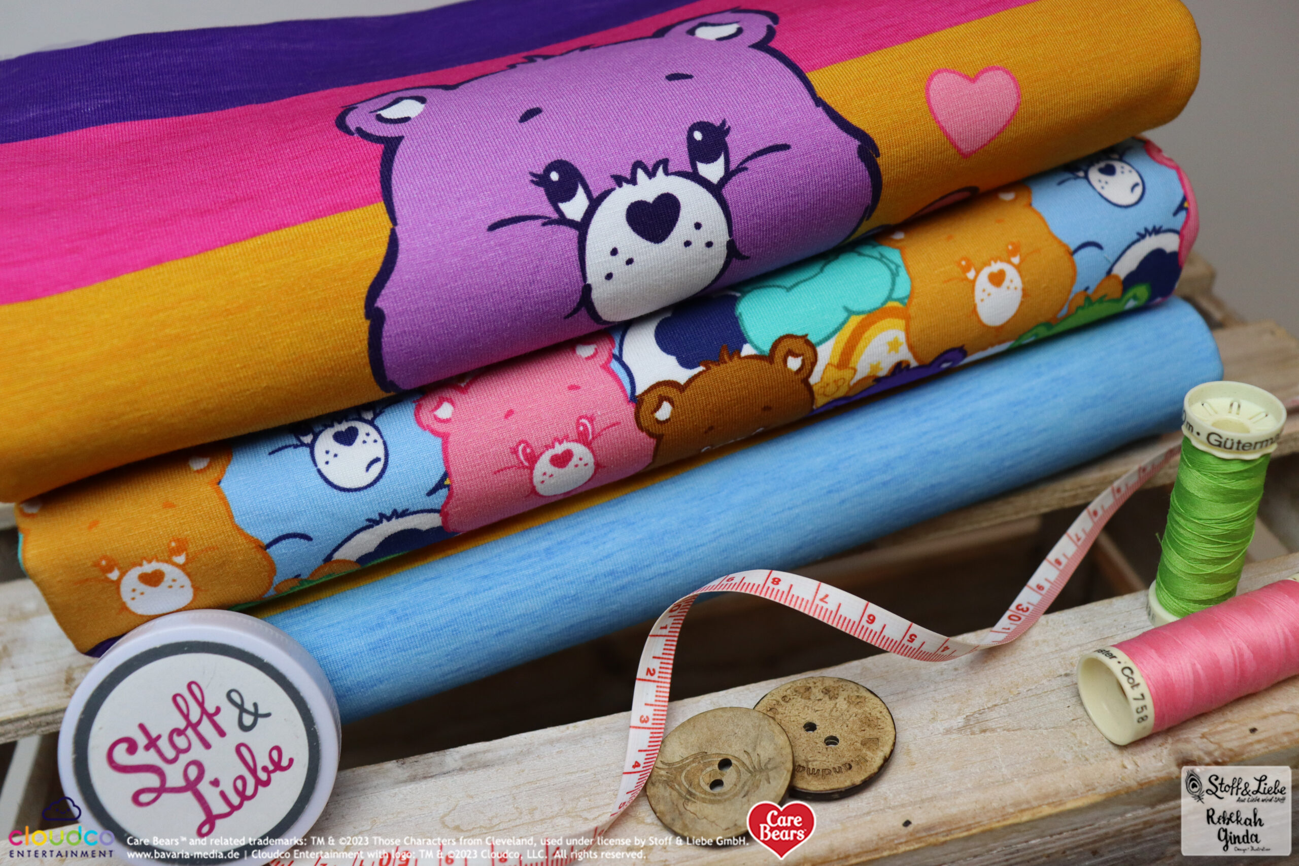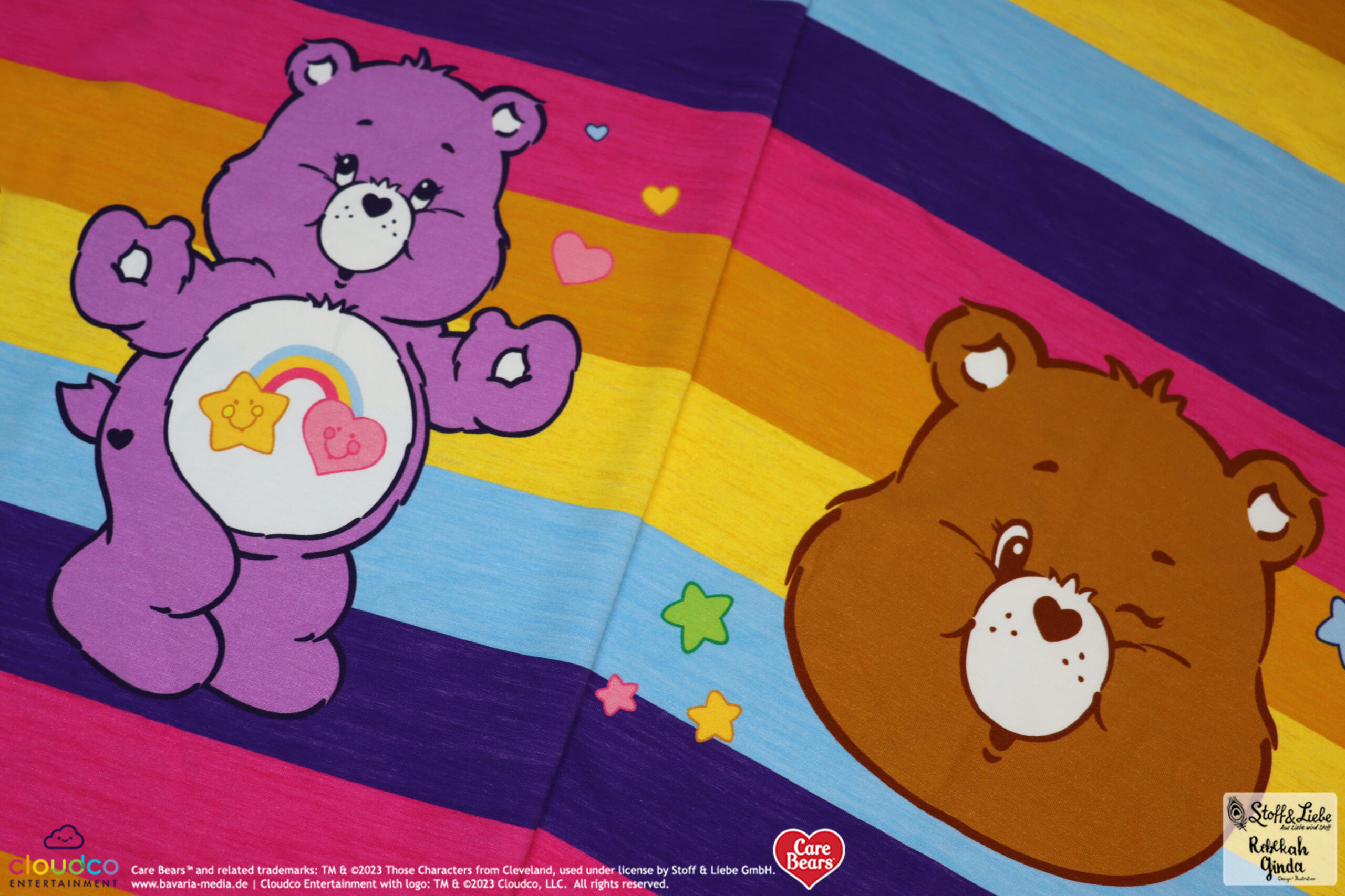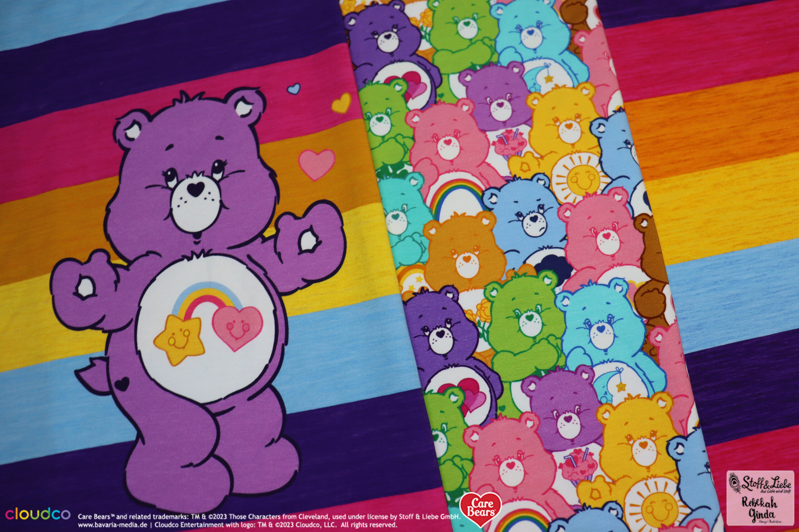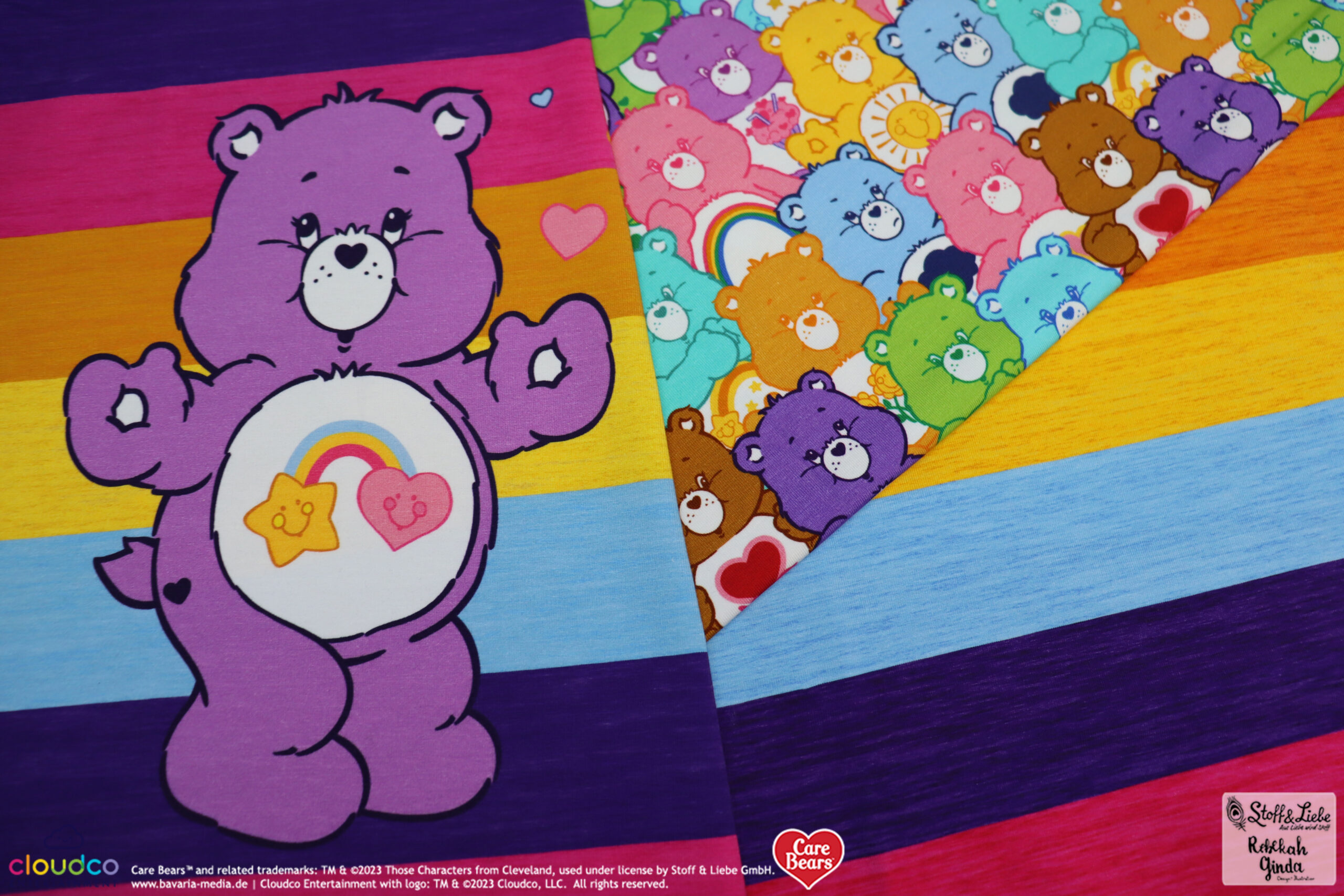 Als Hauptstoff haben wir einen richtig tollen Allover für Euch: “Bunte Laune“. Hier ist der Name Programm, denn Ihr habt die Glücksbärchis in Hülle und Fülle in allen Farben und Launen 😉 Hinterlasse uns gerne einen Kommentar, welche Glücksbärchis Ihr hier entdeckt habt.