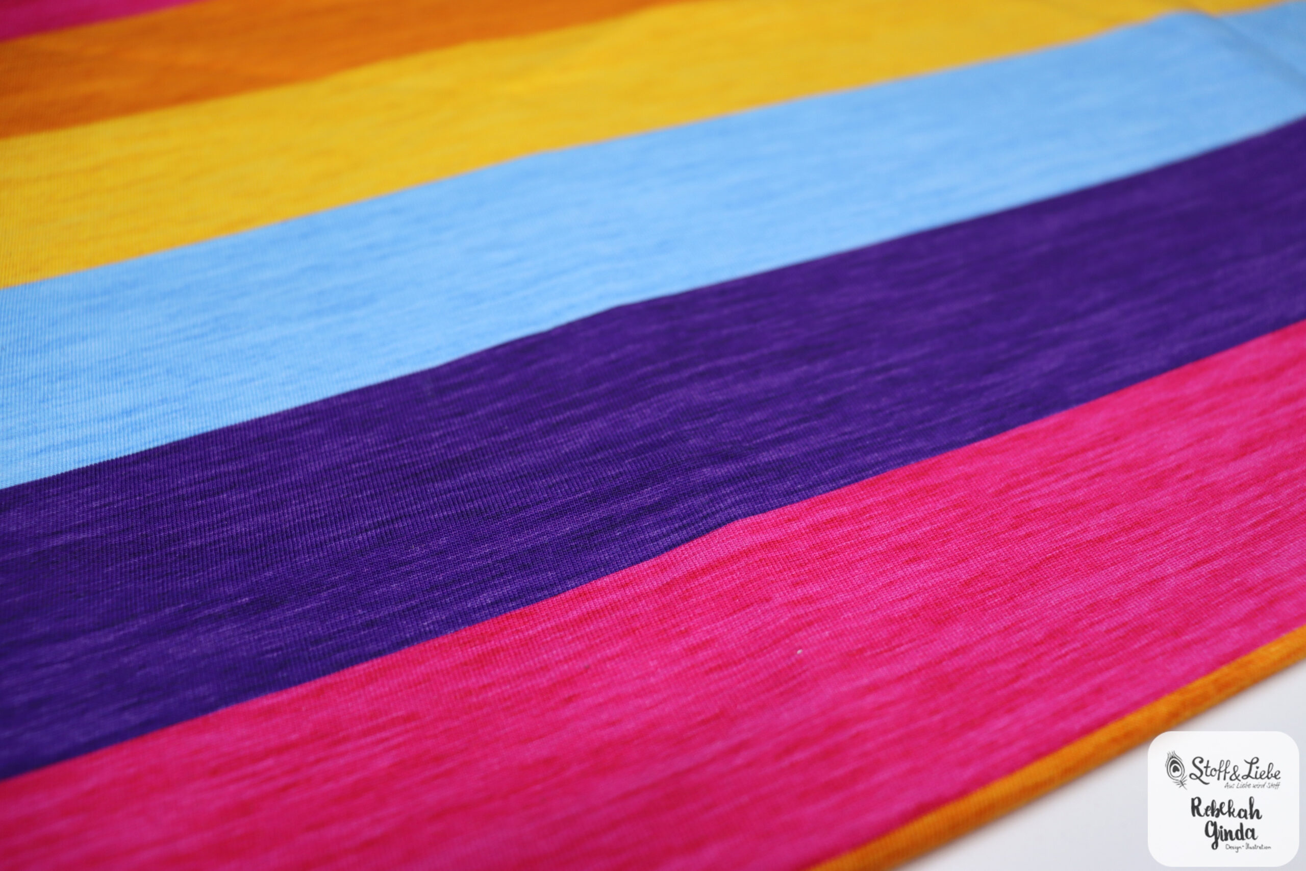 Unsere „Bunte Laune“ Kollektion wurde umgesetzt von Rebekah Ginda. Sie hält ein Panel, einen Allover und einen Kombistoff für Euch bereit bereit. Die Stoffe dieser Kollektionen erhaltet Ihr auf Jersey in unserer gewohnten Spitzenqualität und haben eine Materialzusammensetzung von 95 % Baumwolle und 5 % Elasthan.