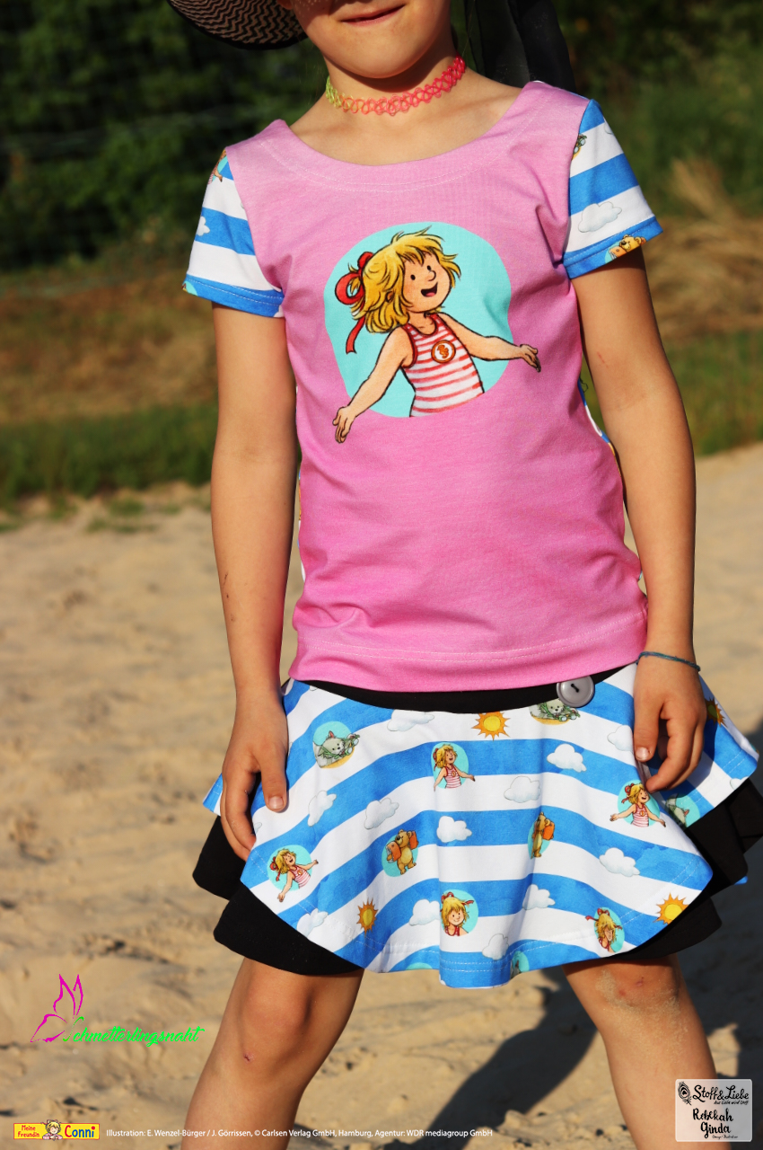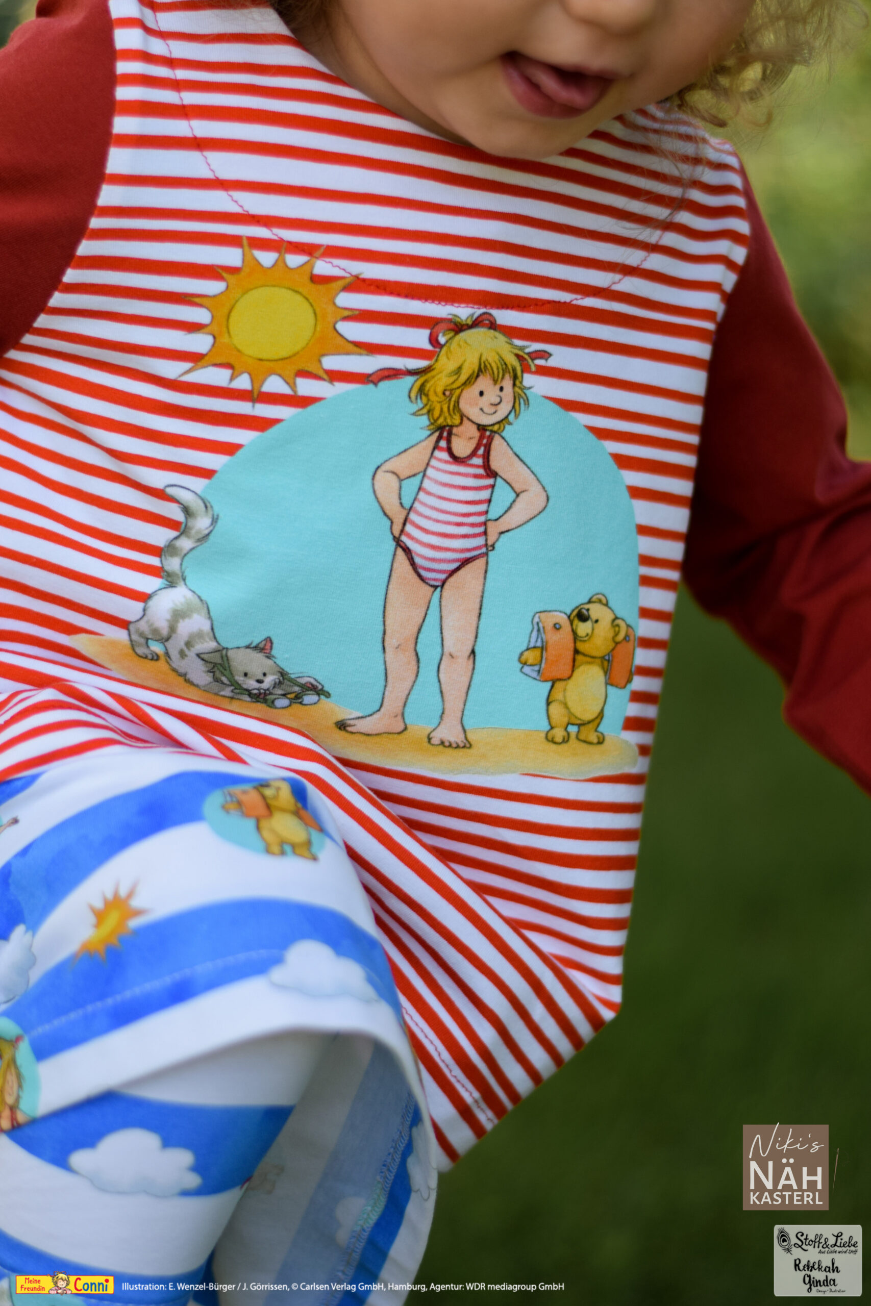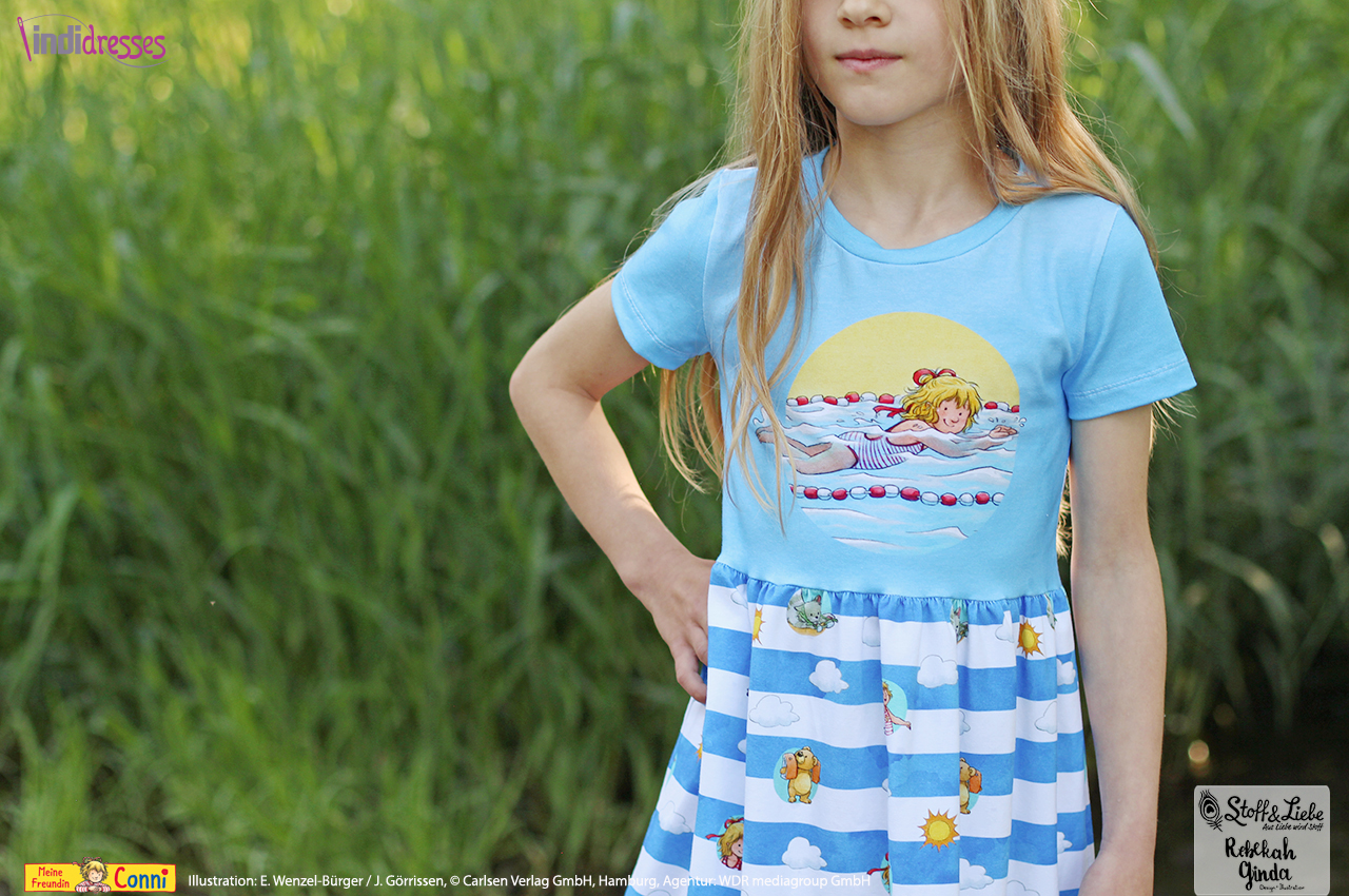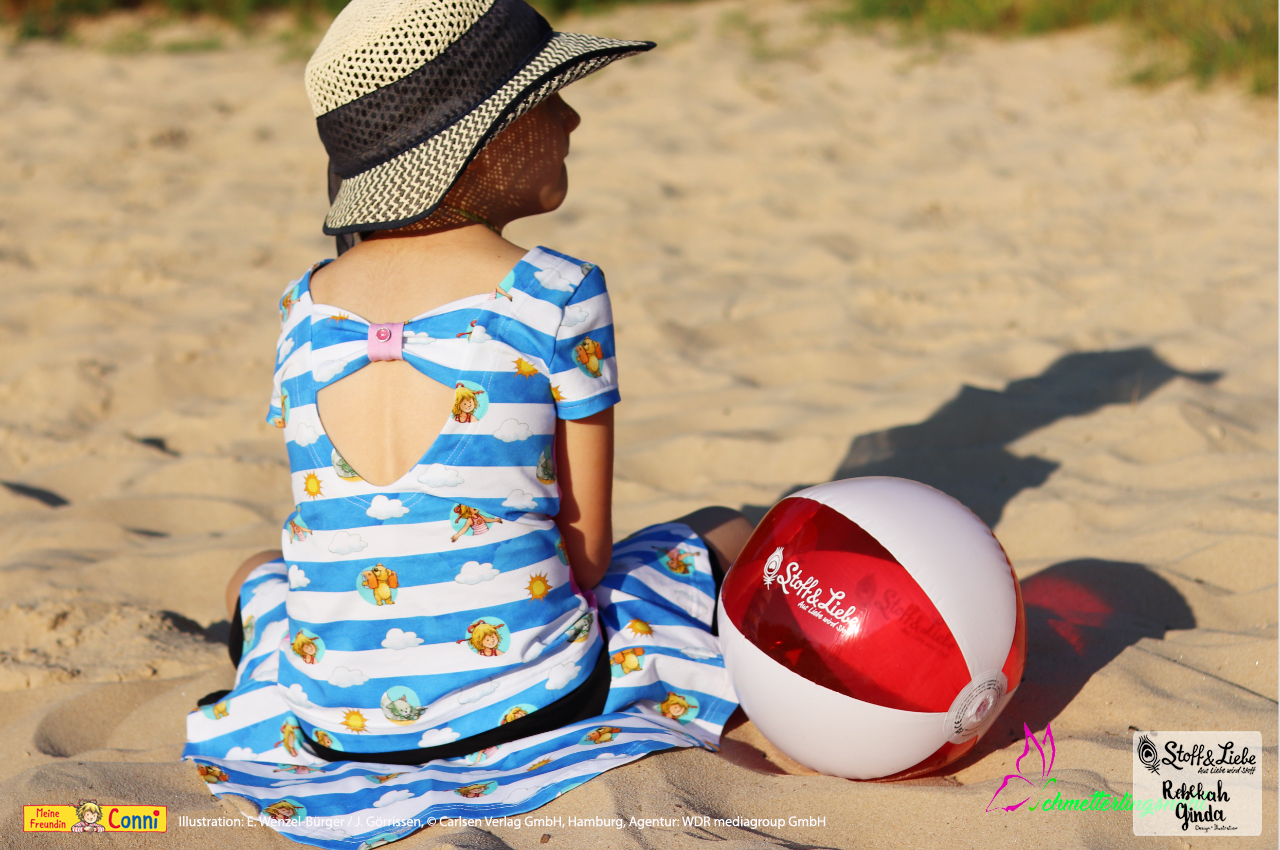 Außer dem Panel ist natürlich auch hier der Allover „Connis Freibadstreifen“ dabei. Der Allover lässt sich nicht nur prima mit den Panelteilen kombinieren, sondern ist auch solo vernäht ein absoluter Hingucker.