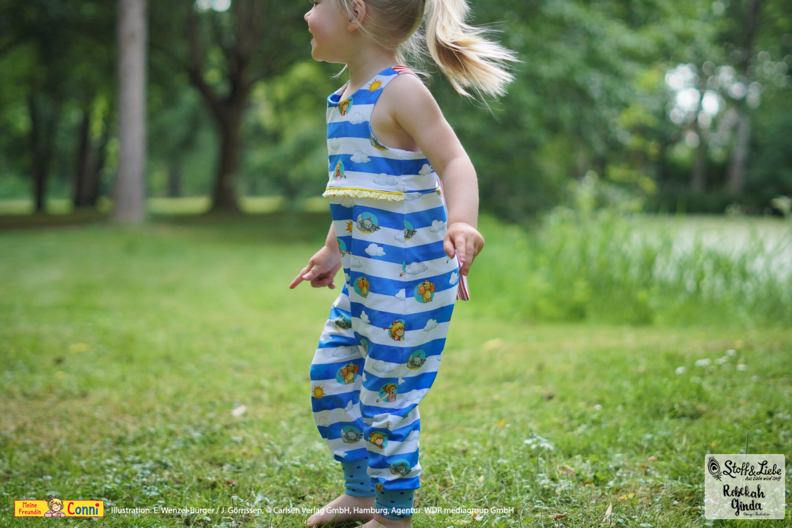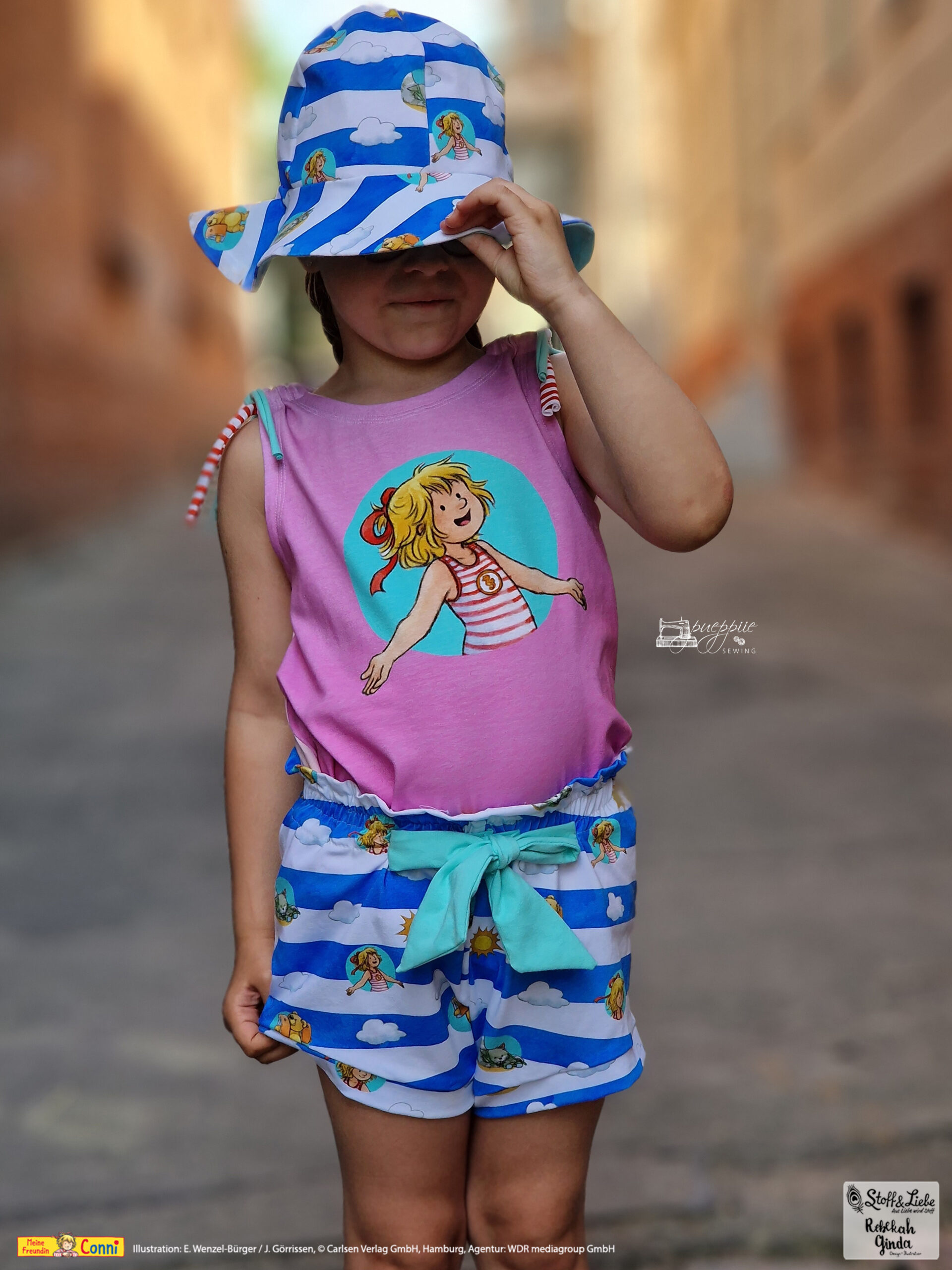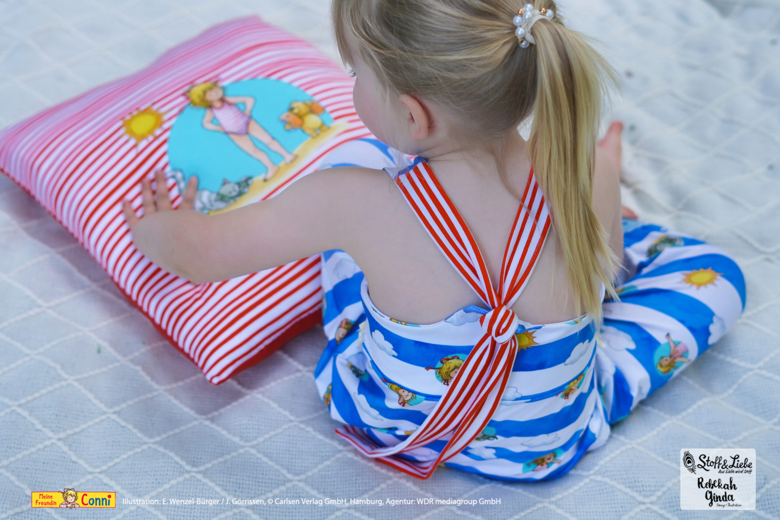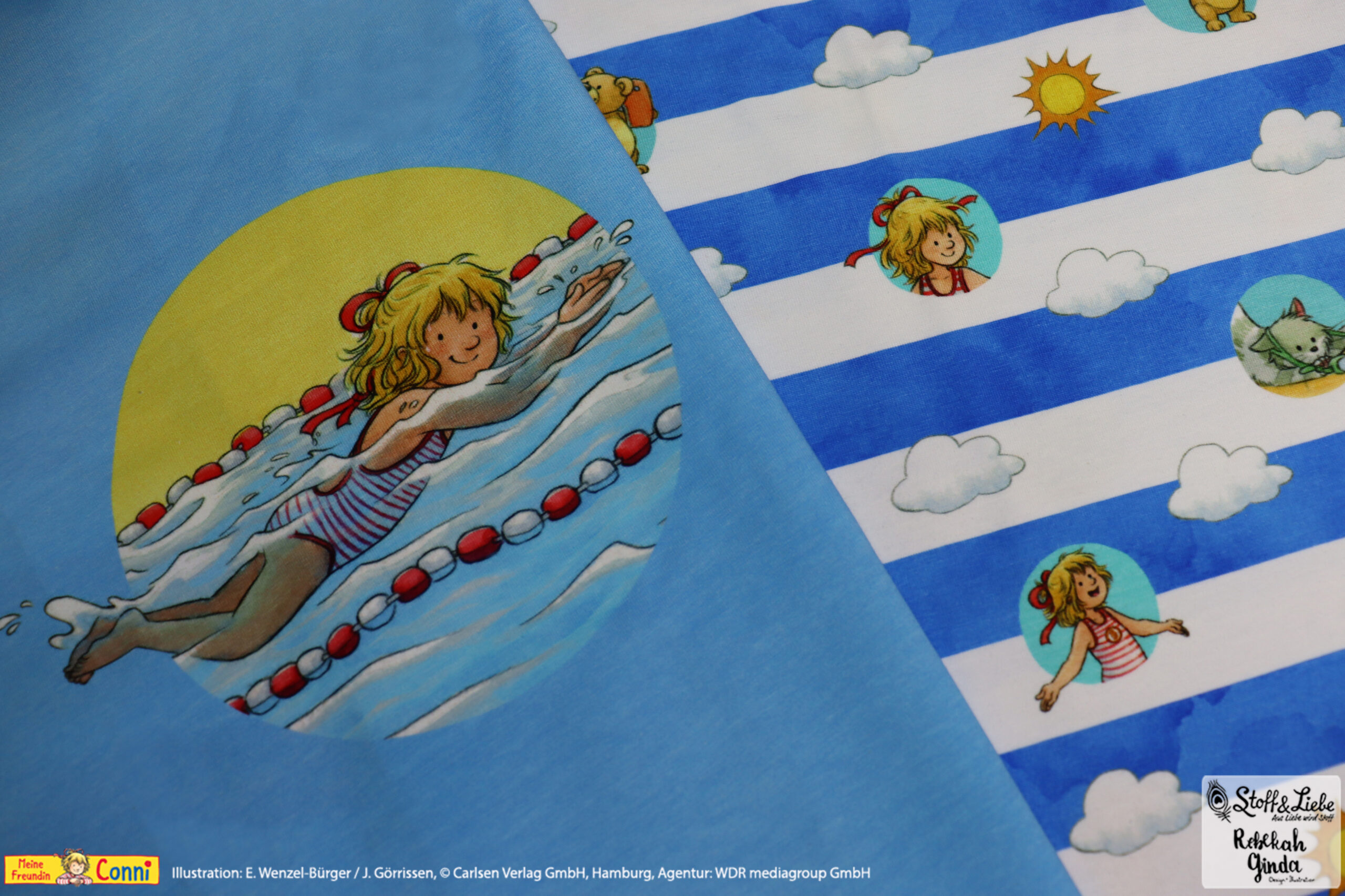 Außer dem Panel ist natürlich auch hier der Allover „Connis Freibadstreifen“ dabei. Der Allover lässt sich nicht nur prima mit den Panelteilen kombinieren, sondern ist auch solo vernäht ein absoluter Hingucker.